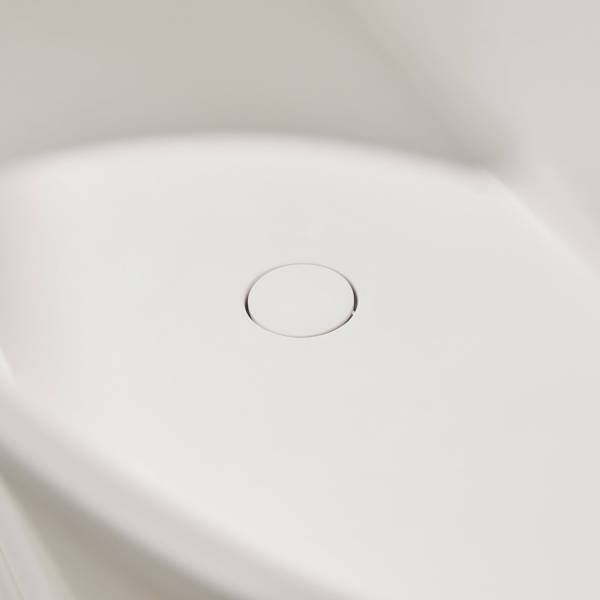 This 59-inch oval matte white artificial stone freestanding soaking tub features modern minimalist lines and aesthetics, making it a striking centerpiece for any bathroom décor. Crafted from durable solid surface material, it is hard, tough, wear-resistant, non-porous, and stain-resistant, with slow heat dissipation and a warm touch that prevents obvious coldness, ensuring long-lasting use without discoloration. Enhanced safety functions include excellent anti-slip performance to prevent accidents, while the integrated molding and hand-polished surface deliver a smooth and delicate touch, eliminating concerns of burrs or skin scratches. The bathtub is repairable, as minor scratches or stubborn stains can be easily removed with sanding, and even severe damage can be restored through polishing. The upgraded overflow and drainage system provides an optimal bathing experience, equipped with a detachable solid brass pop-up drain with silicone gasket sealing for durability and water resistance, along with a flexible PVC drain hose for convenient use and clog prevention. With a ten-year anti-yellowing guarantee and cUPC certification, this bathtub combines beauty, functionality, and safety, making it the perfect choice for your bathroom.
