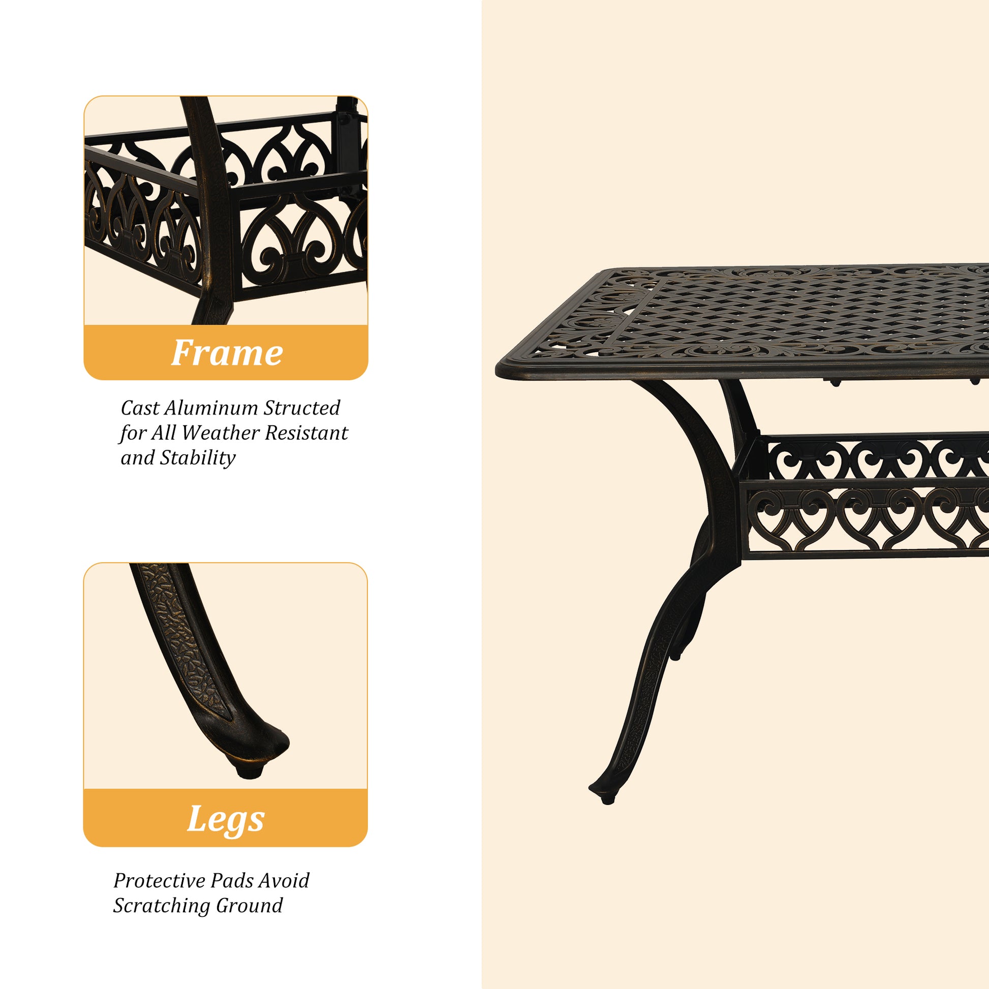59 Inches Cast Aluminium Outdoor Dining Table Patio Rectangular Dining Table with Umbrella Hole Patio Bistro Table for Backyard Garden Patio, Antique Bronze