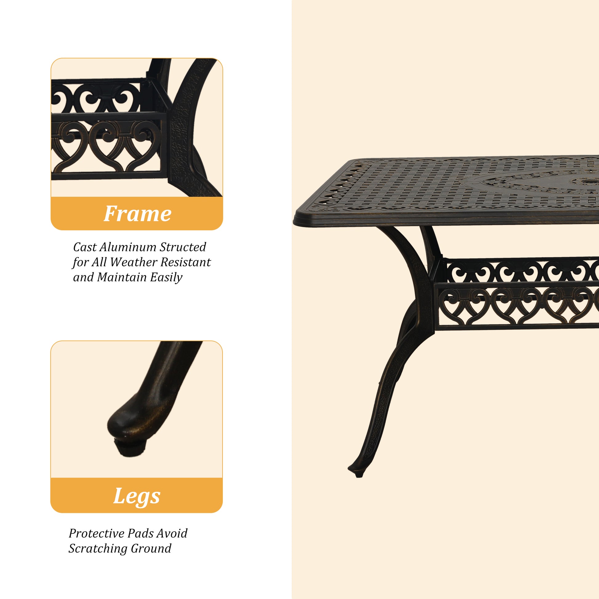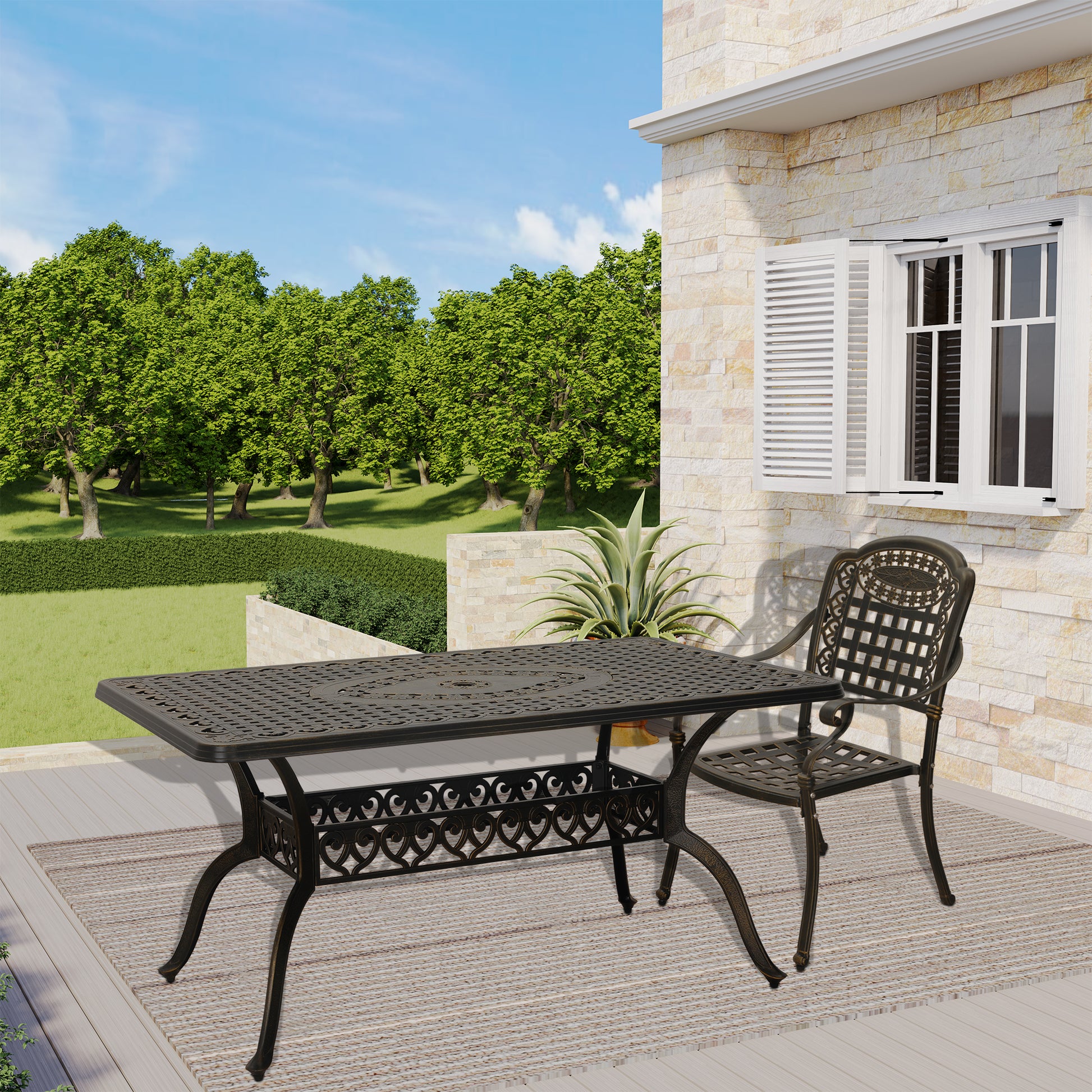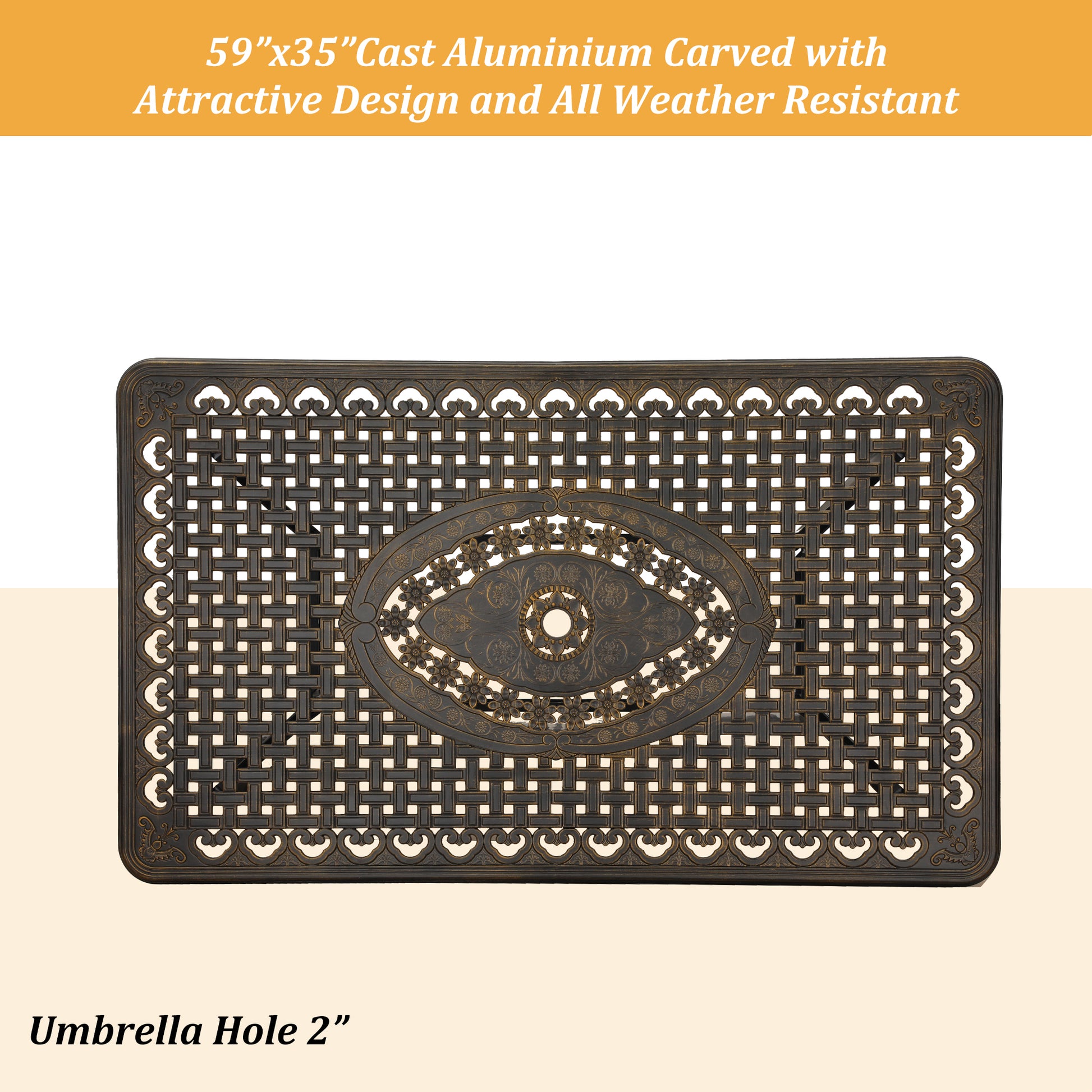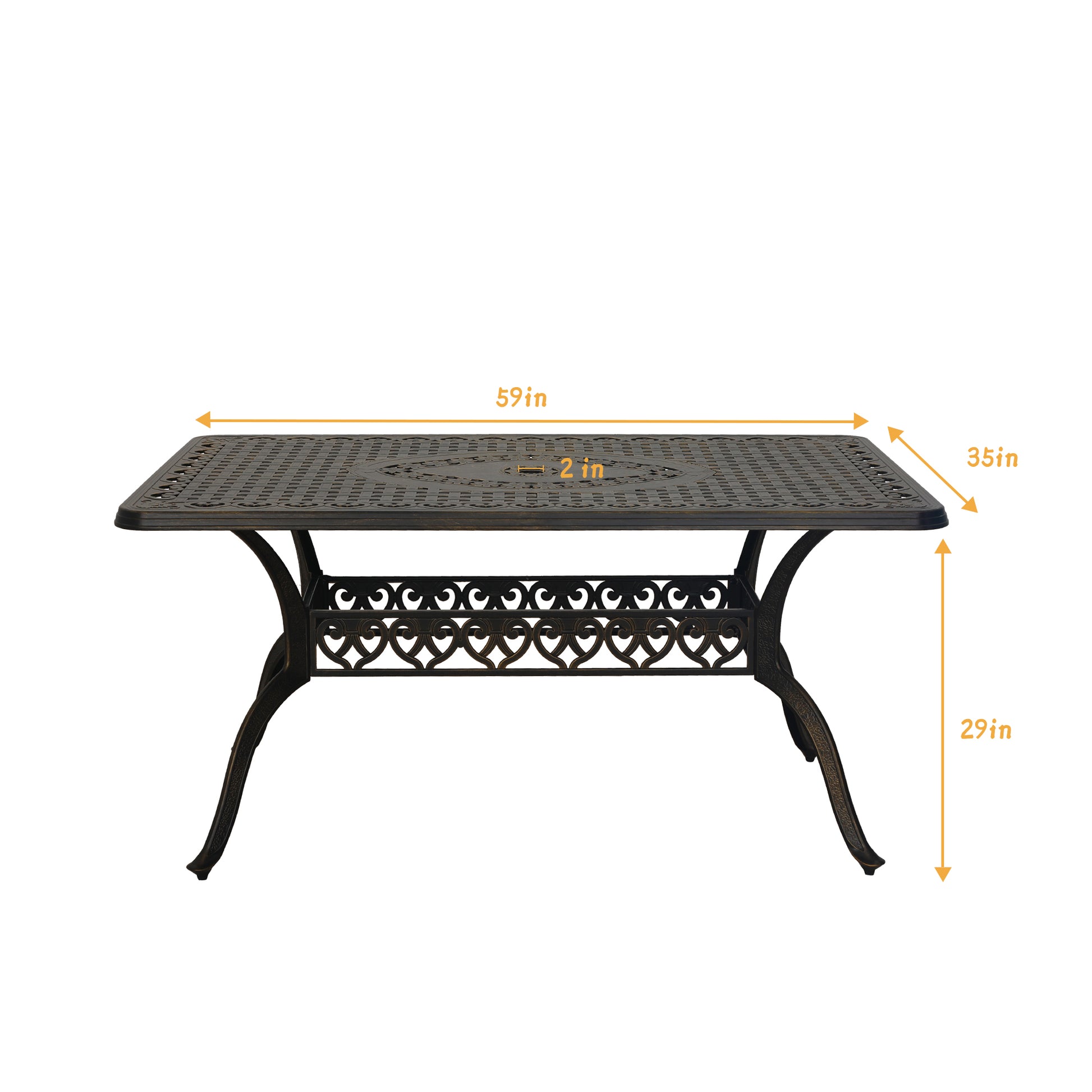 59 Inches Cast Aluminium Outdoor Dining Table with Umbrella Hole Patio Rectangular Dining Table Patio Bistro Table for Backyard Garden Patio, Antique Bronze