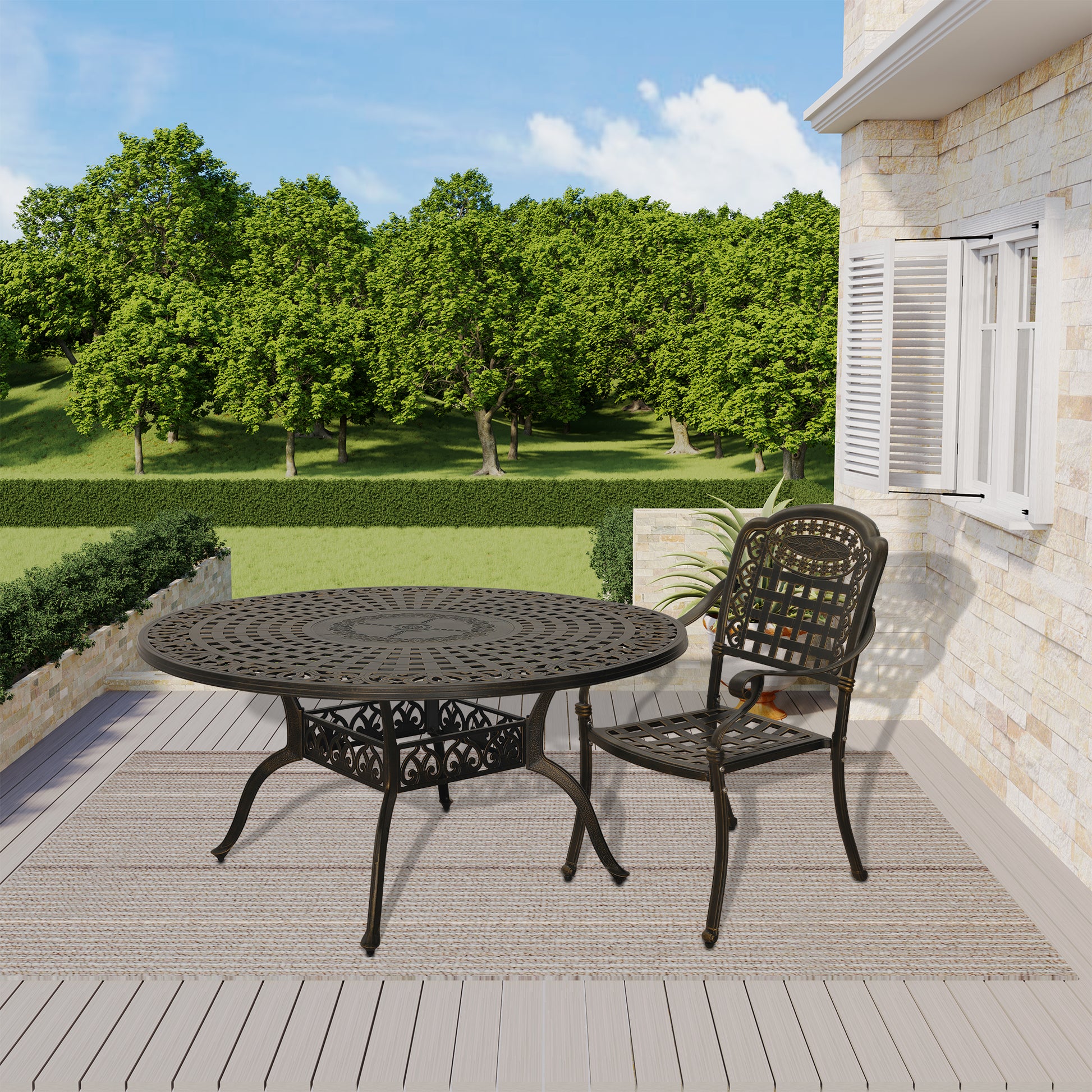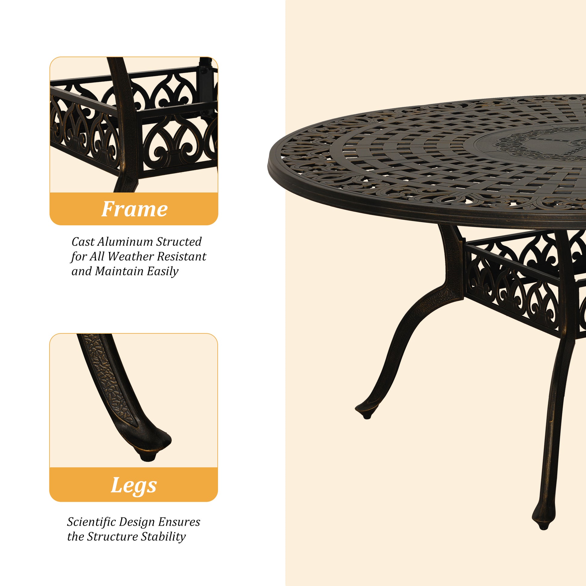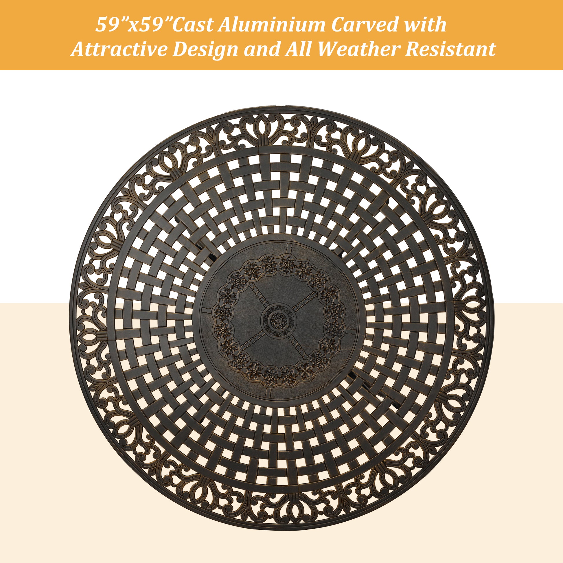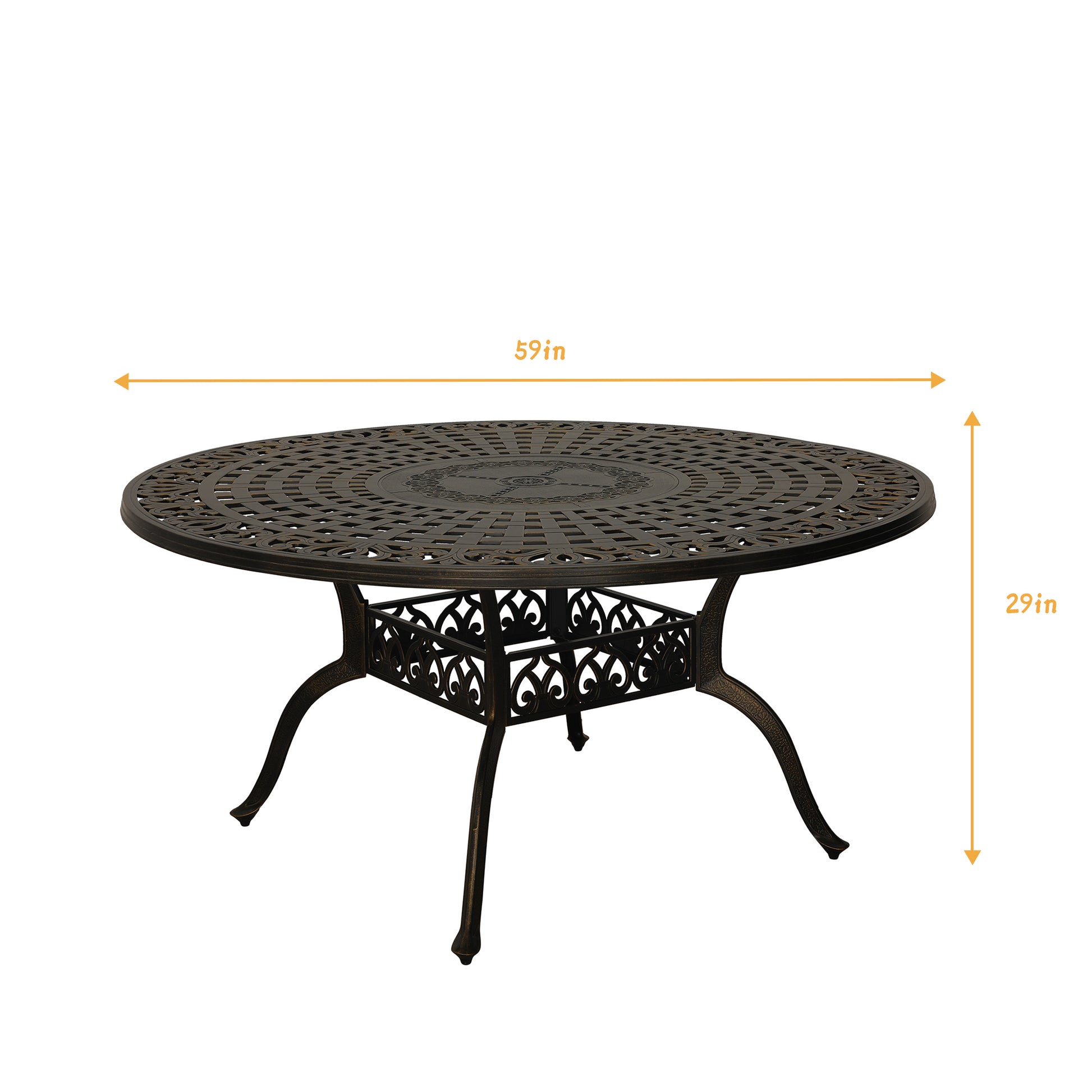 59 Inches Outdoor Dining Table Cast Aluminium Round Table Patio Dining Table All Weather Outdoor Bistro Table for Backyard Garden Patio