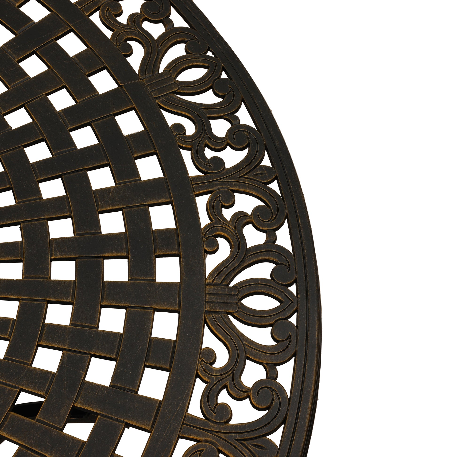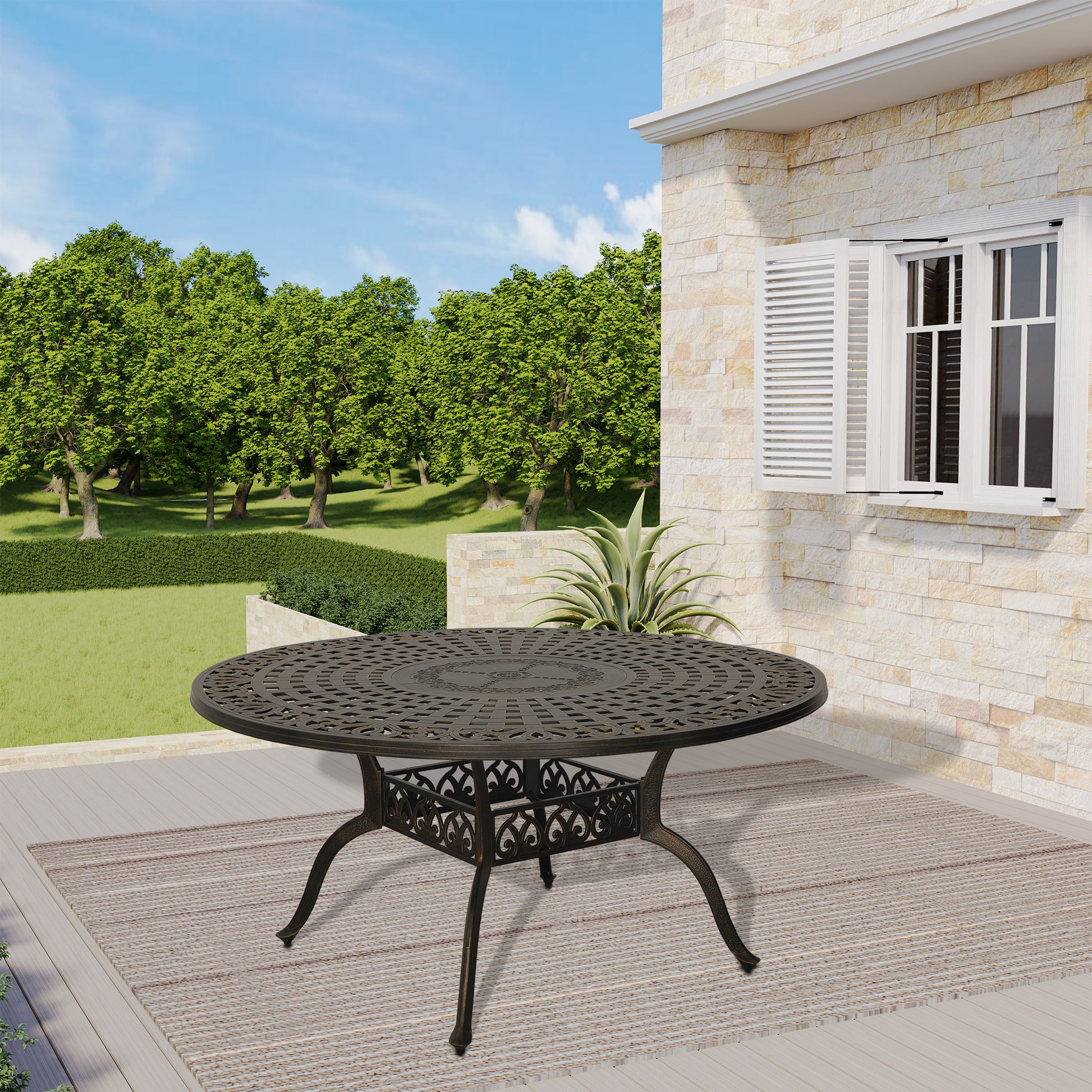 This 59 inches cast aluminum outdoor dining table is a comfortable and stylish outdoor furniture in your courtyard, which can accommodate 4-6 people. Relax and enjoy a meal outdoor with this dining table with your family and friends. Crafted from sturdy cast-aluminum with a powder-coated finish, this patio bistro table features an intricate design on its tabletop. Sure to be a focal point this table can be paired with dining chairs or join an eclectic mix of furniture on your patio or deck. It can be used in many occasions and can add decoration to your backyard, pool and more.