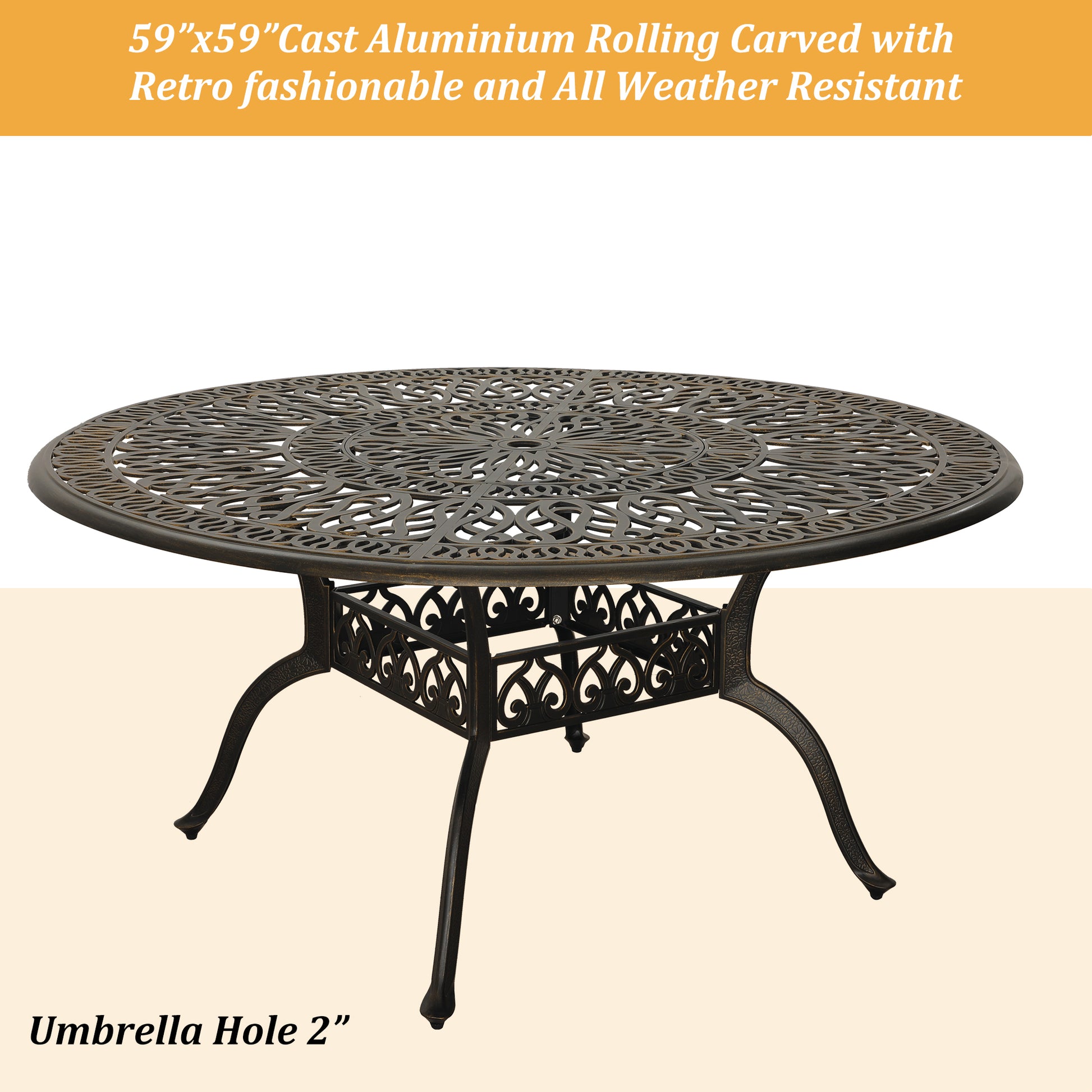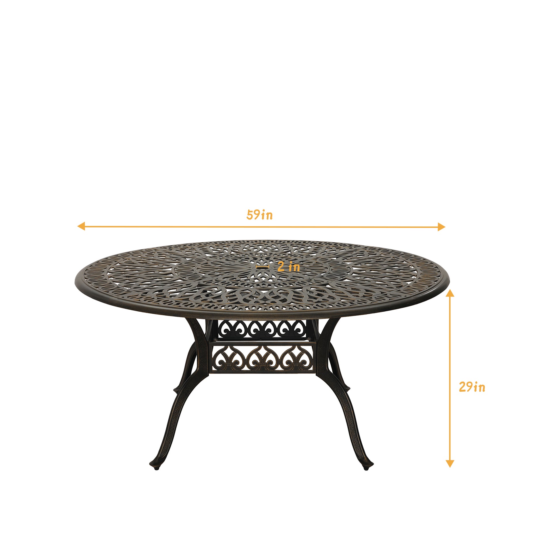 59 Inches Outdoor Dining Table Cast Aluminium Round Table Patio Dining Table with Umbrella Hole All Weather Outdoor Bistro Table for Backyard Garden Patio