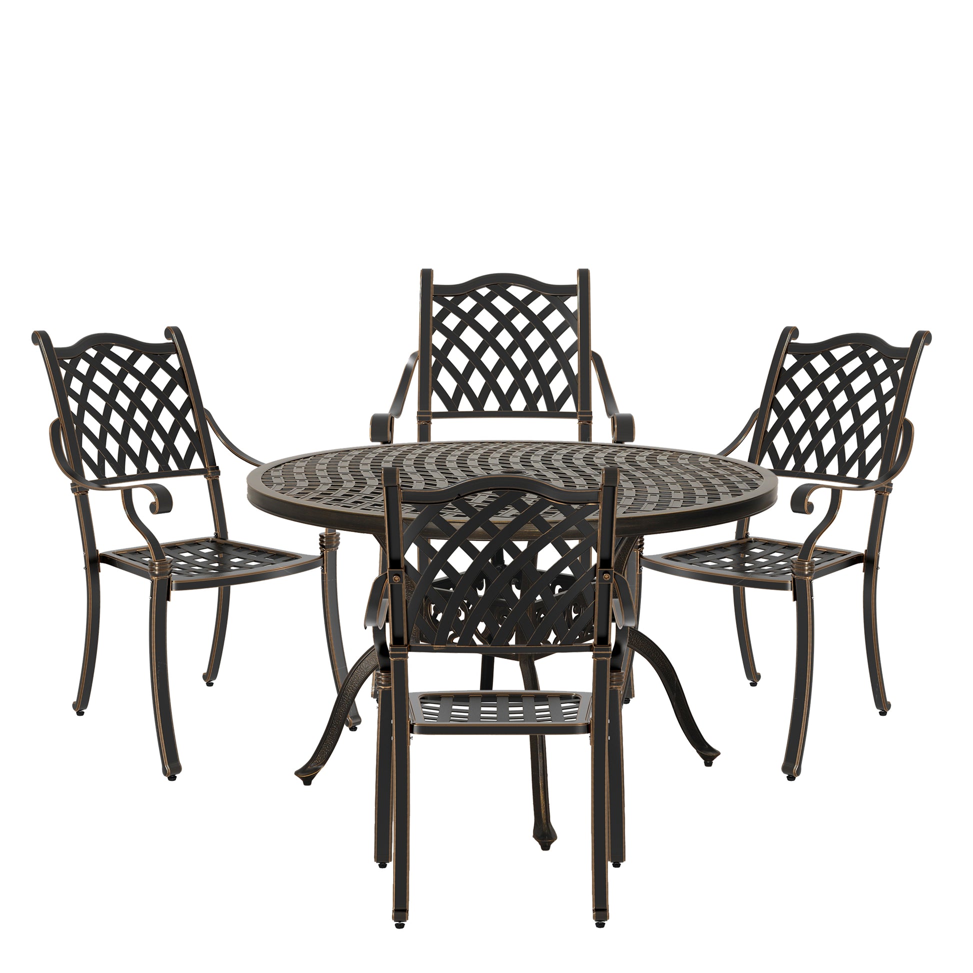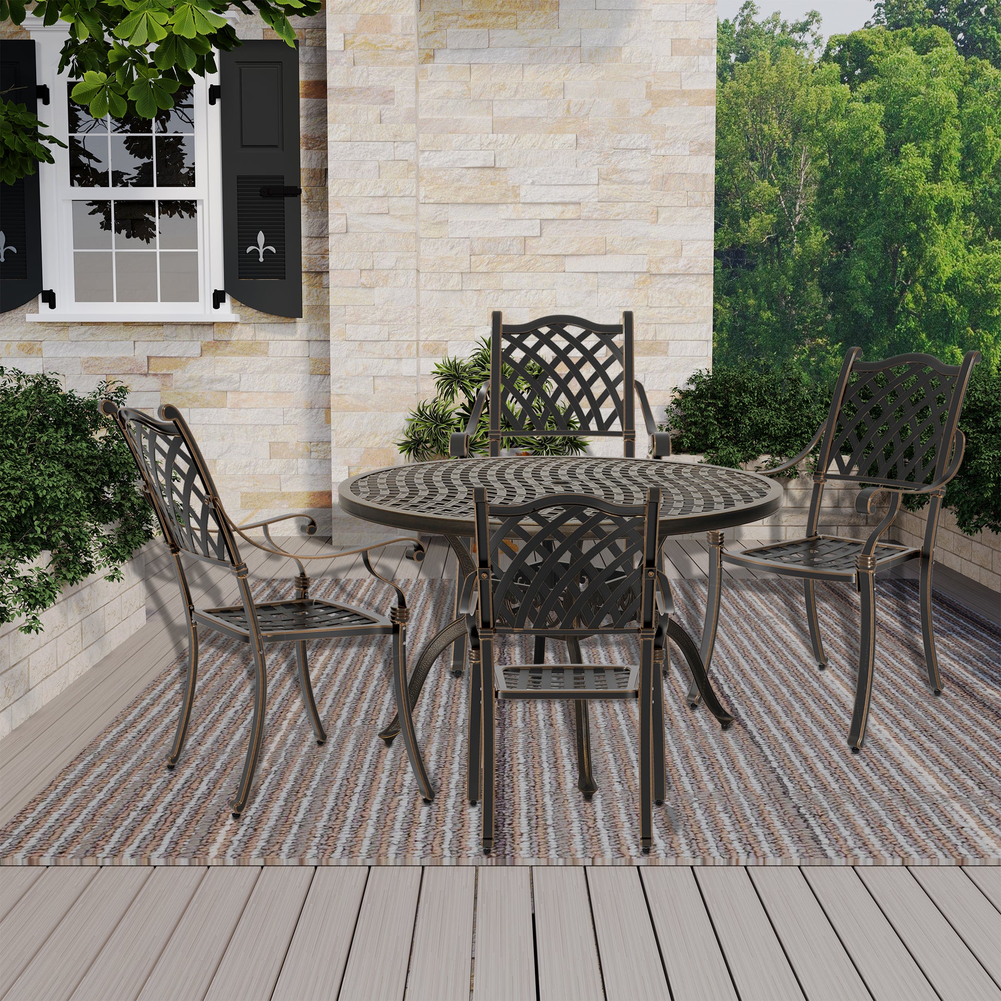 5pcs Patio Dining Set Cast Aluminium Outdoor Dining Set Patio Bistro Set 4 Outdoor Dining Chairs and 47 Inches Round Dining Table for Balcony Porch Backyard Garden, Bronze