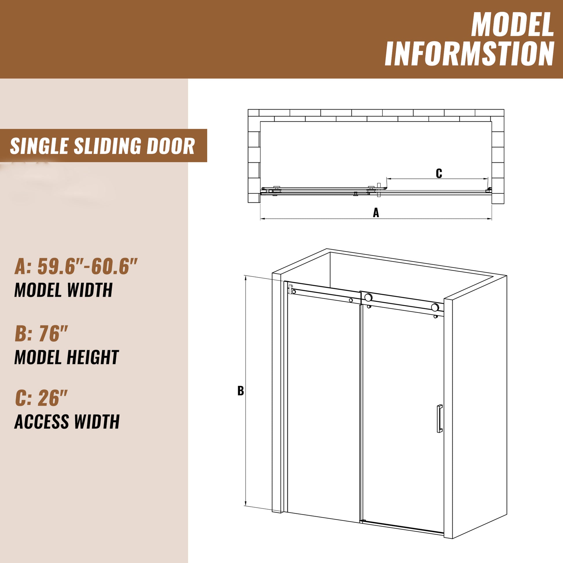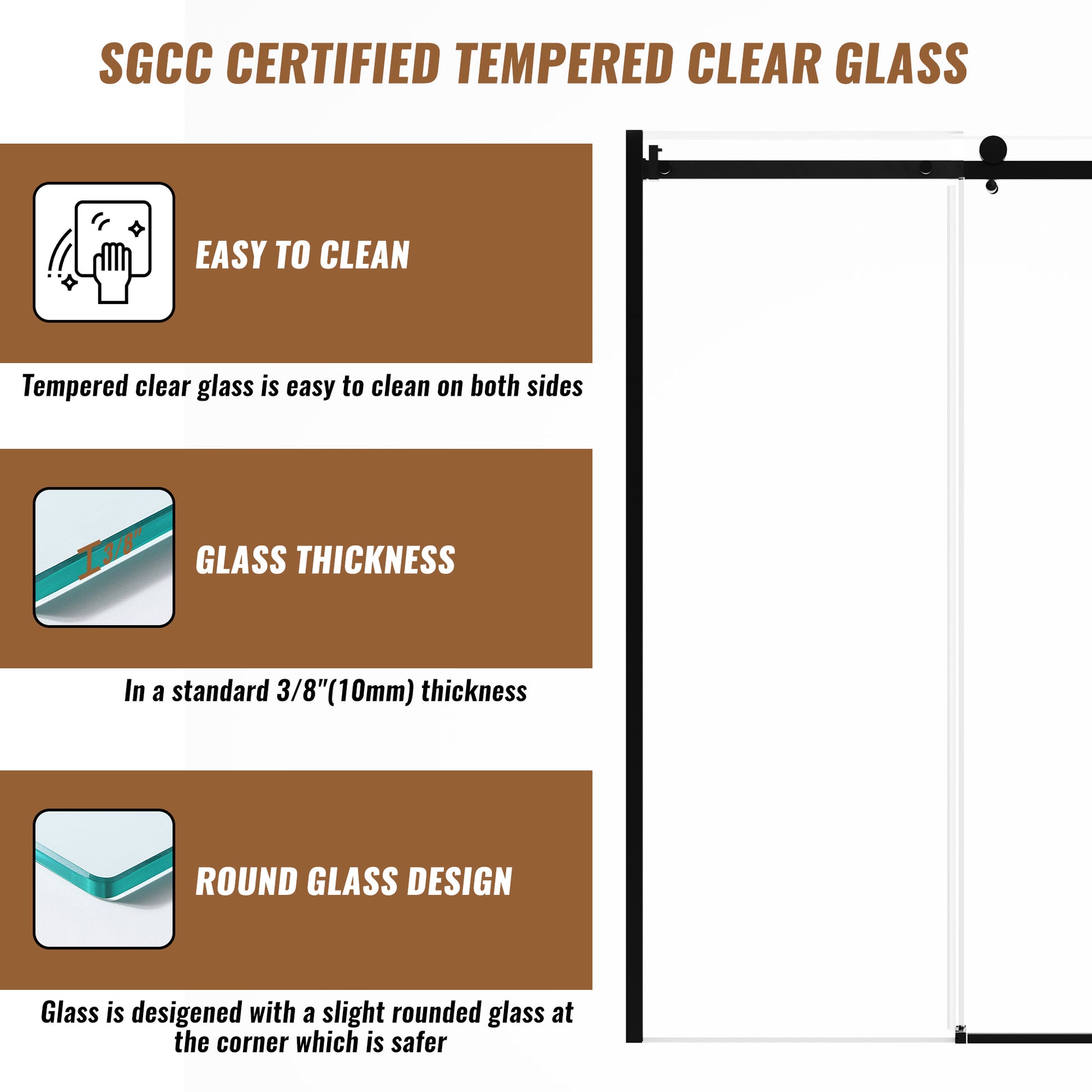 60.6 in. W x 76 in. H Frameless Glass Shower Door in Matte Black with Glass Certified by SGCC
