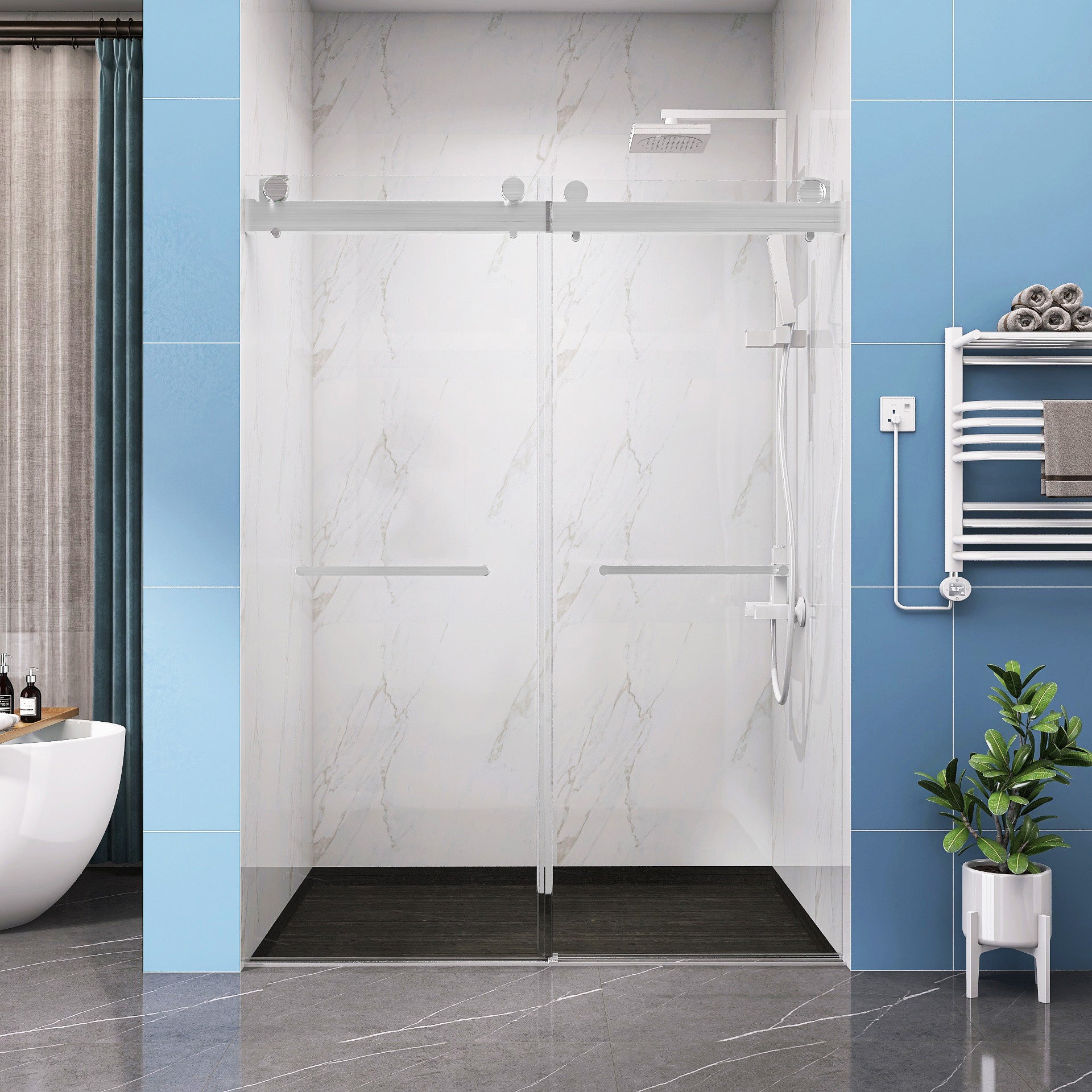 60Wx79H Brushed Nickel Frameless Double Sliding Shower Door with 10mm Tempered Glass
