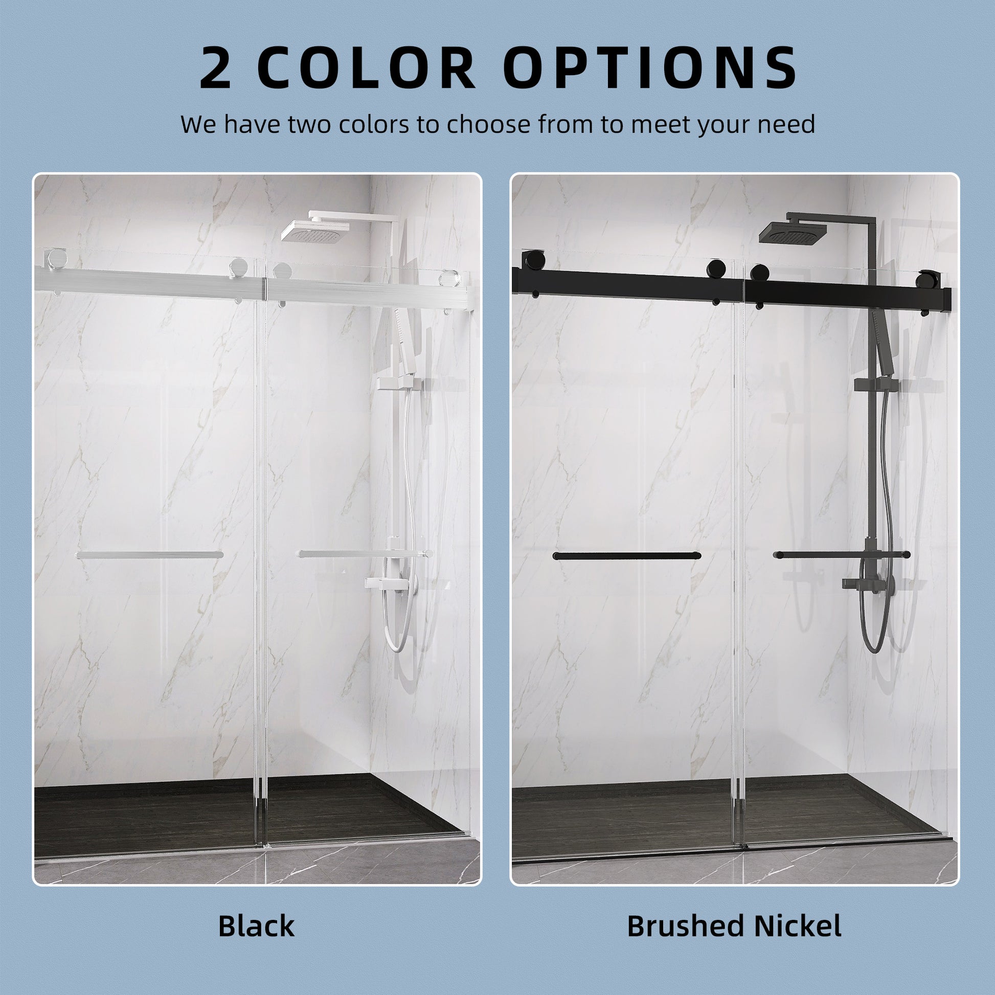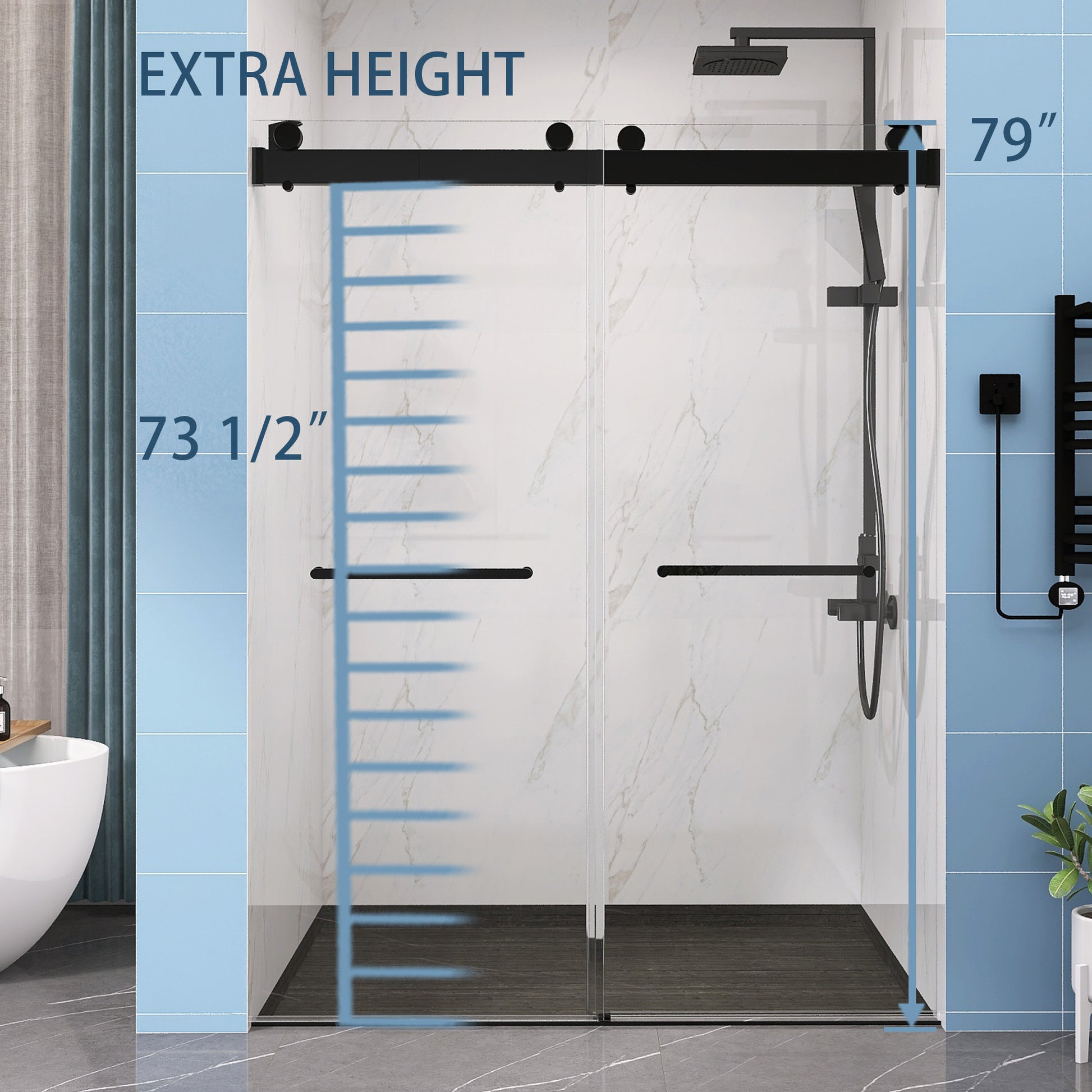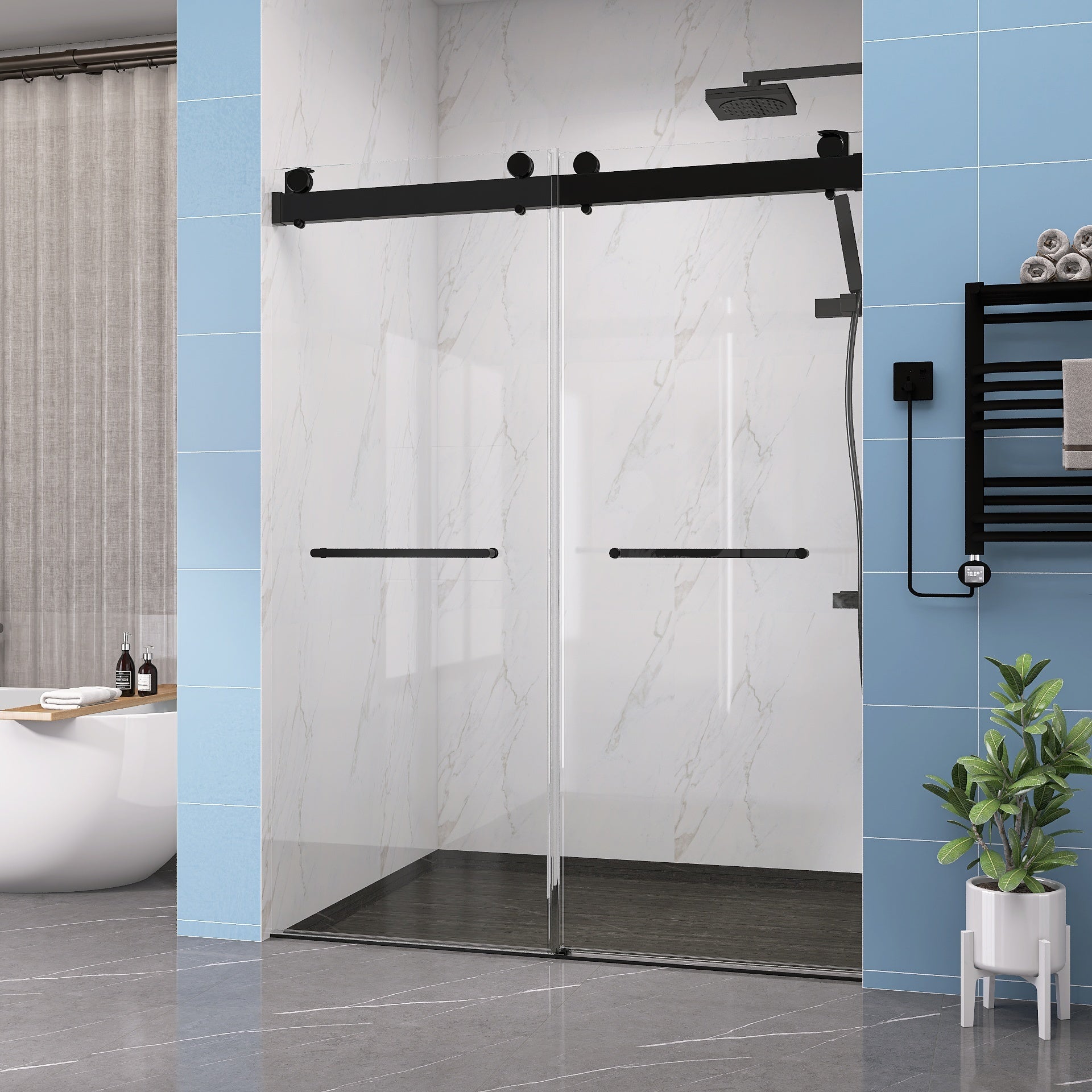 60Wx79H Matte Black Frameless Double Sliding Shower Door with 10mm Tempered Glass