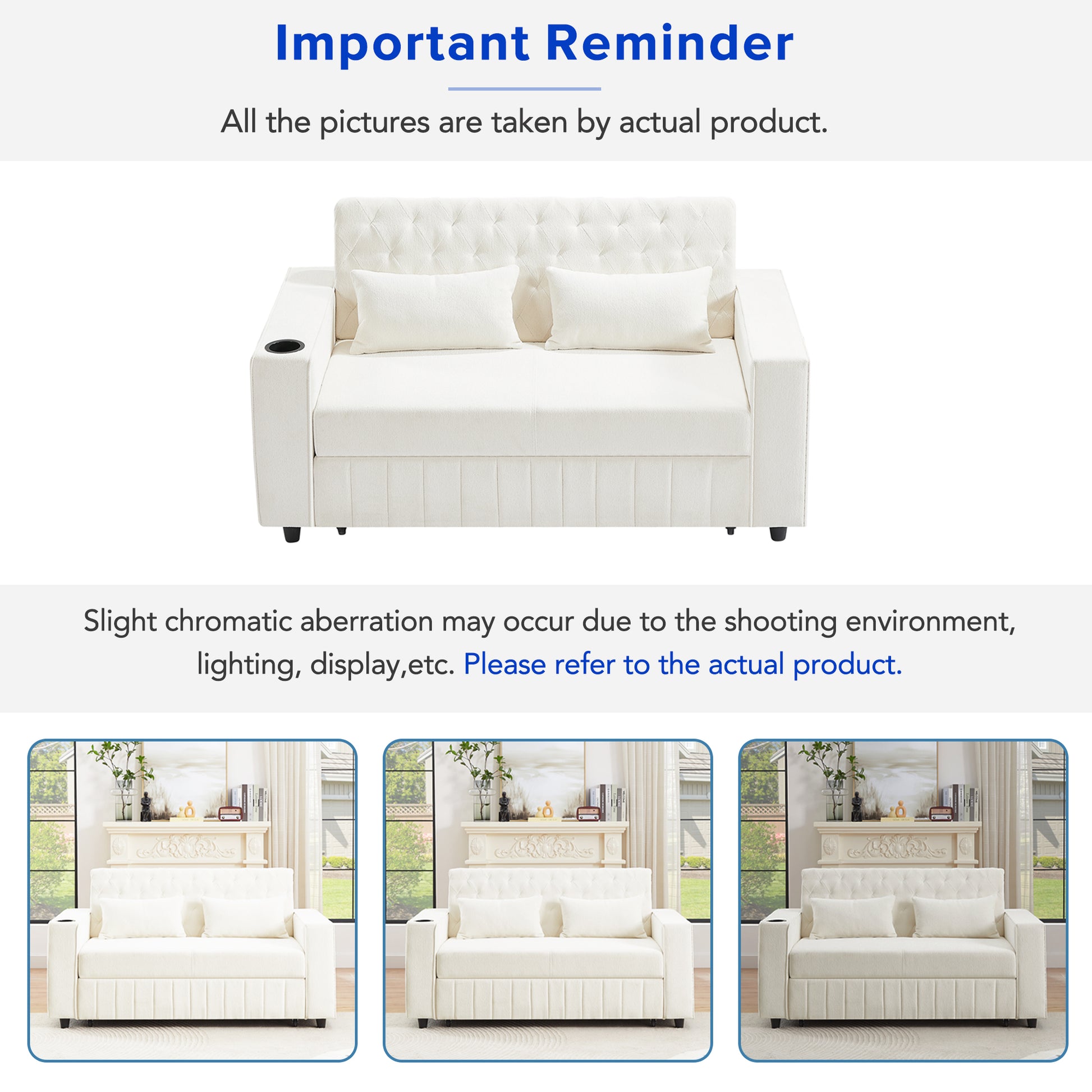61.4 inch Pull-out Sofa Bed Convertible Couch Loveseat Sofa Modern Sleeper Sofa with Adjustable Backrest for Living Room Beige