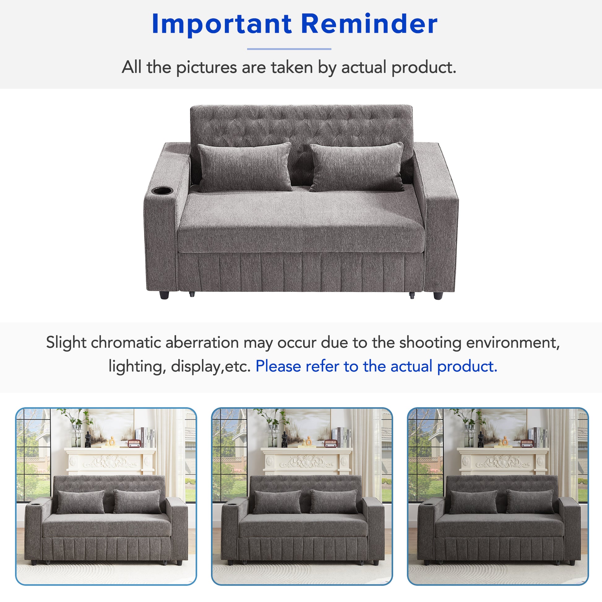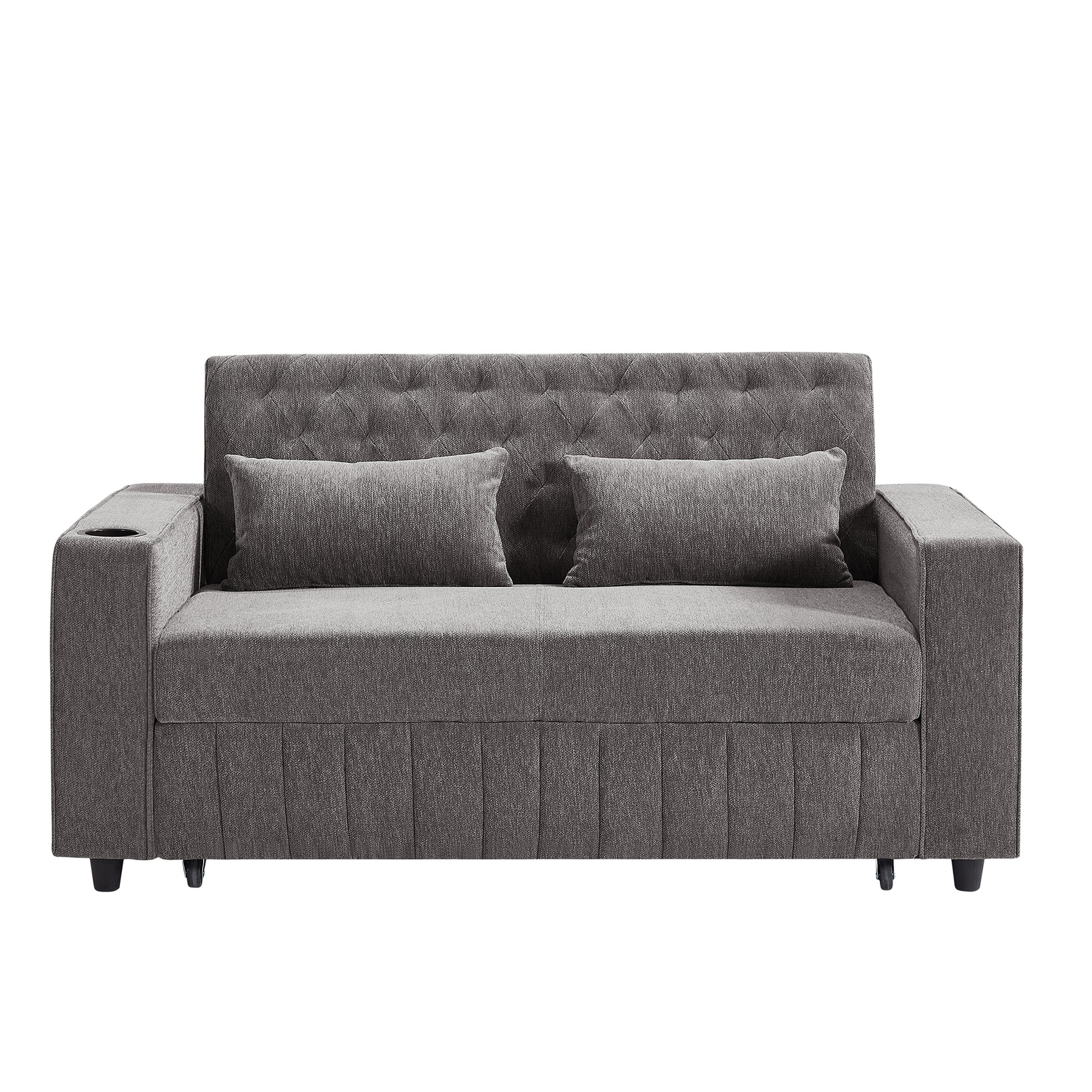 61.4 inch Pull-out Sofa Bed Convertible Couch Loveseat Sofa Modern Sleeper Sofa with Adjustable Backrest for Living Room Grey