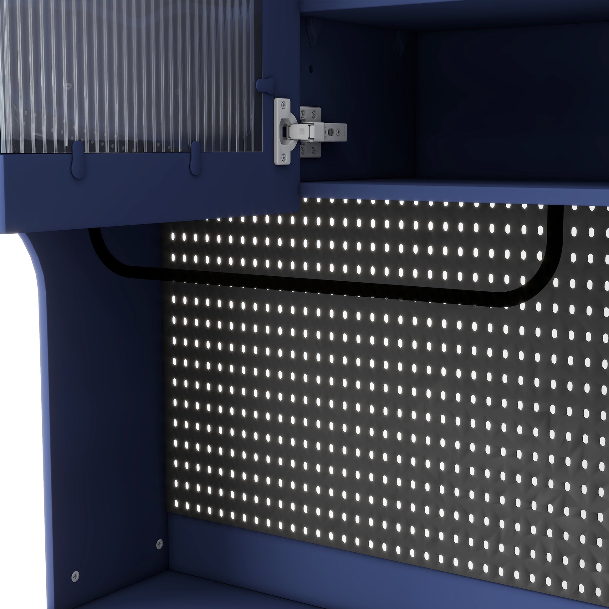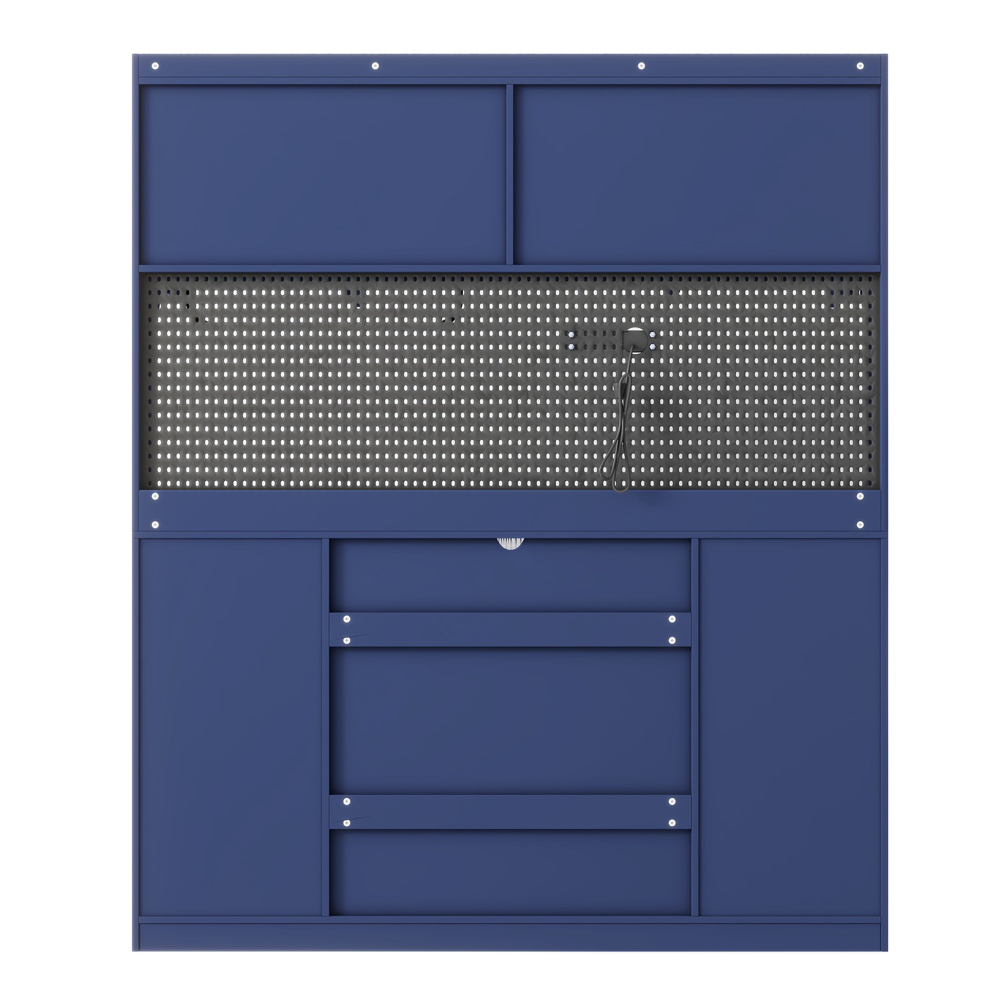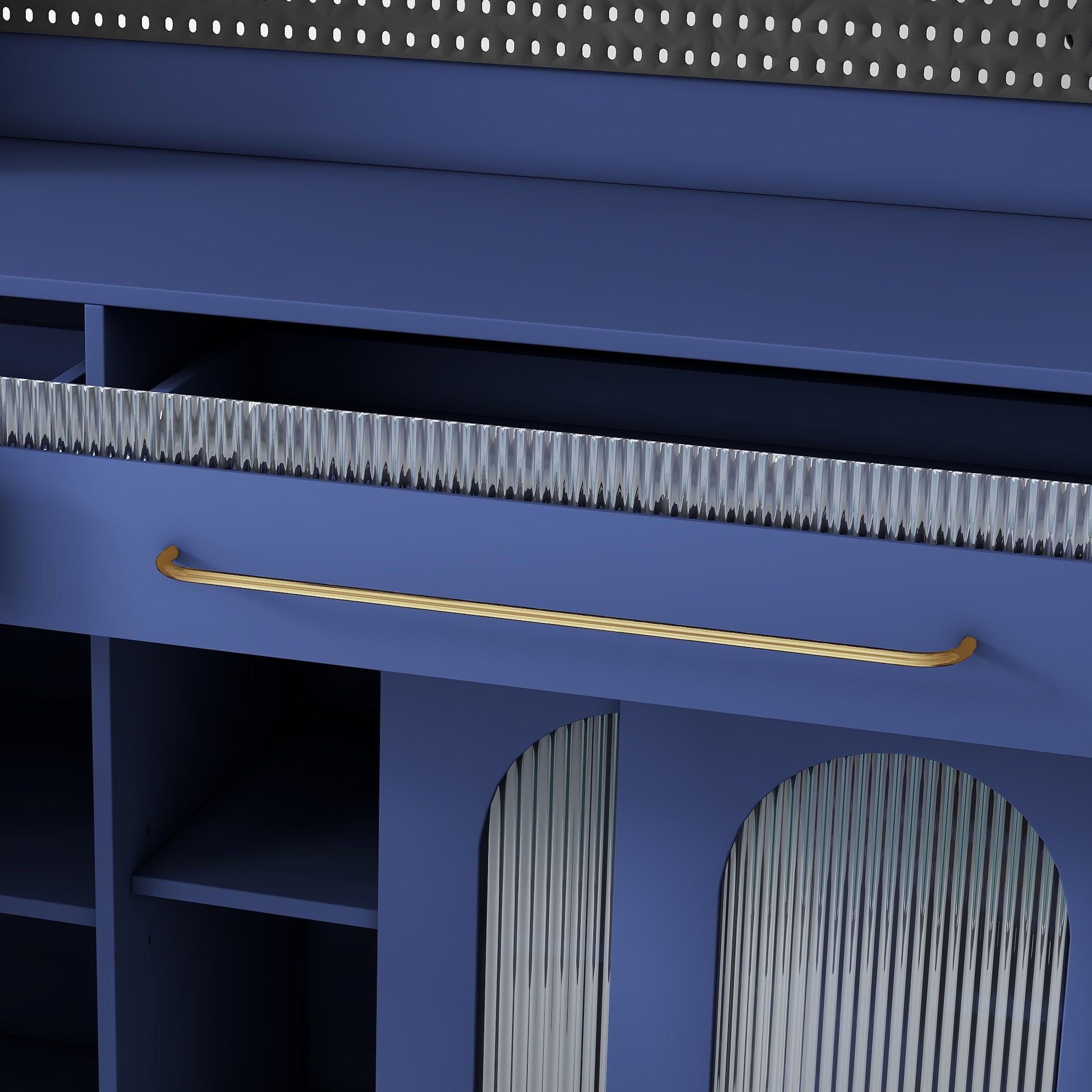 63 in Freestanding Buffet with Hutch Coffee Bar Cabinet with 6 Drawers 5 Cabinets Adjustable Shelves Pegboard Towel Rack and Power Outlet Blue