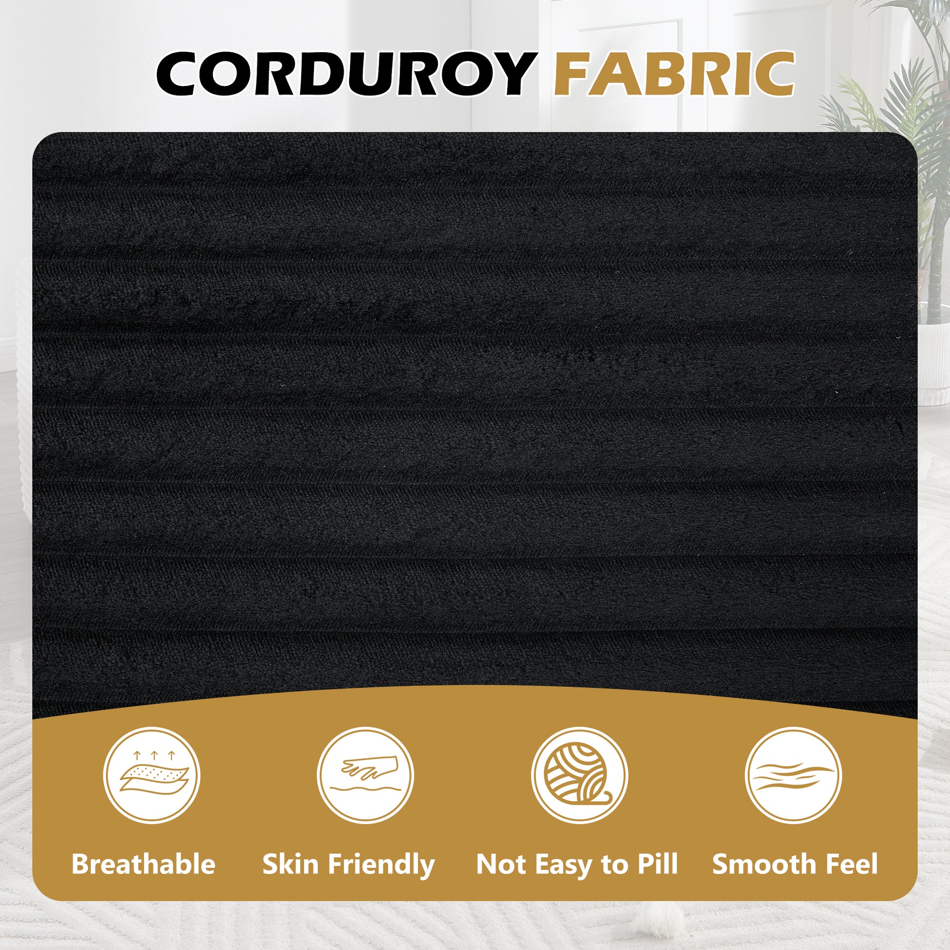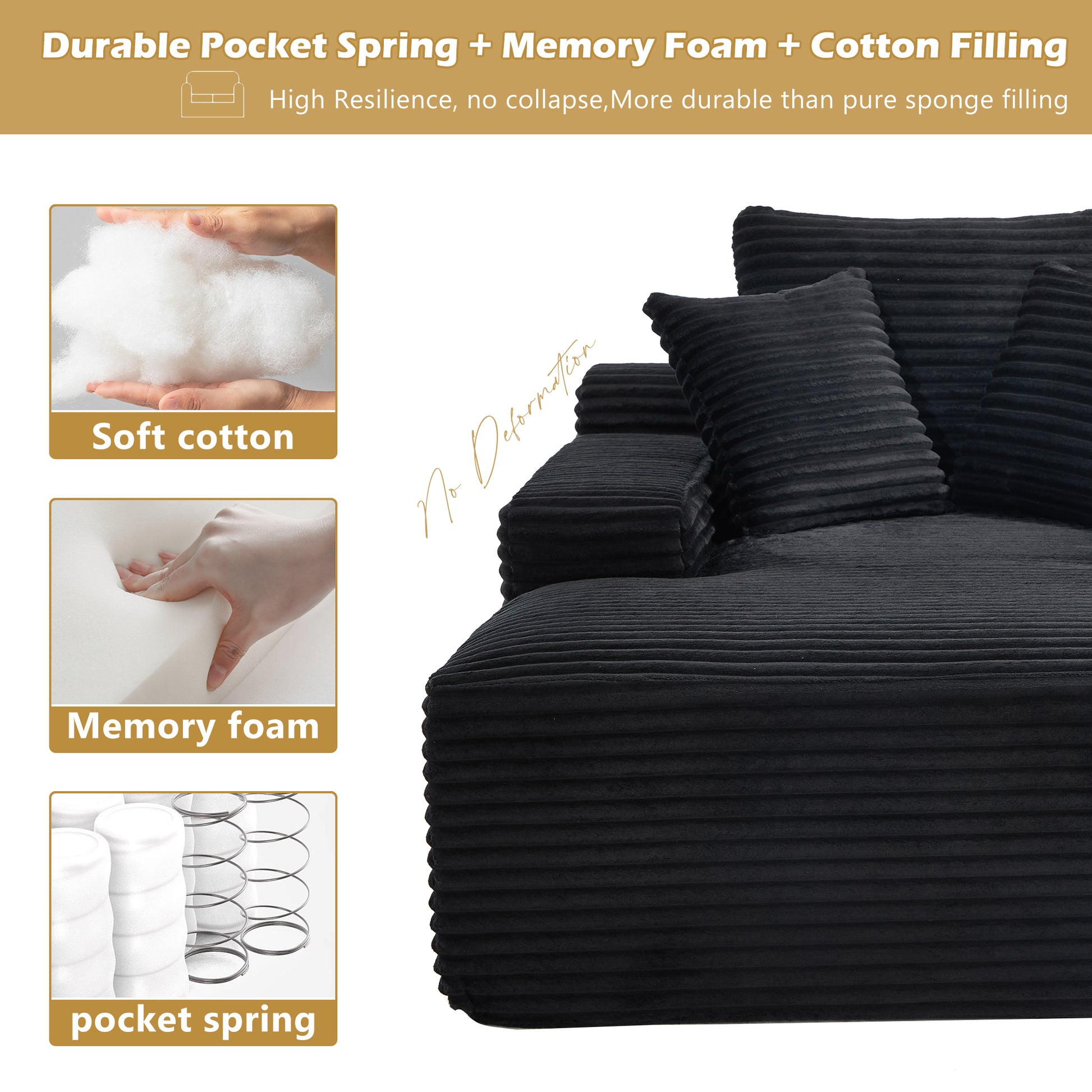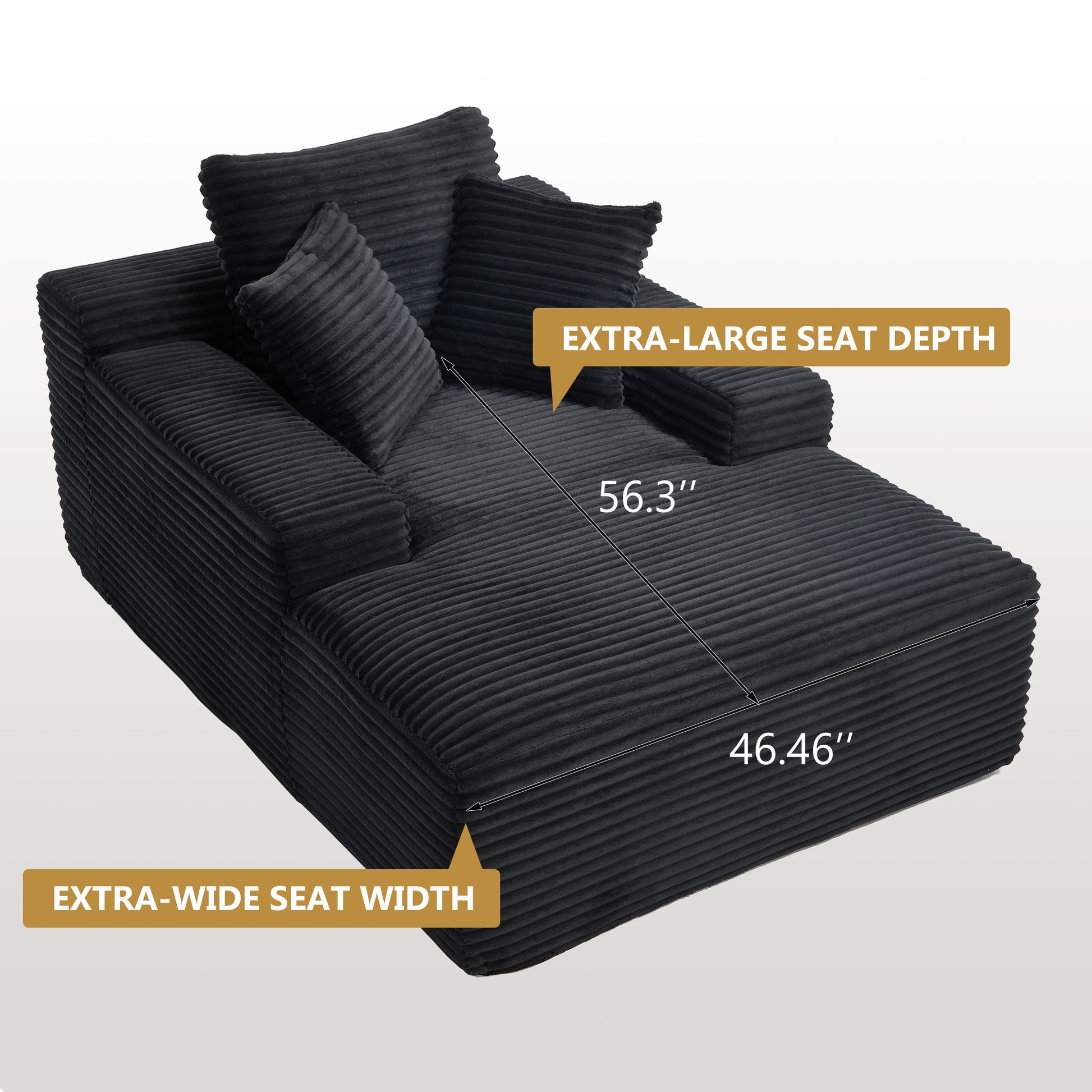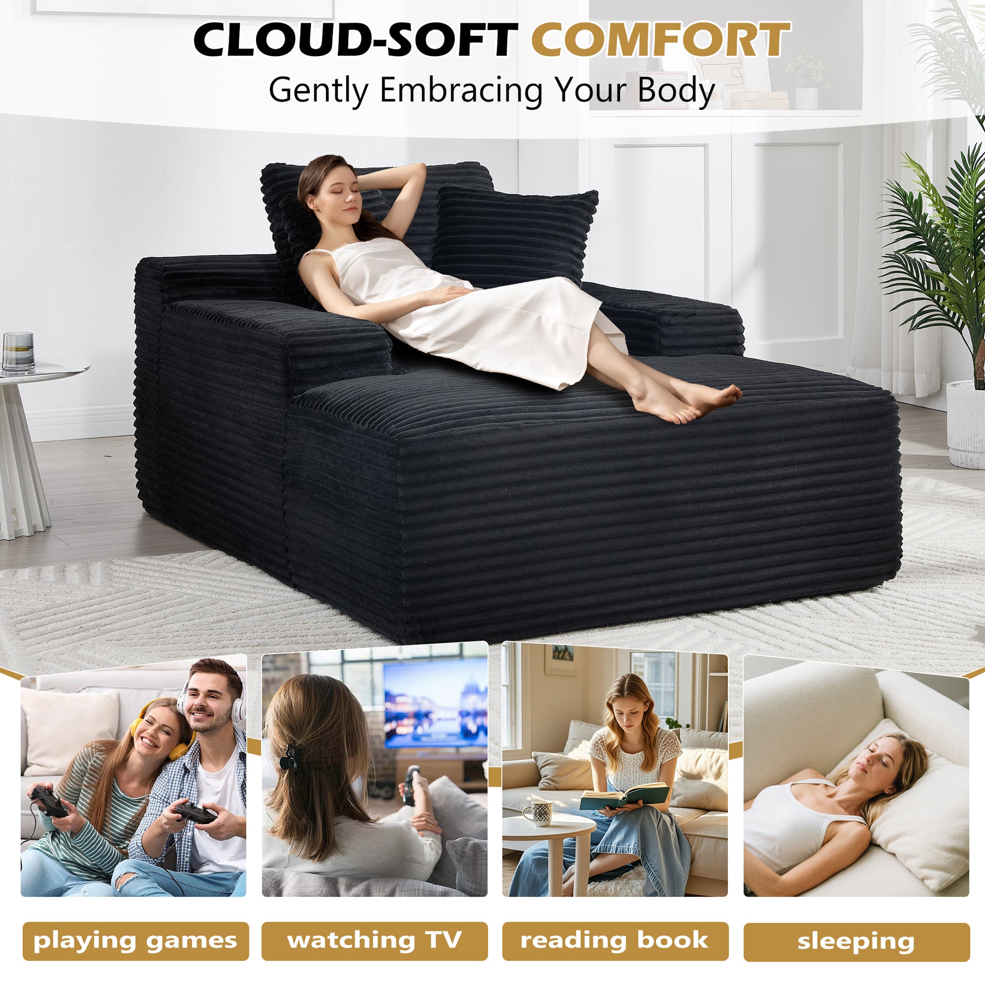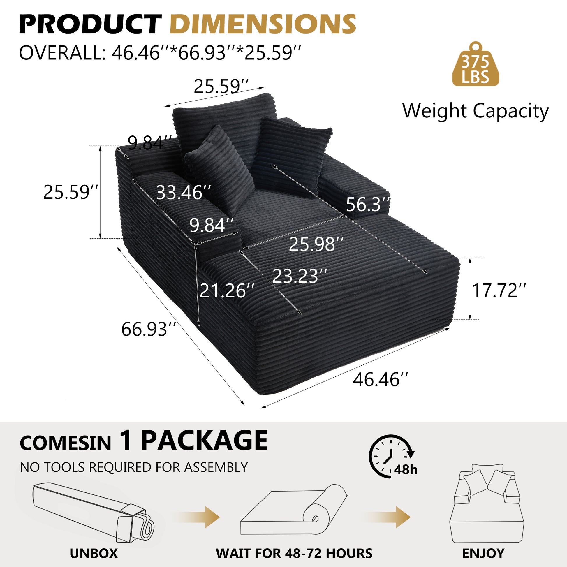 67 in. Chaise Lounge Chair 9.9 in. Wide Armrest Indoor Corduroy Oversized Sleeper Sofa for Living Room Deep Seat Lounge and Three Soft Pillows Convertible Boneless Sofa Bed, Black, No Assembly Required
