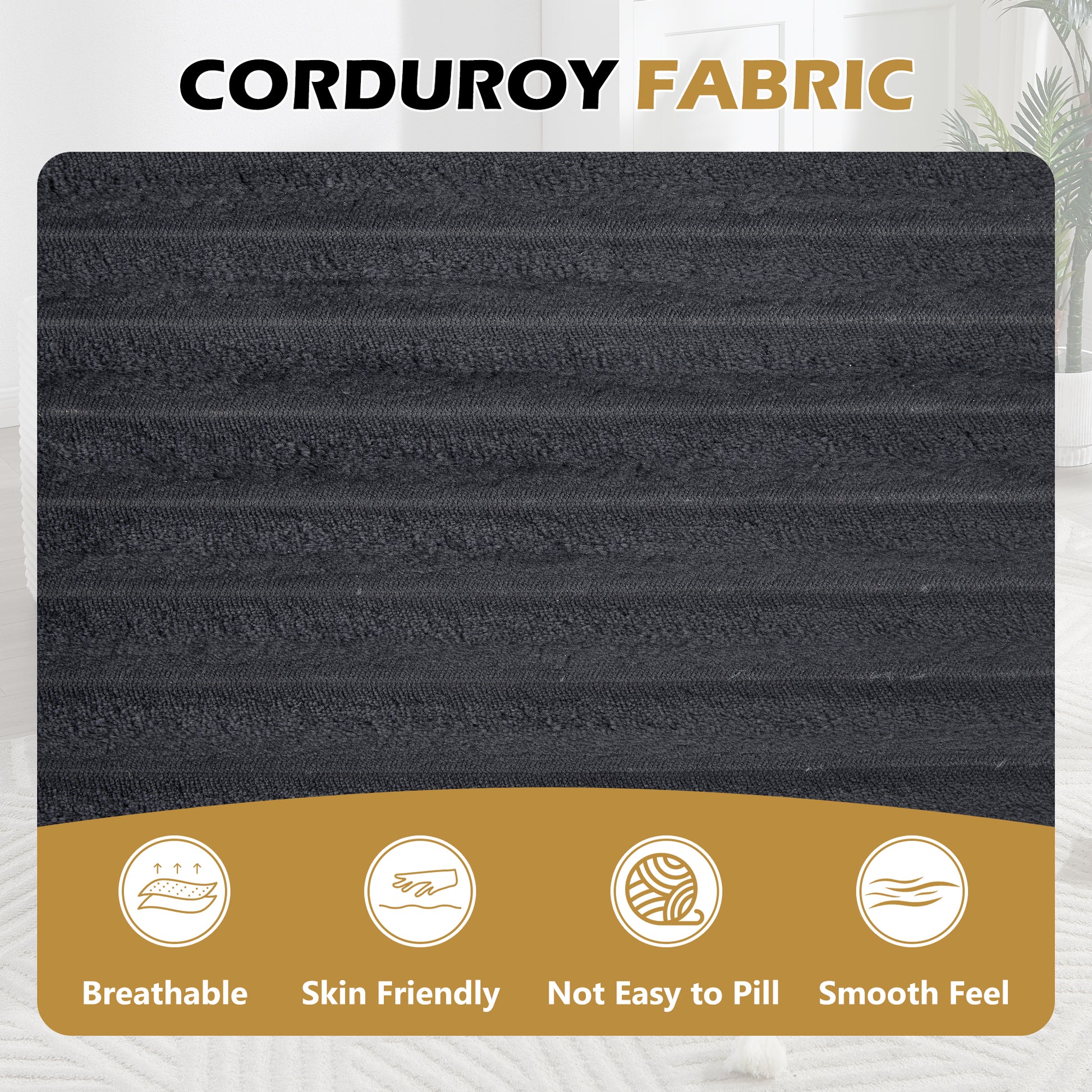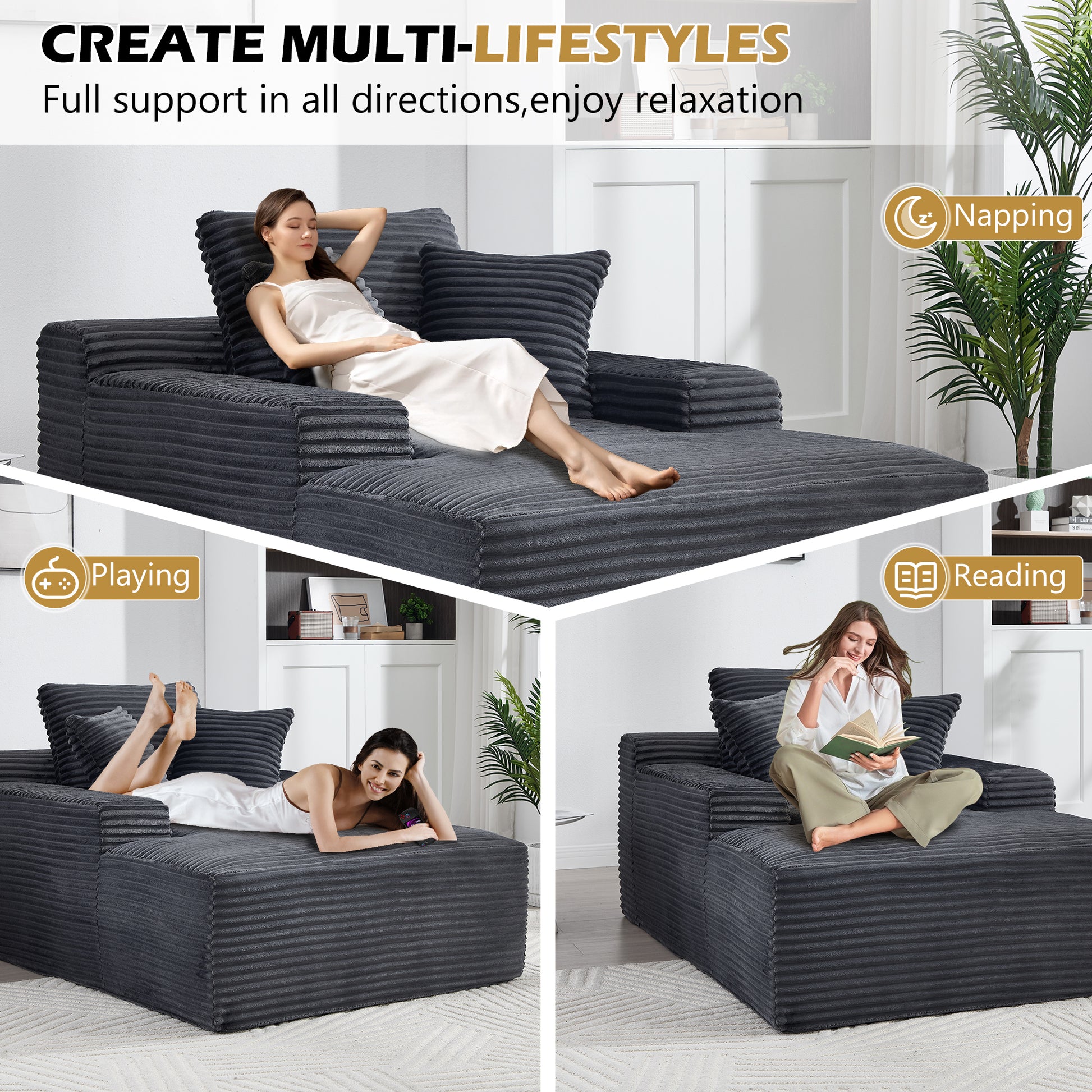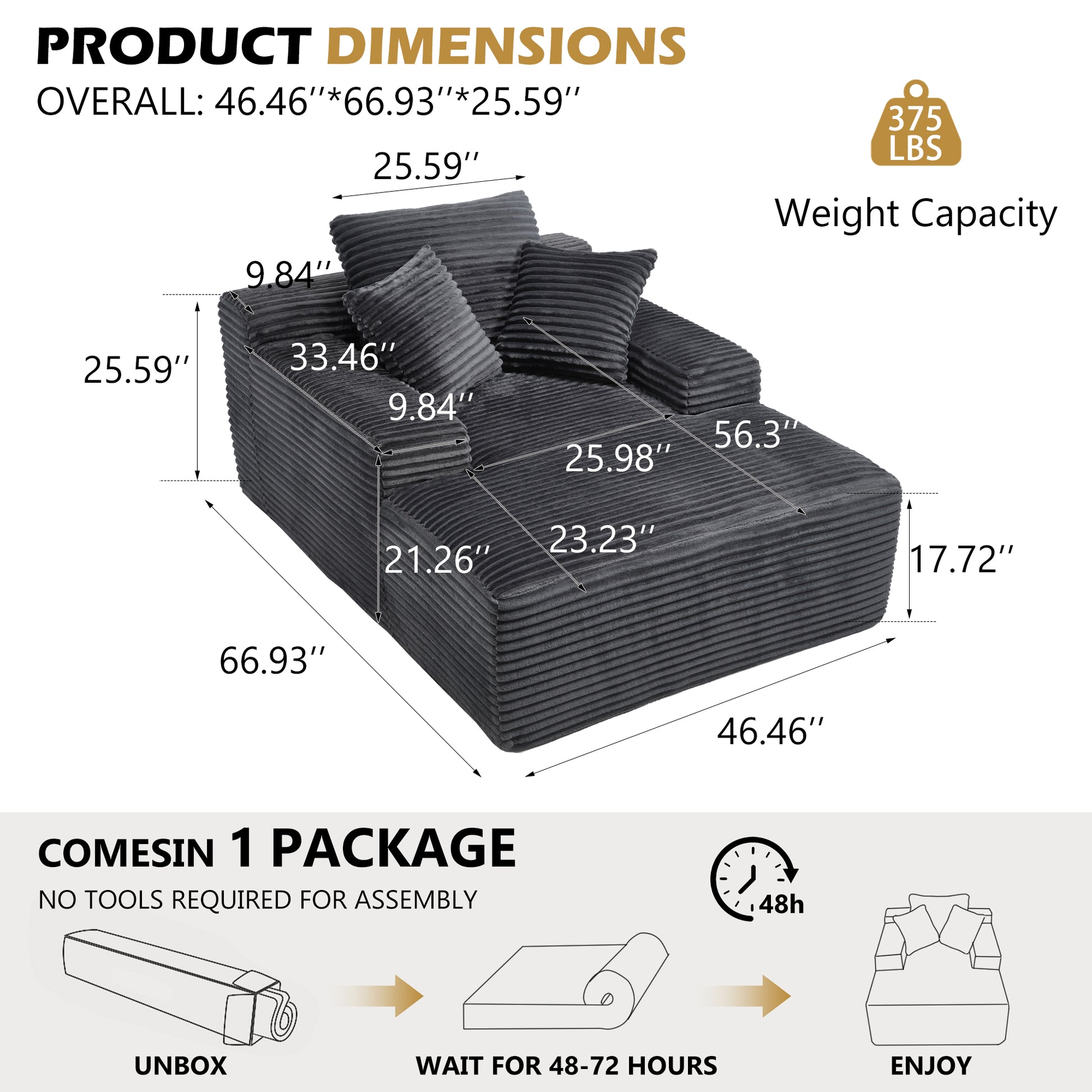 67 in. Chaise Lounge Chair 9.9 in. Wide Armrest Indoor Corduroy Oversized Sleeper Sofa for Living Room Deep Seat Lounge and Three Soft Pillows Convertible Boneless Sofa Bed, Deep Grey, No Assembly Required