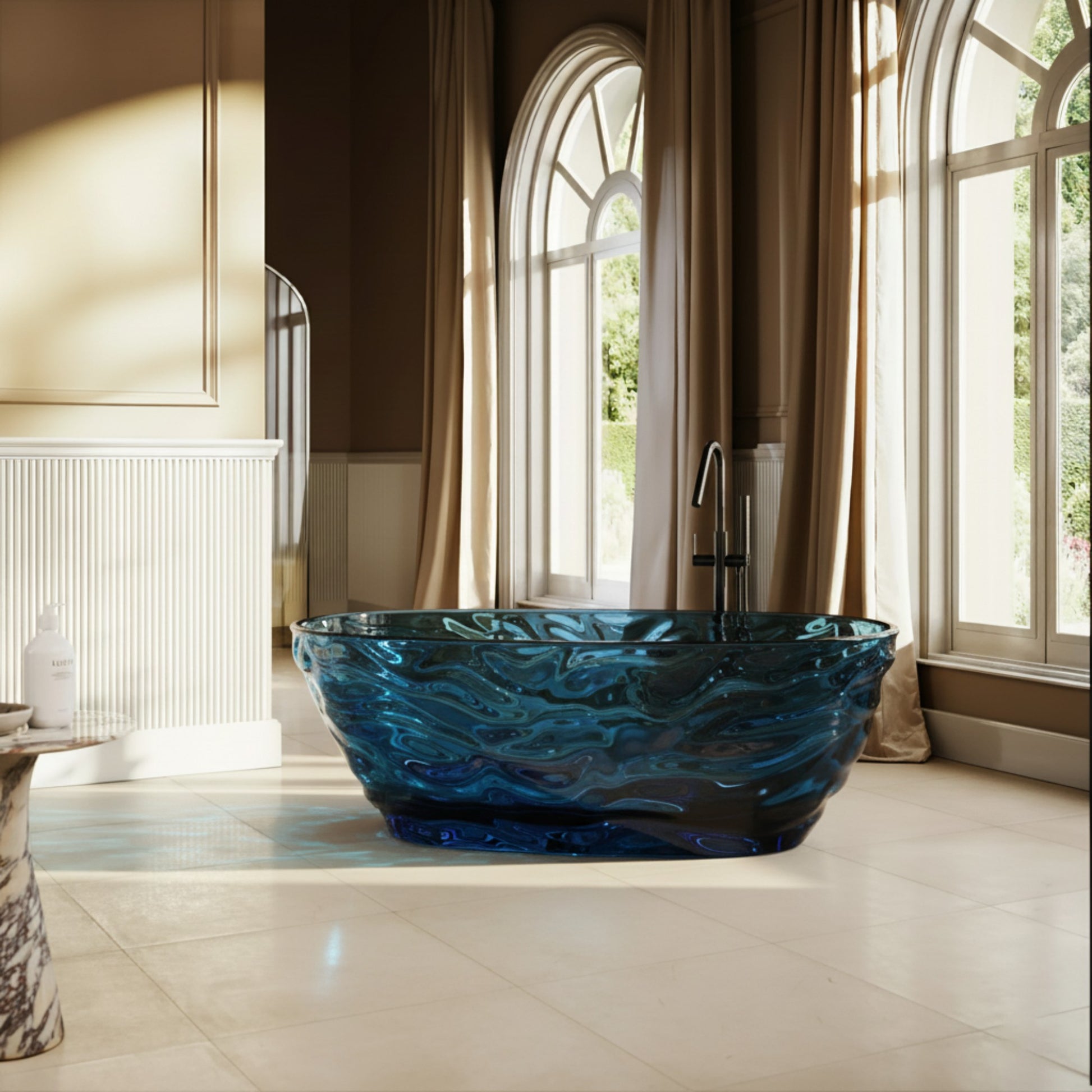 67 Inch Oval Lake Blue Resin Modern Style Freestanding Soaking Bathtub