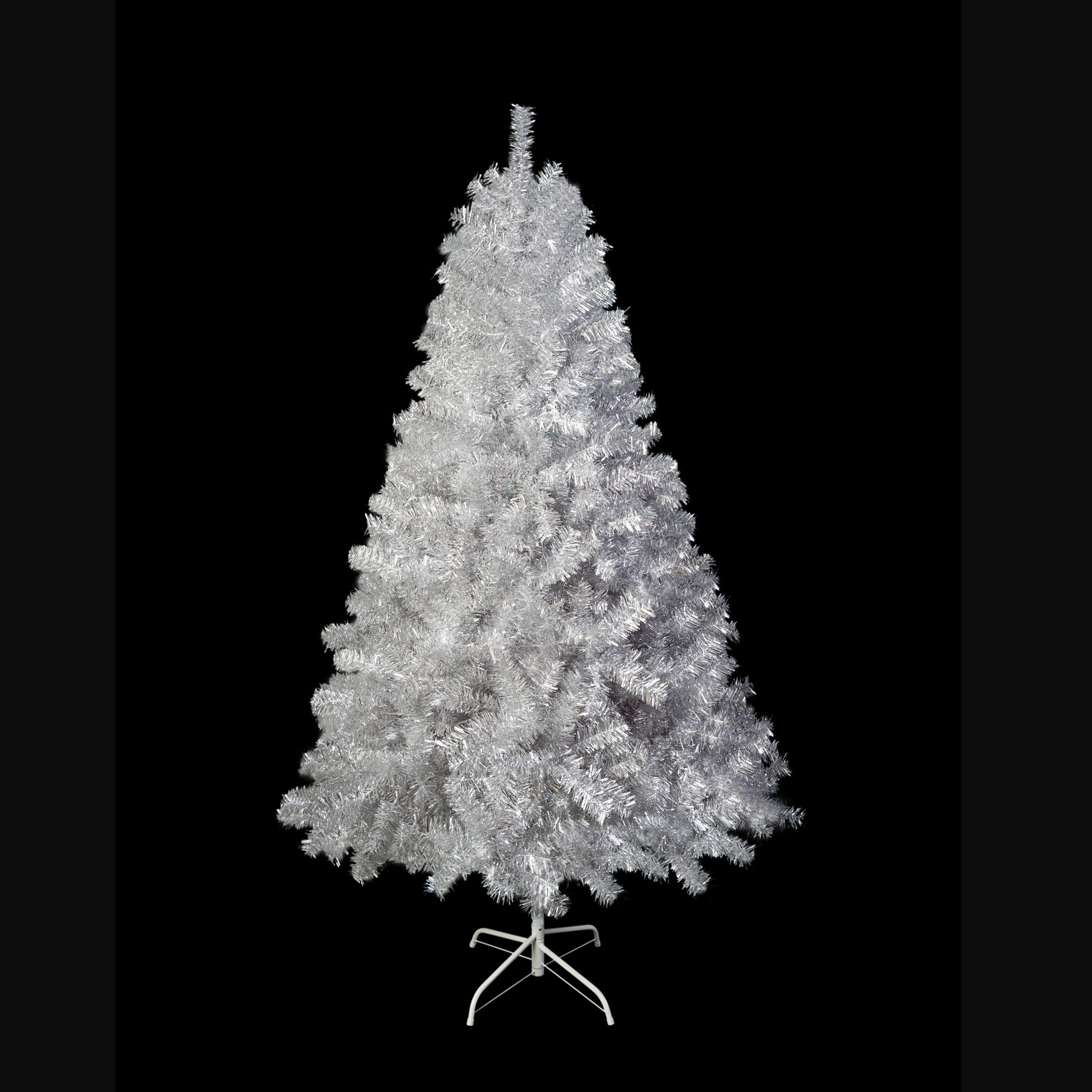 6FT Sliver Pre-Lit Artificial Christmas Tree, Hinged Full Tree with Metal Stand, 800 Branch Tips, 300 LED Lights,11 Lighting Modes, Holiday Decoration Tree for Indoor and Outdoor