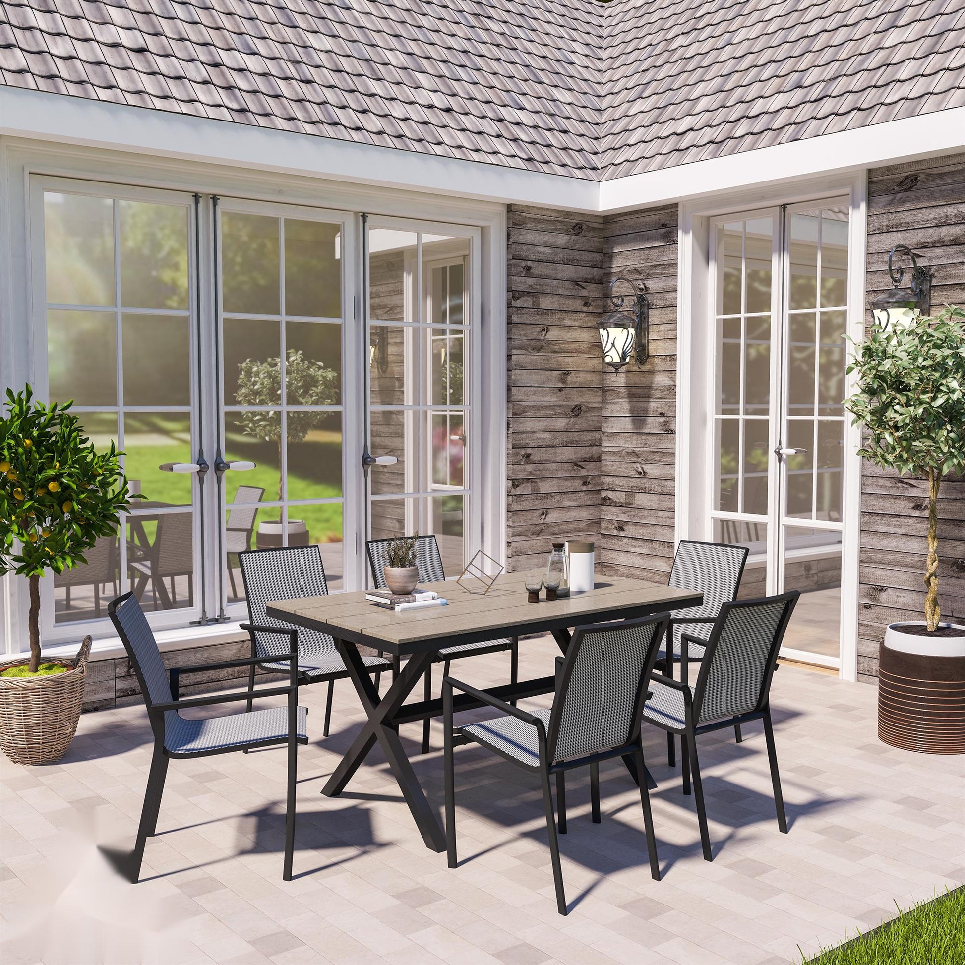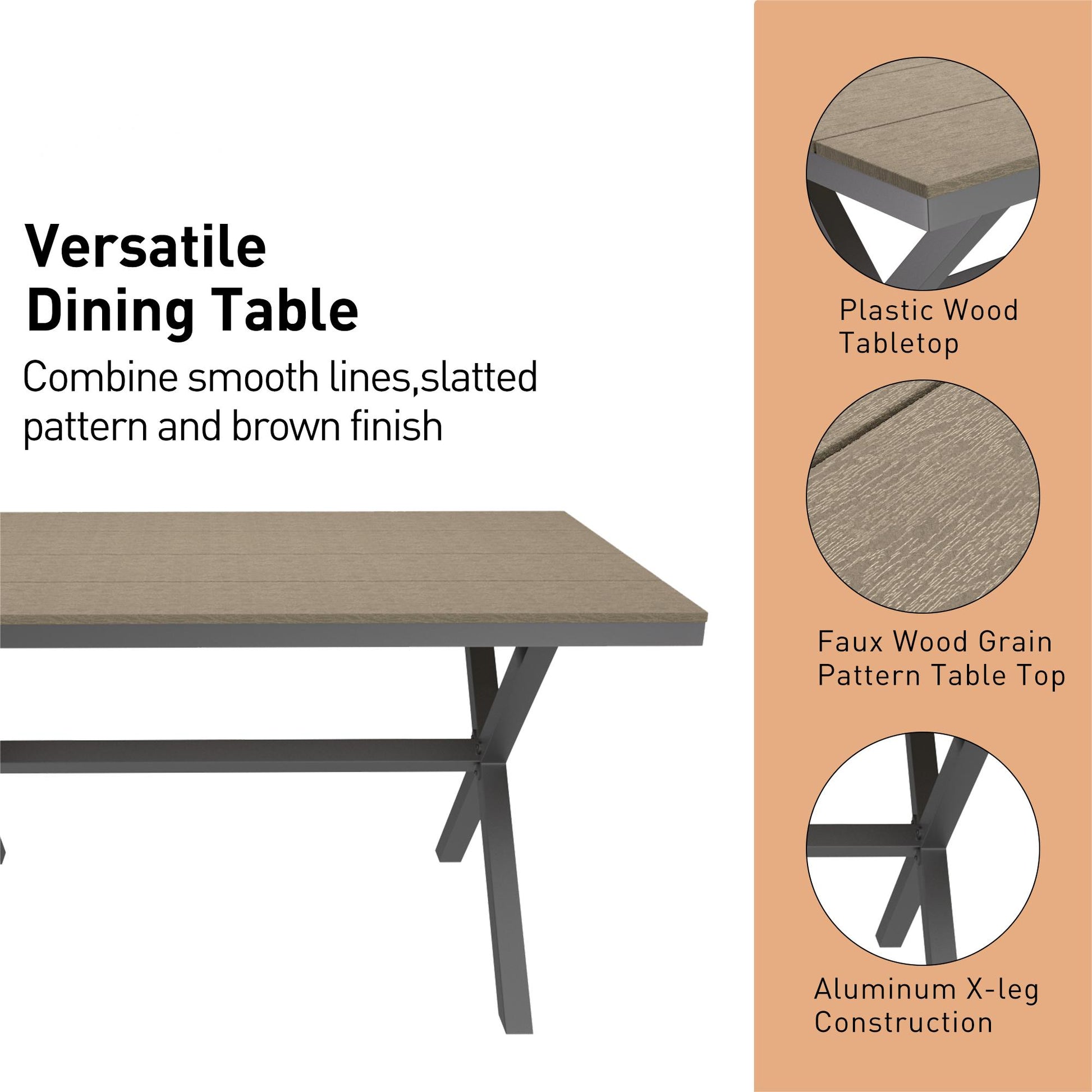 7-Piece Aluminum Frame Outdoor Dining Set with Faux Wood Table Stackable Dining Chairs Outdoor Patio Furniture Set, Brown