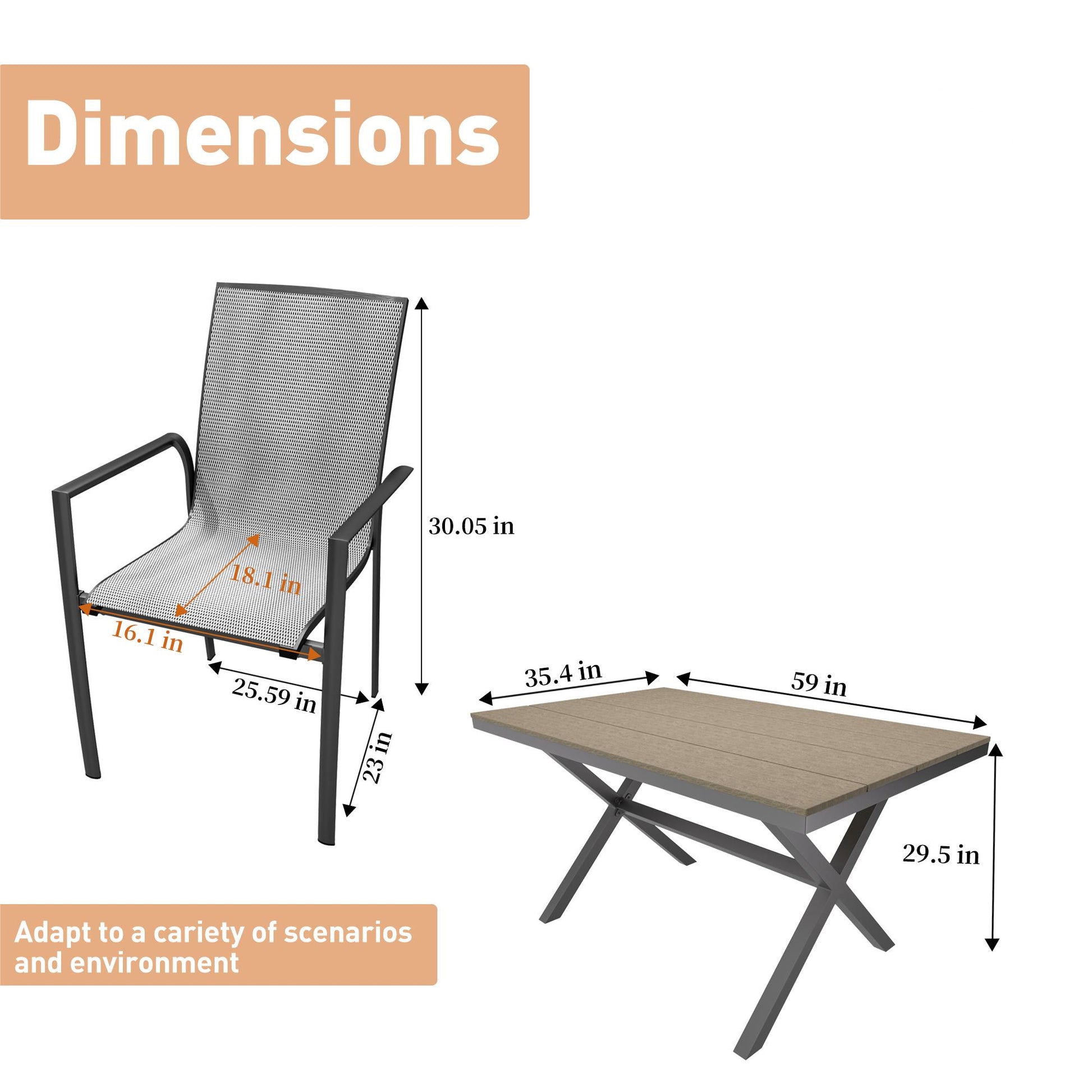 dining chair with Teslin backrest that is wear-resistant ventilated and breathable providing you with a cooler more comfortable outdoor sitting experience