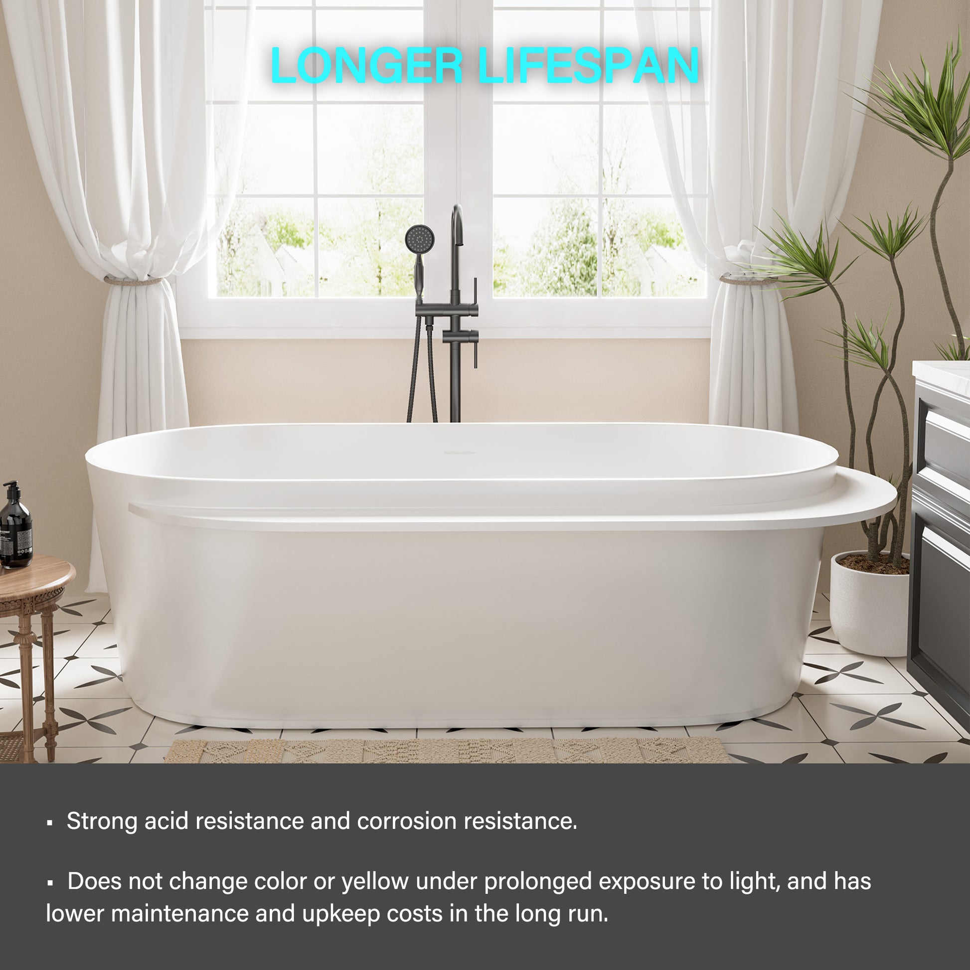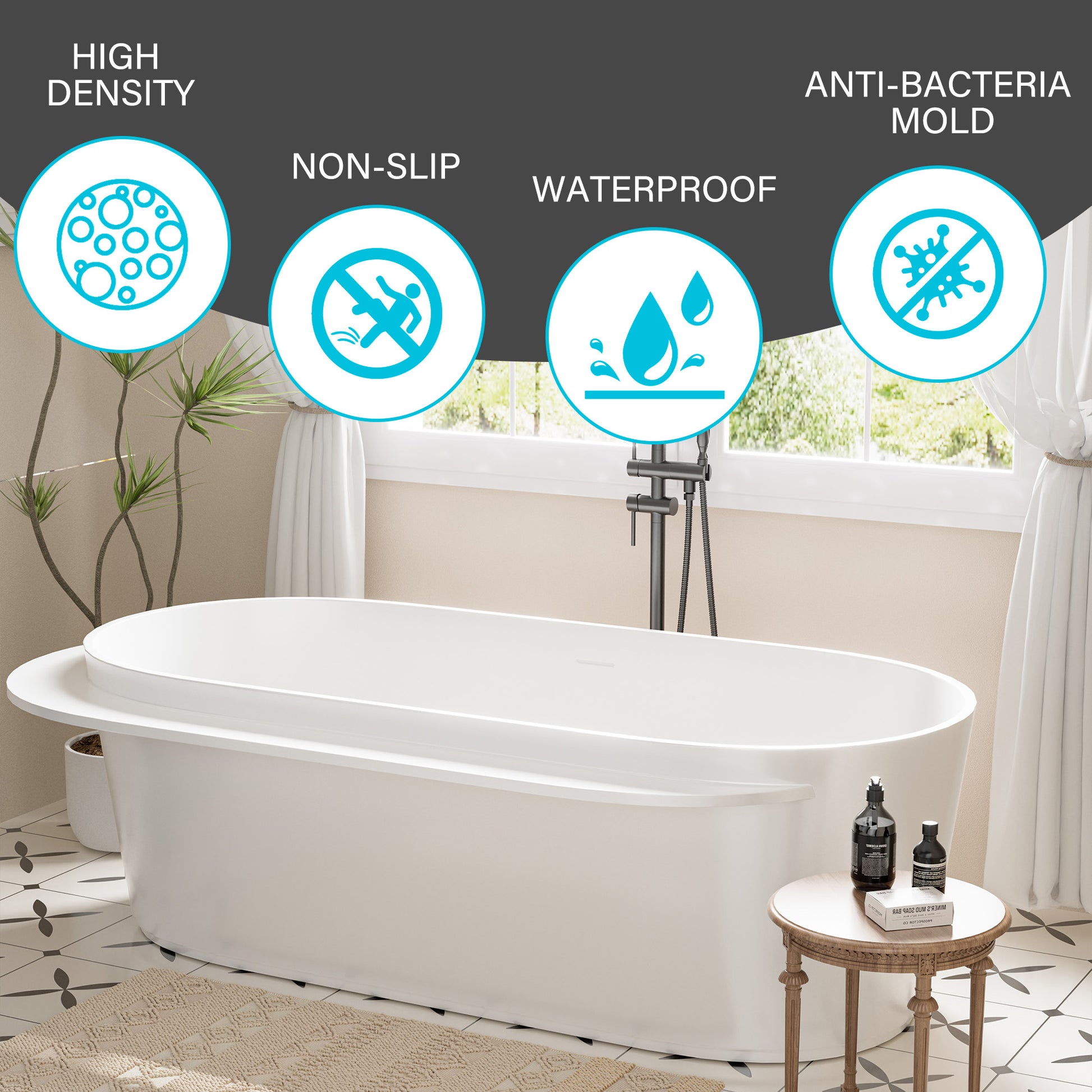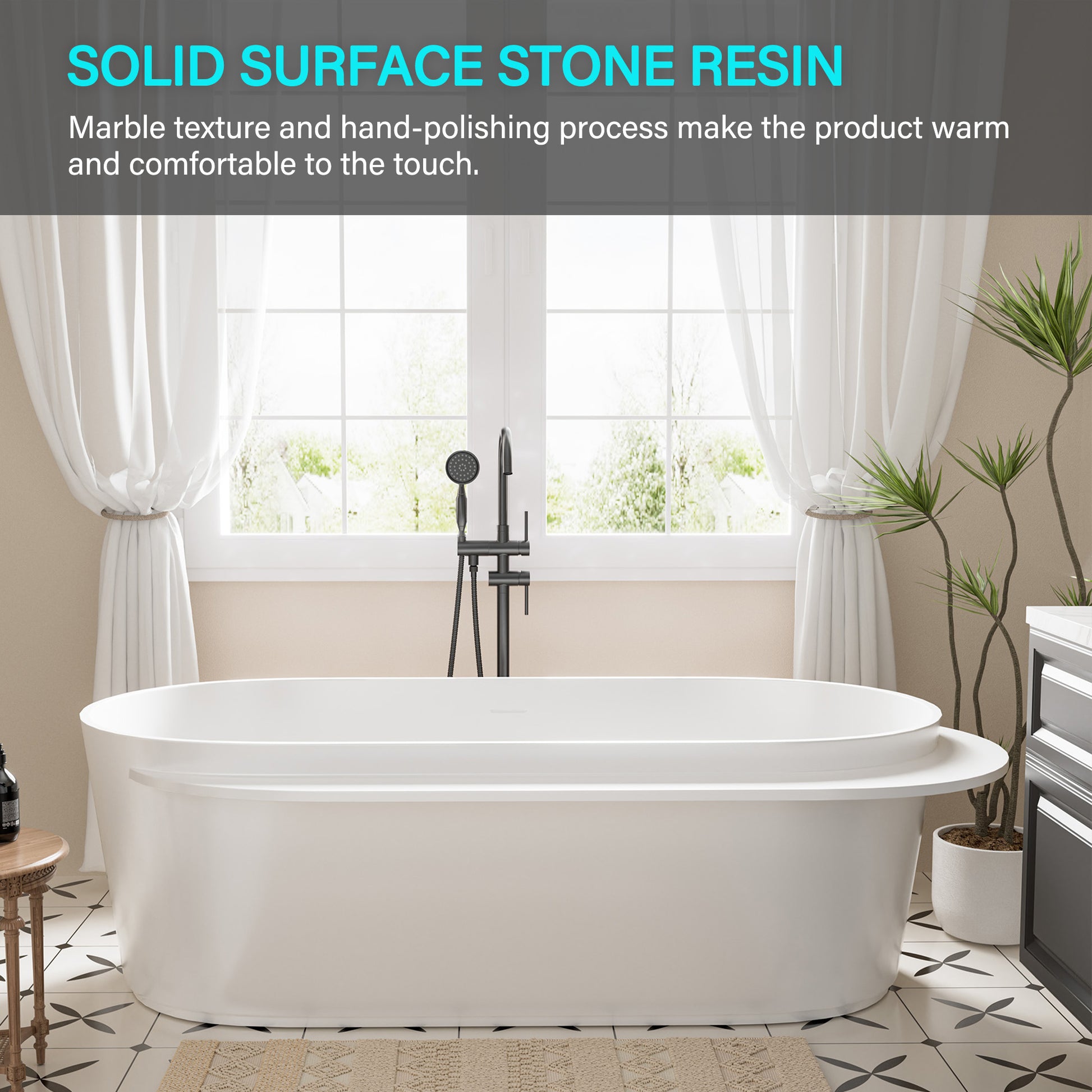 71 in. x 33 in. Solid Surface Stone Resin Freestanding Soaking Bathtub with Center Drain, Drainer, Hose in Matte White