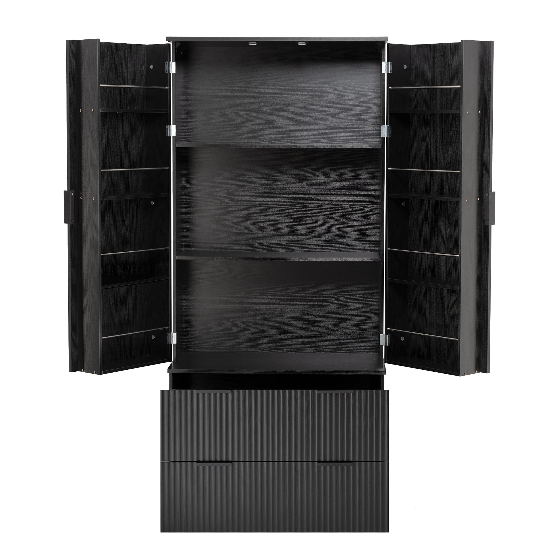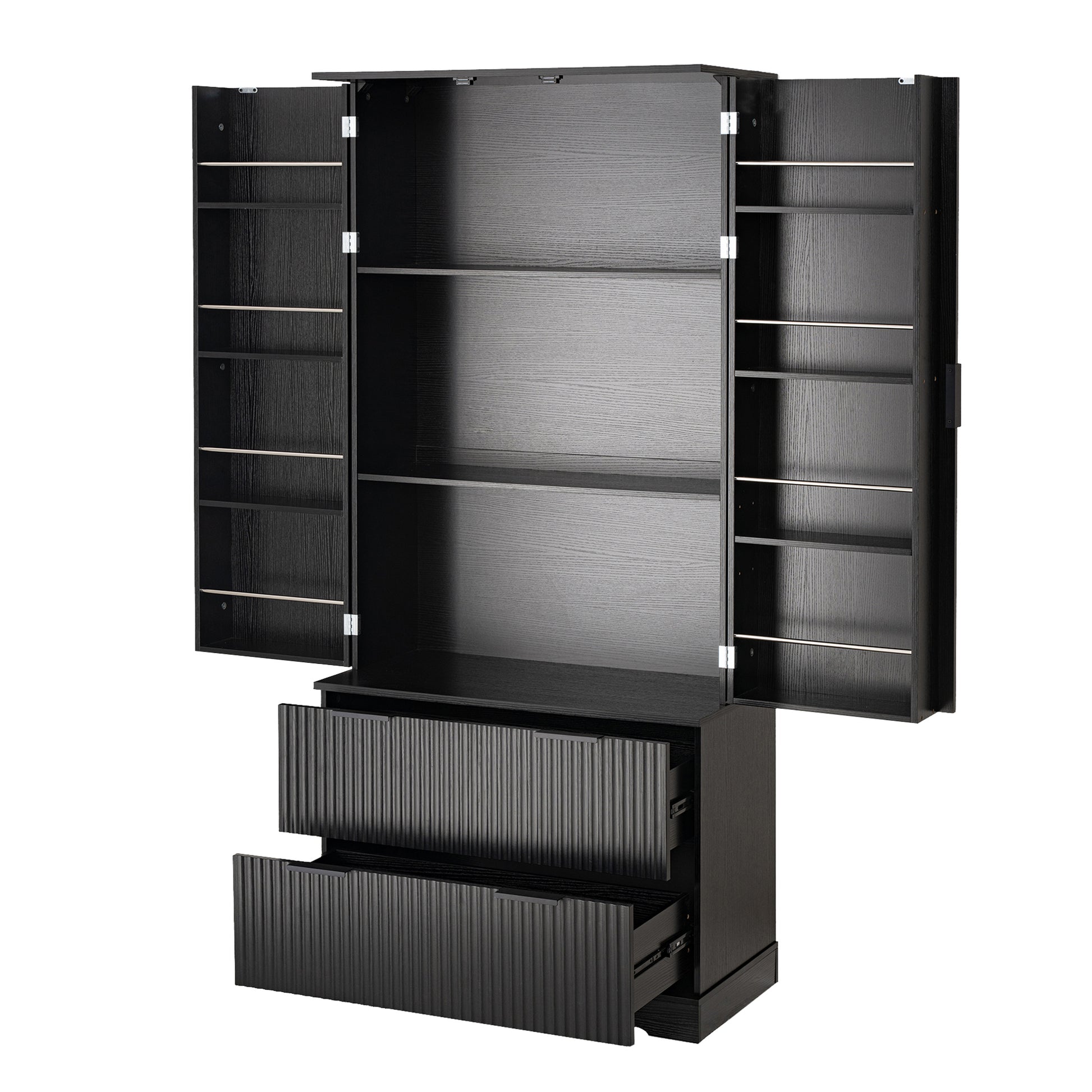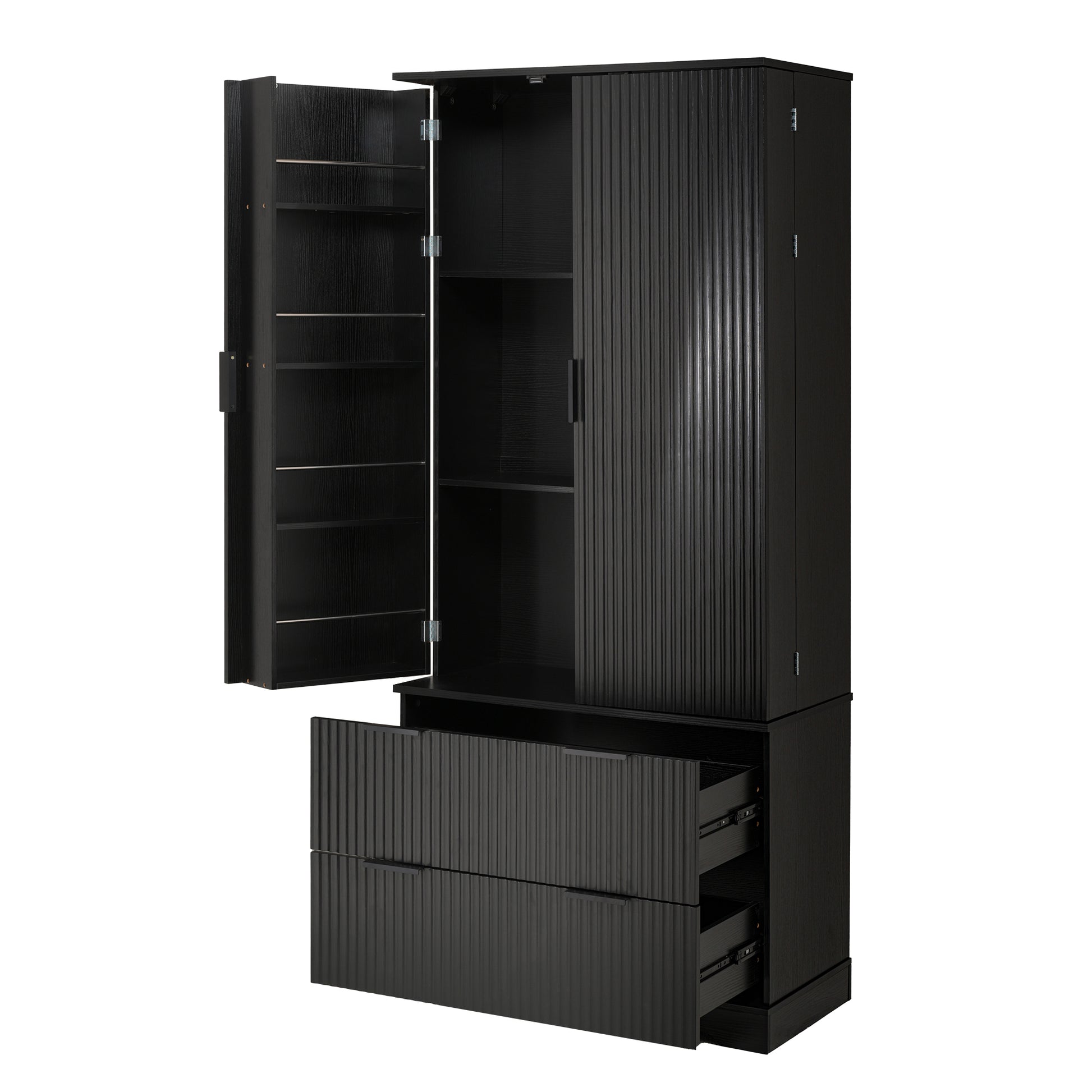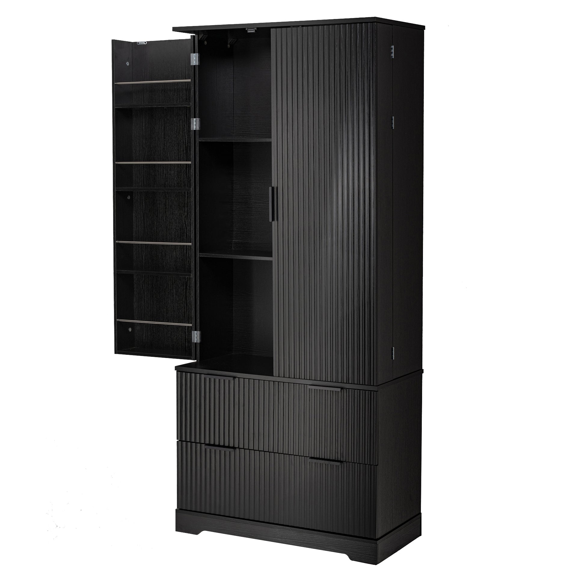 72 Inch Modern Fluted Kitchen Pantry Cabinet with 2 Drawers and 8 Door Spice Racks Freestanding Storage Organizer Black