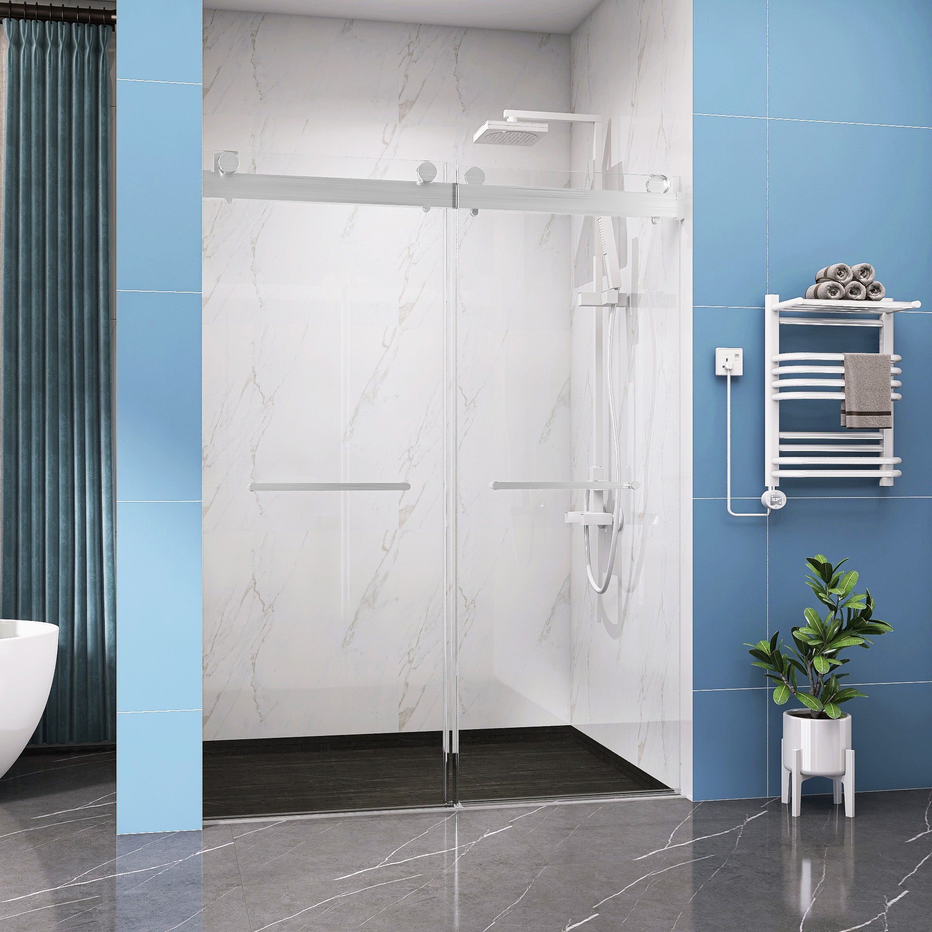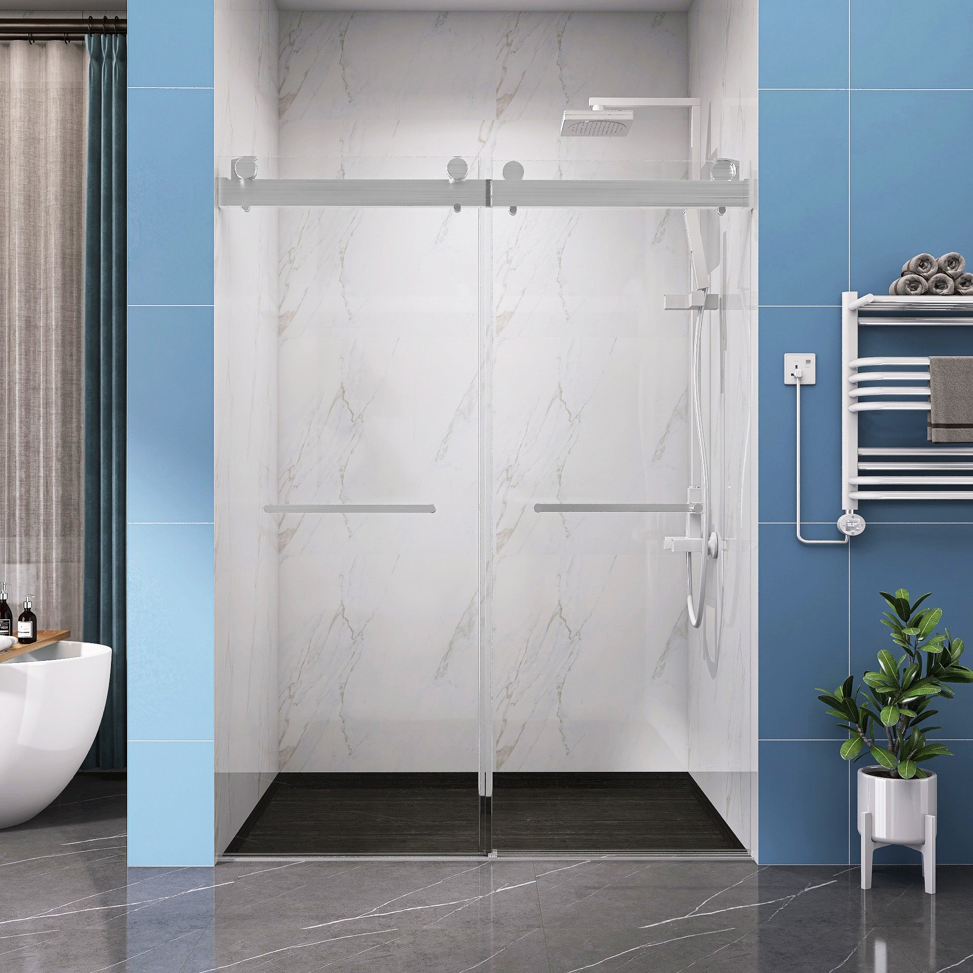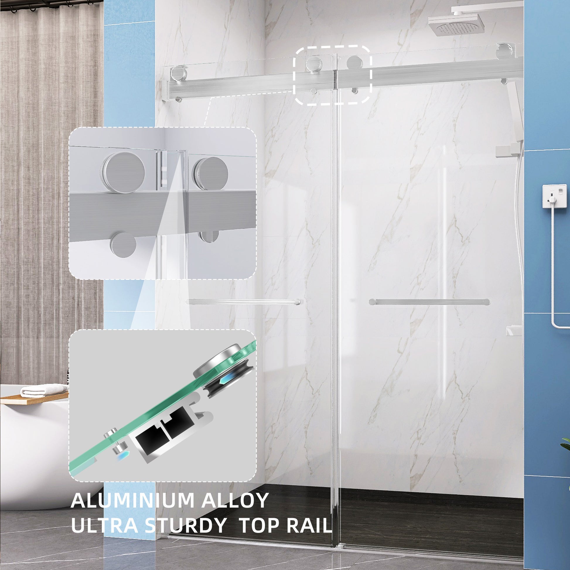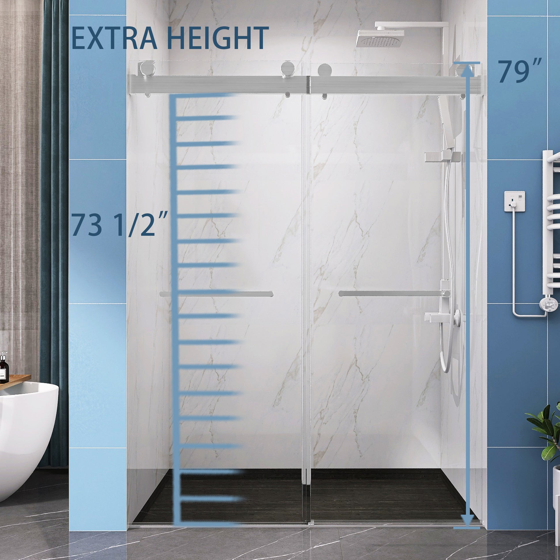 72Wx79H Brushed Nickel Frameless Double Sliding Shower Door with 10mm Tempered Glass