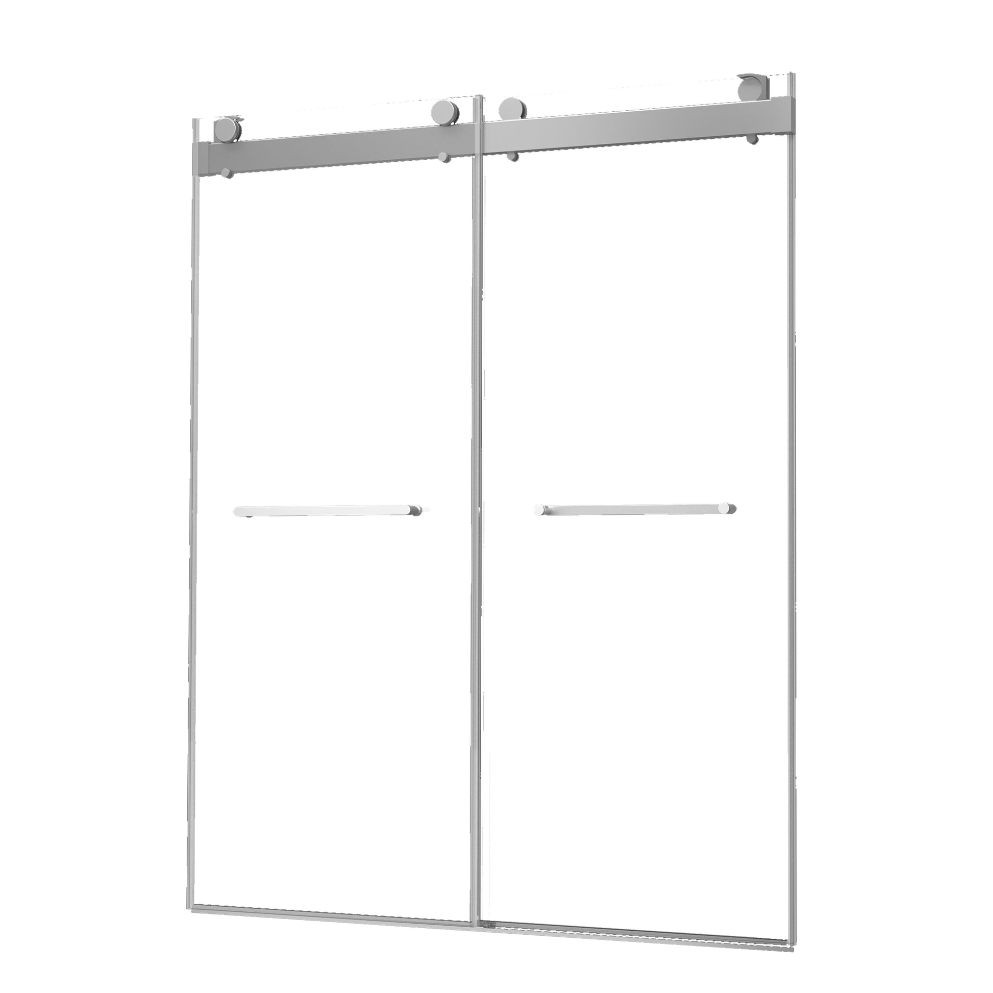 This frameless double sliding shower door features 10mm EN12150 certified tempered safety glass with a height of 2000mm, ensuring durability and safety. The double sliding door design has no bottom track and includes an anti-collision device for smooth and secure use. The track is made of high-quality aluminum, and the stainless steel handle provides long-lasting strength with a sleek look. Measuring 72 inches wide and 79 inches high, it comes in a brushed nickel finish that is stylish and corrosion-resistant. The product is packaged with pallet packing for safe and secure transportation.