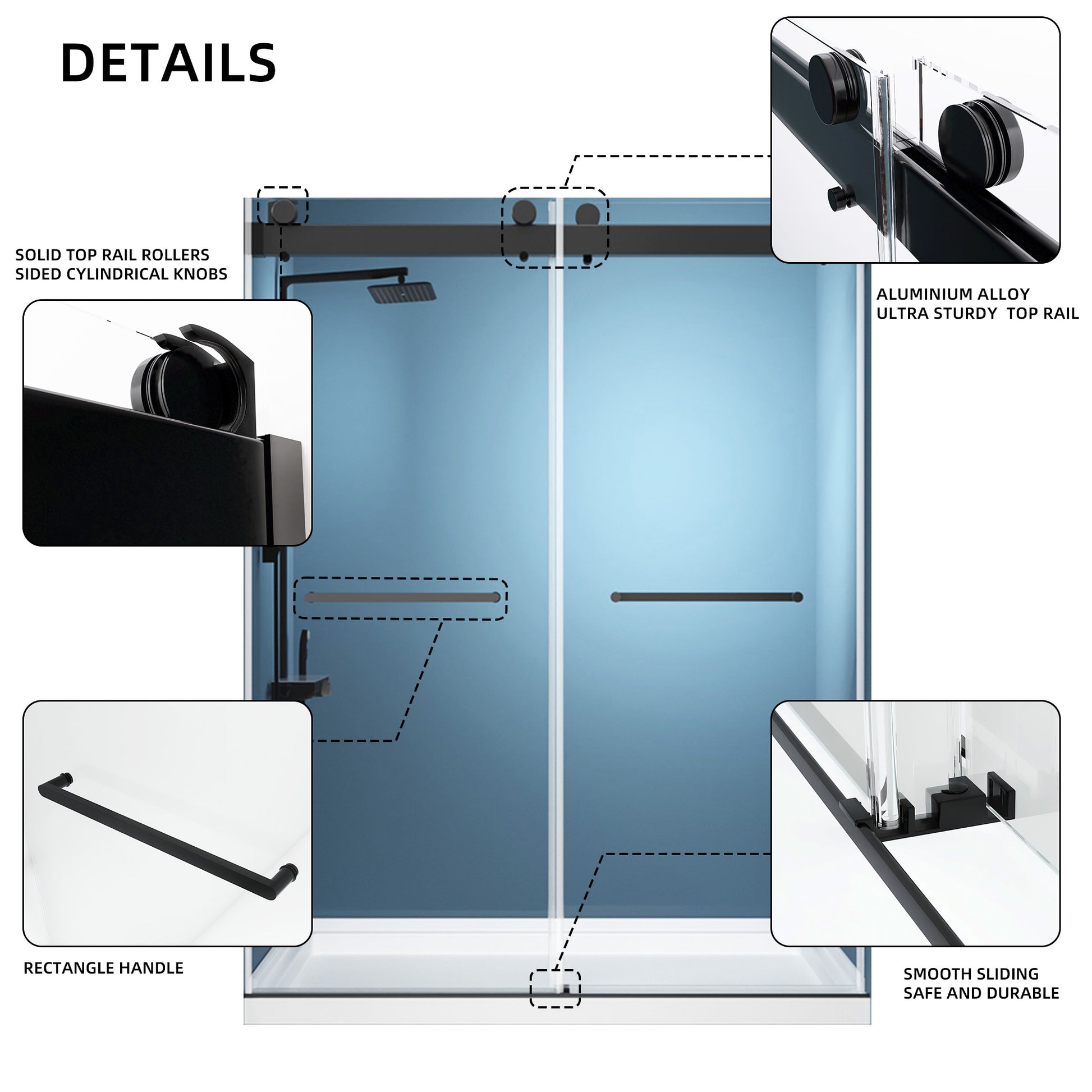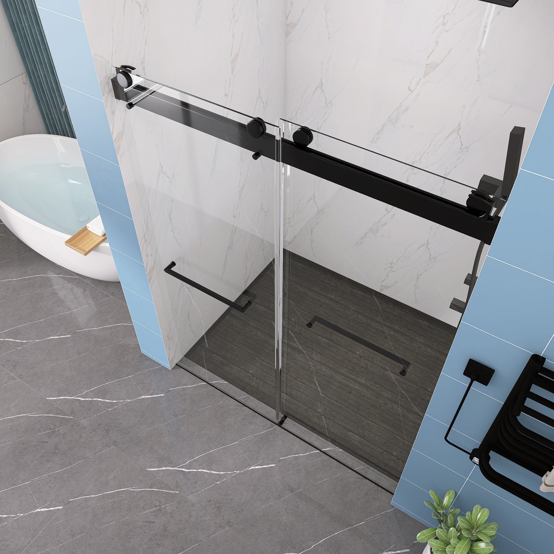 72Wx79H Matte Black Frameless Double Sliding Shower Door with 10mm Tempered Glass