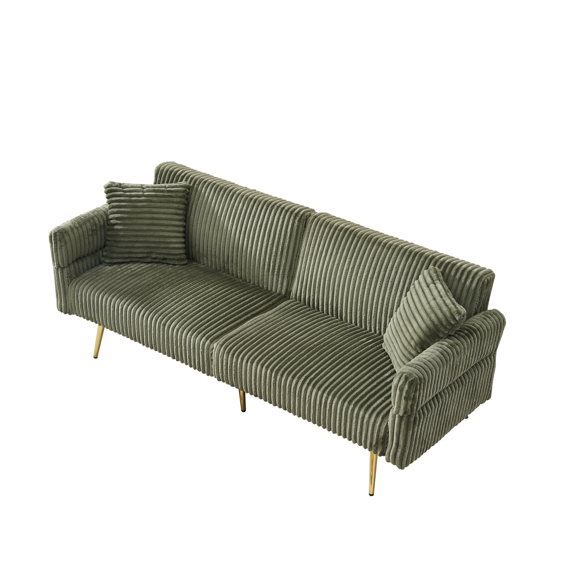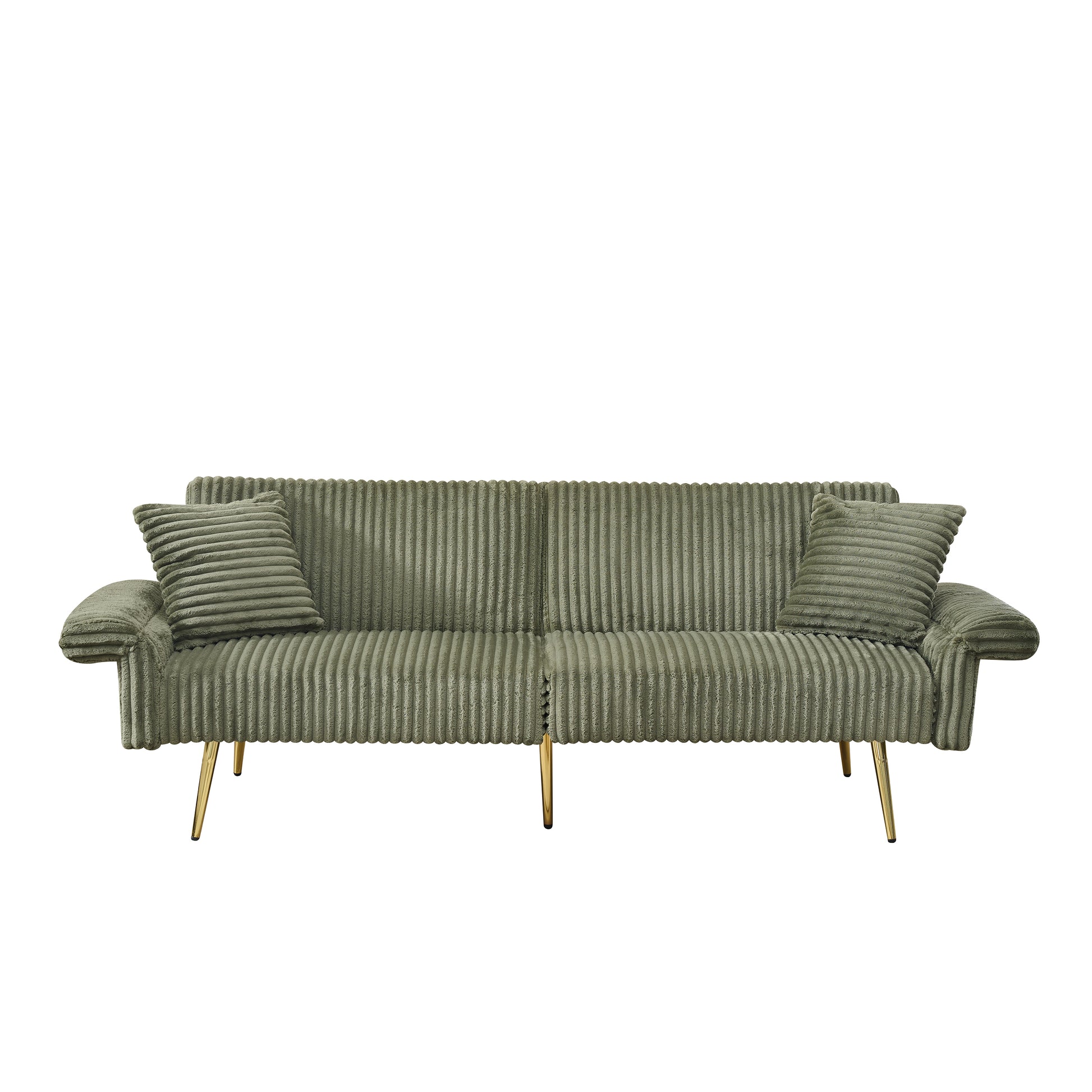 79 Inch Green Corduroy Foldable Sofa Bed with Adjustable Armrests for Living Room and Small Spaces