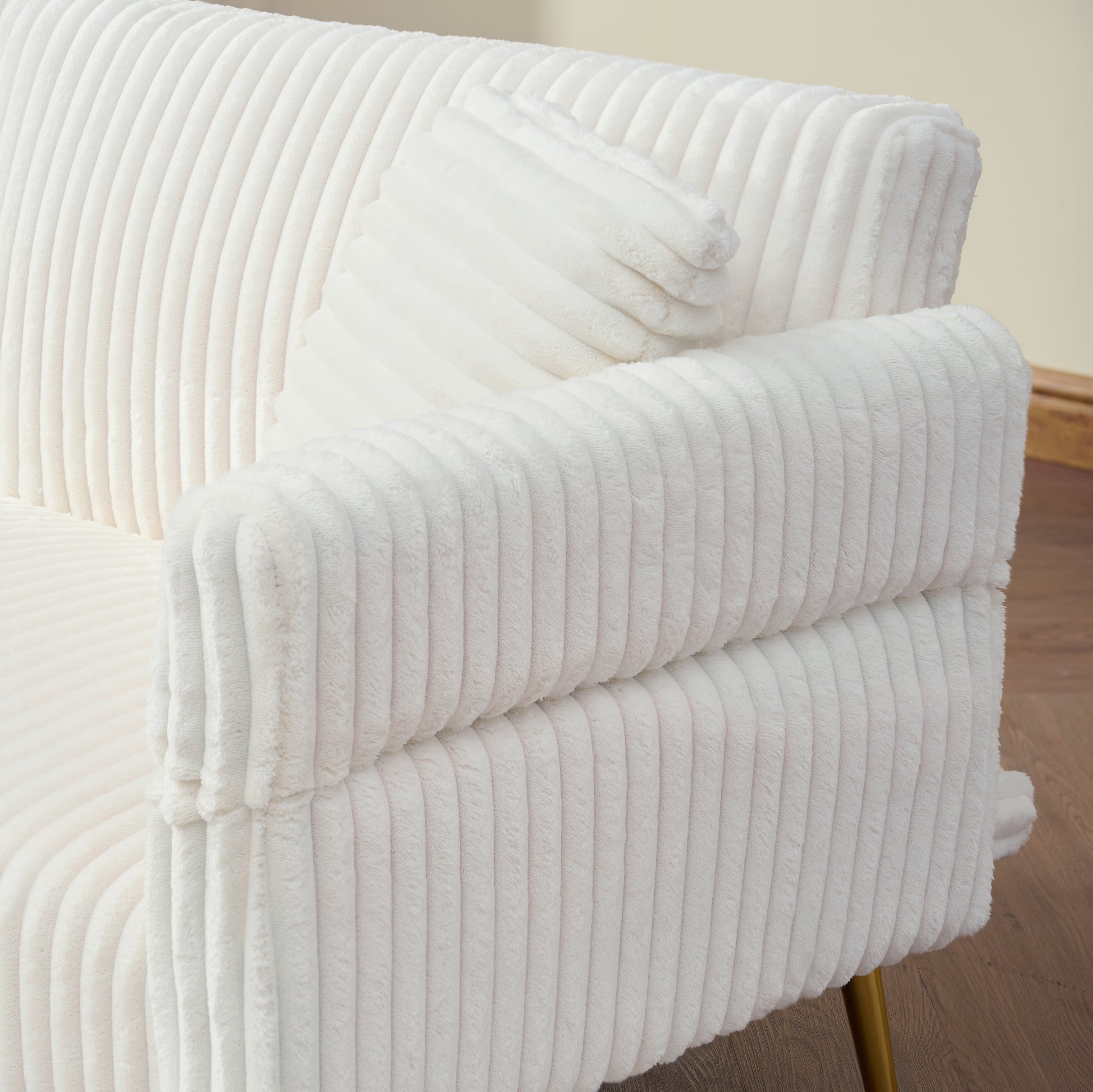 79 Inch White Corduroy Foldable Sofa Bed with Adjustable Armrests for Living Room and Small Spaces