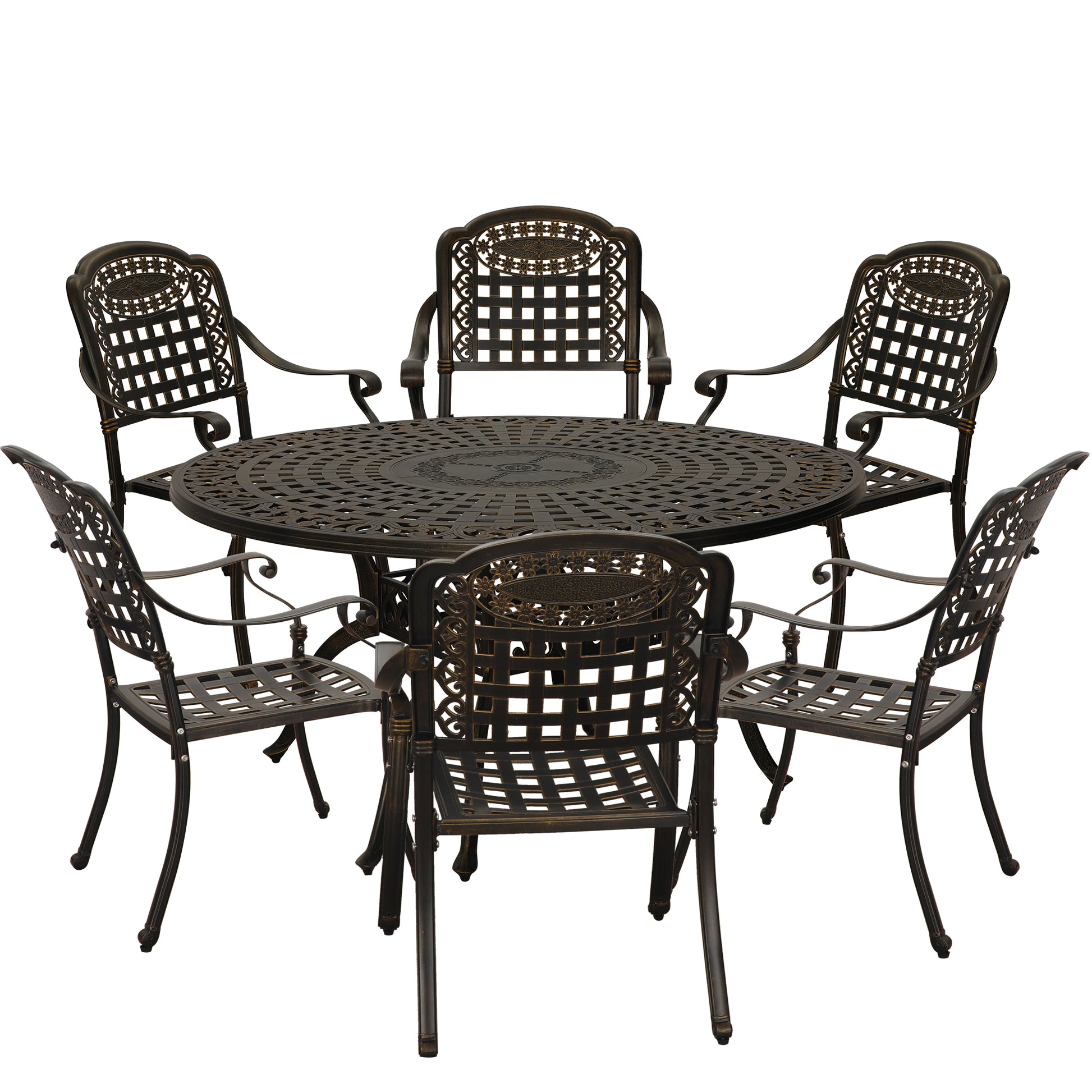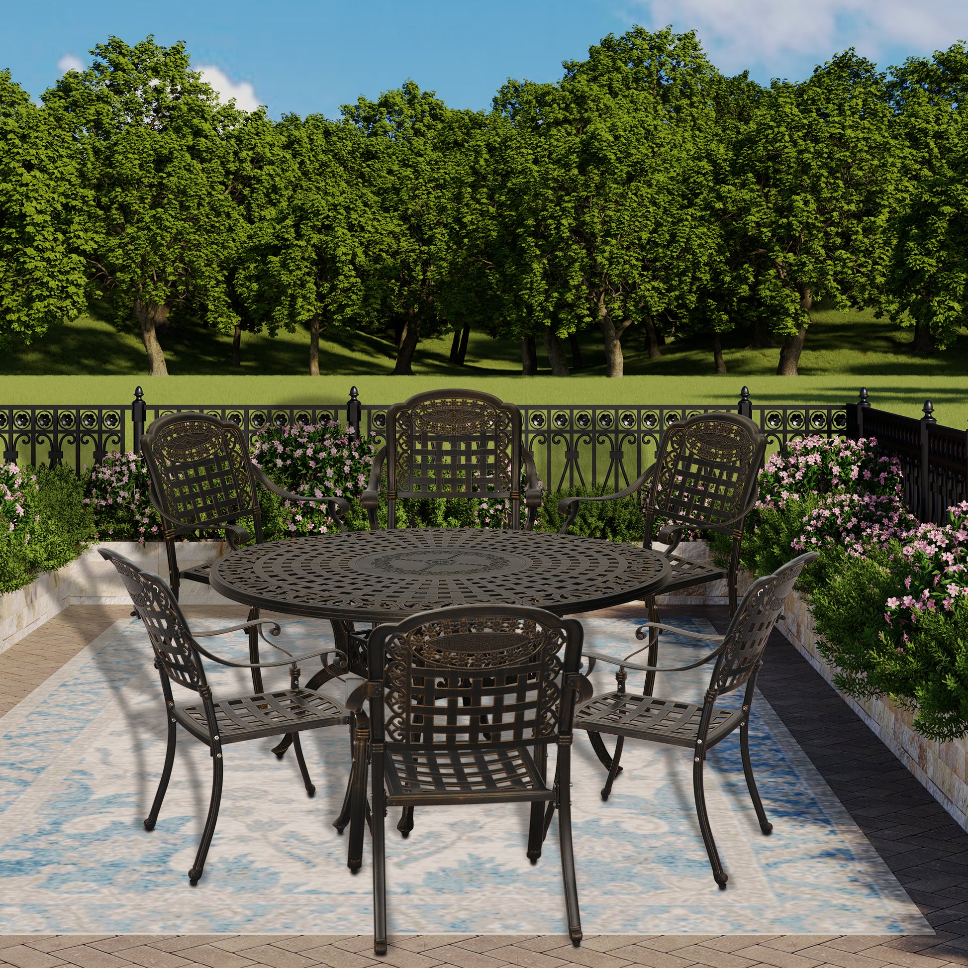 7pcs Patio Dining Set Cast Aluminium Outdoor Dining Set Patio Bistro Set 6 Outdoor Dining Chairs and 59 Inches Round Dining Table for Balcony Porch Backyard Garden