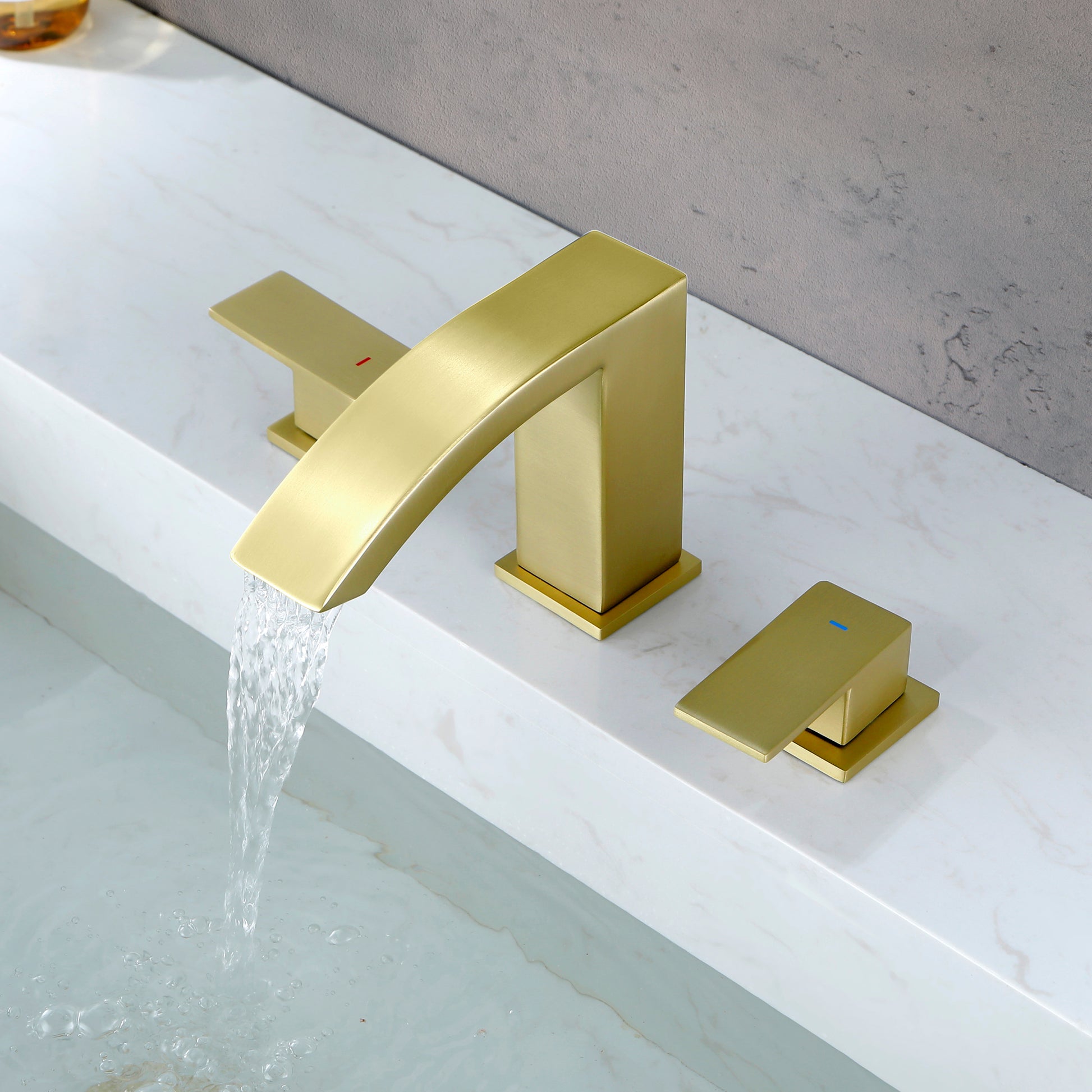 8 in Widespread Double Handle 1.2 GPM Bathroom Faucet with Quick Connect Hose and Pop Up Drain in Brushed Gold