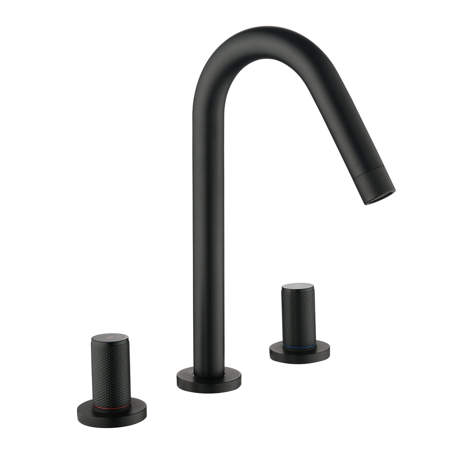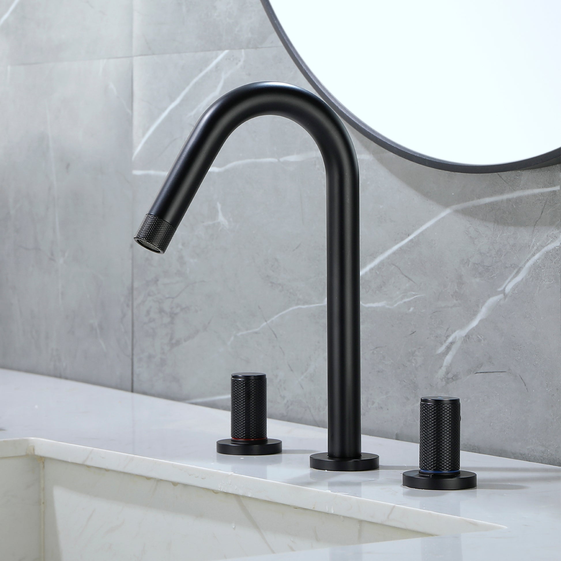 This 8-inch Widespread Double Handle Bathroom Faucet features a 360° swivel spout and quick connect hose, making it convenient for daily brushing, face washing, and versatile bathroom use. The elegant matte black finish adds modern style to any bathroom. The built-in aerator provides soft, splash-free water flow, while the dual knob handles allow easy control of water temperature and flow. Easy to install with included cUPC-certified quick connect hose for DIY setup. Perfect after-sales service ensures worry-free use.