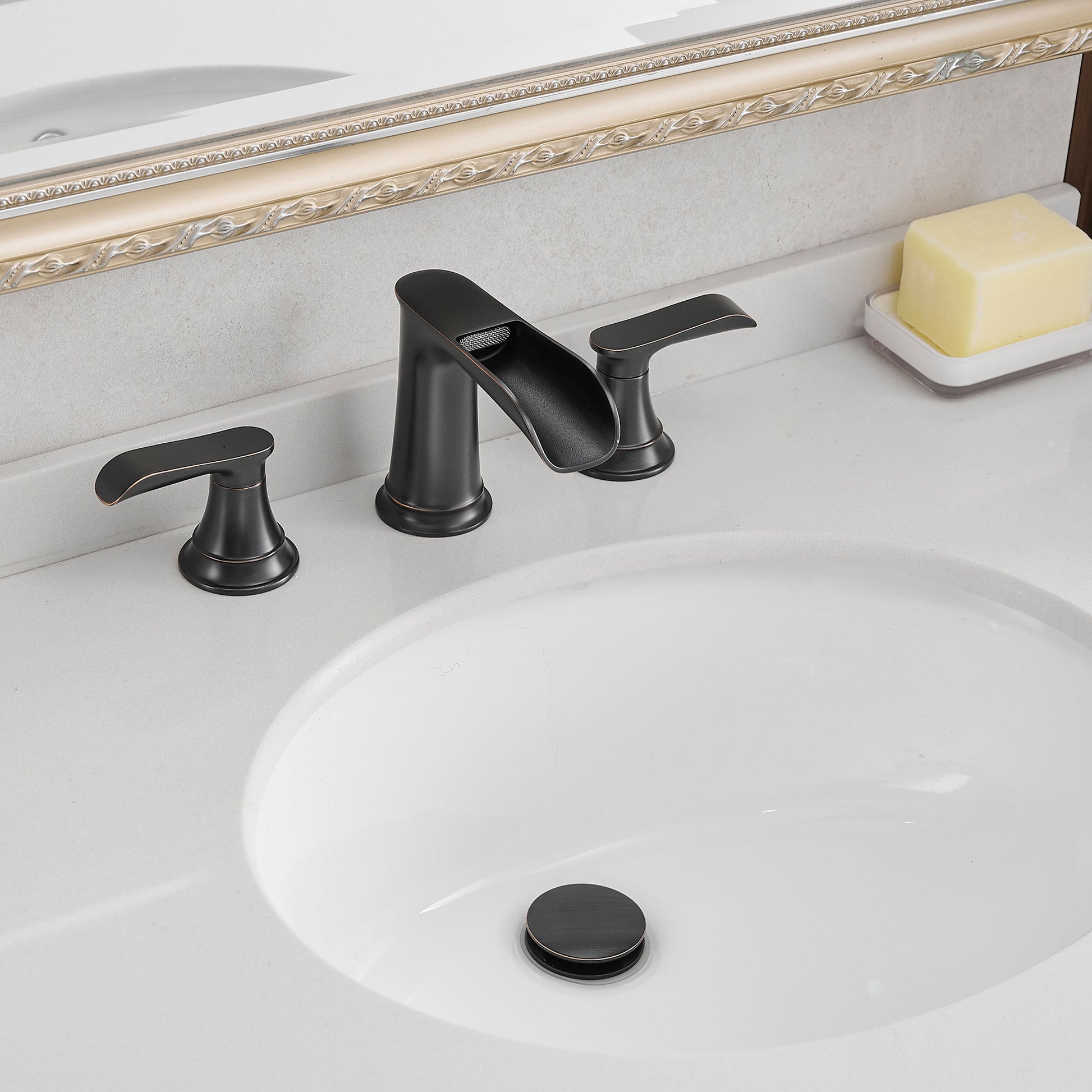 8 Inch Widespread Double Handle Brass Bathroom Faucet with Pop Up Drain and Water Supply Hoses in Oil Rubbed Bronze