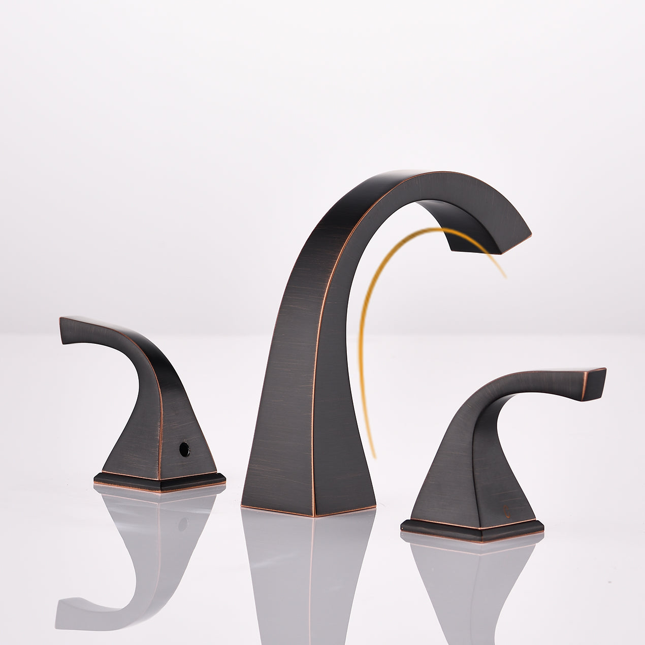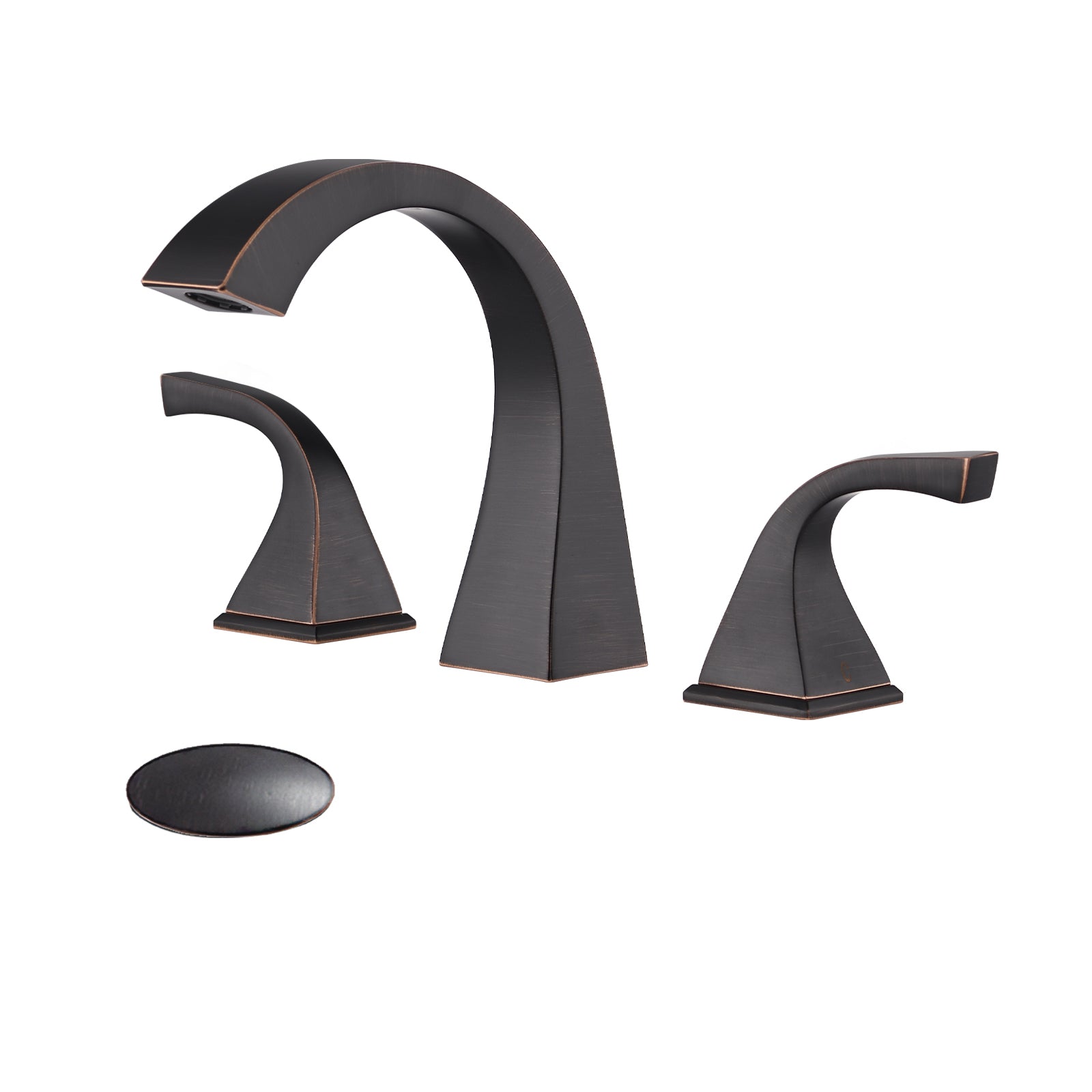 This 8 inch widespread three hole two handle bathroom faucet is crafted from solid brass for durability and long lasting performance. Featuring ceramic disc valves, it ensures smooth drip free operation over time. With graceful curves and a tarnish resistant finish, the faucet complements both modern and traditional bathroom styles. The dual handle design allows precise control of water temperature and volume. Easy to clean and maintain, it comes complete with a matching pop up drain, water supply hoses, and quick connect hose for fast installation.