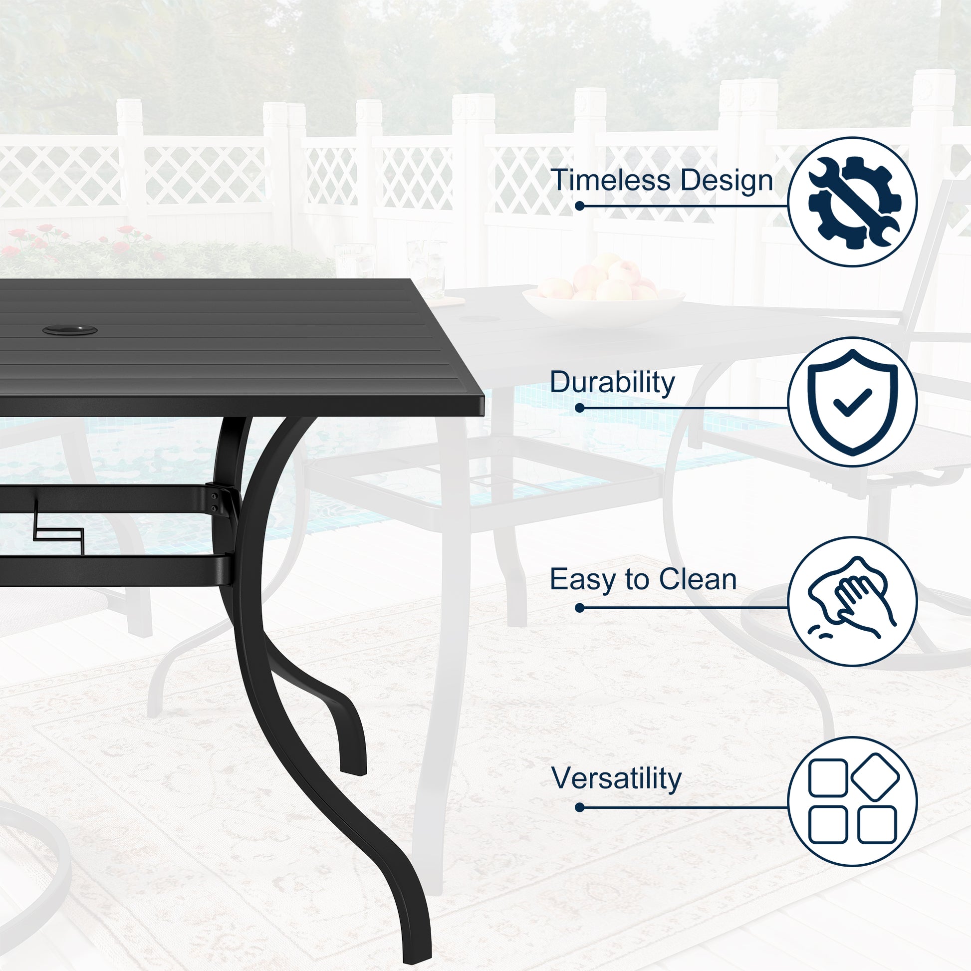 Table has 1.65" diameter umbrella hole in the centre accommodates parasol for shade and sun protection