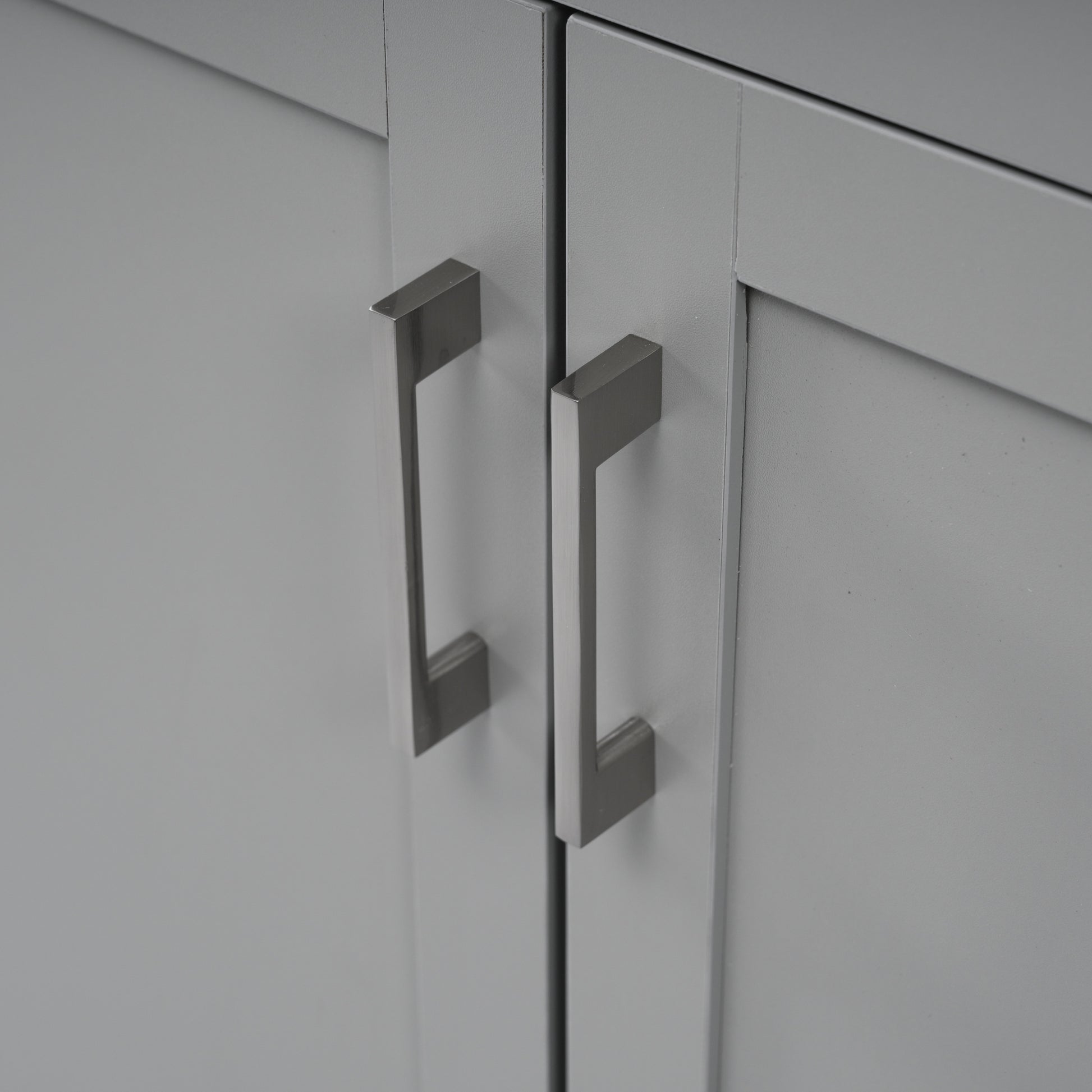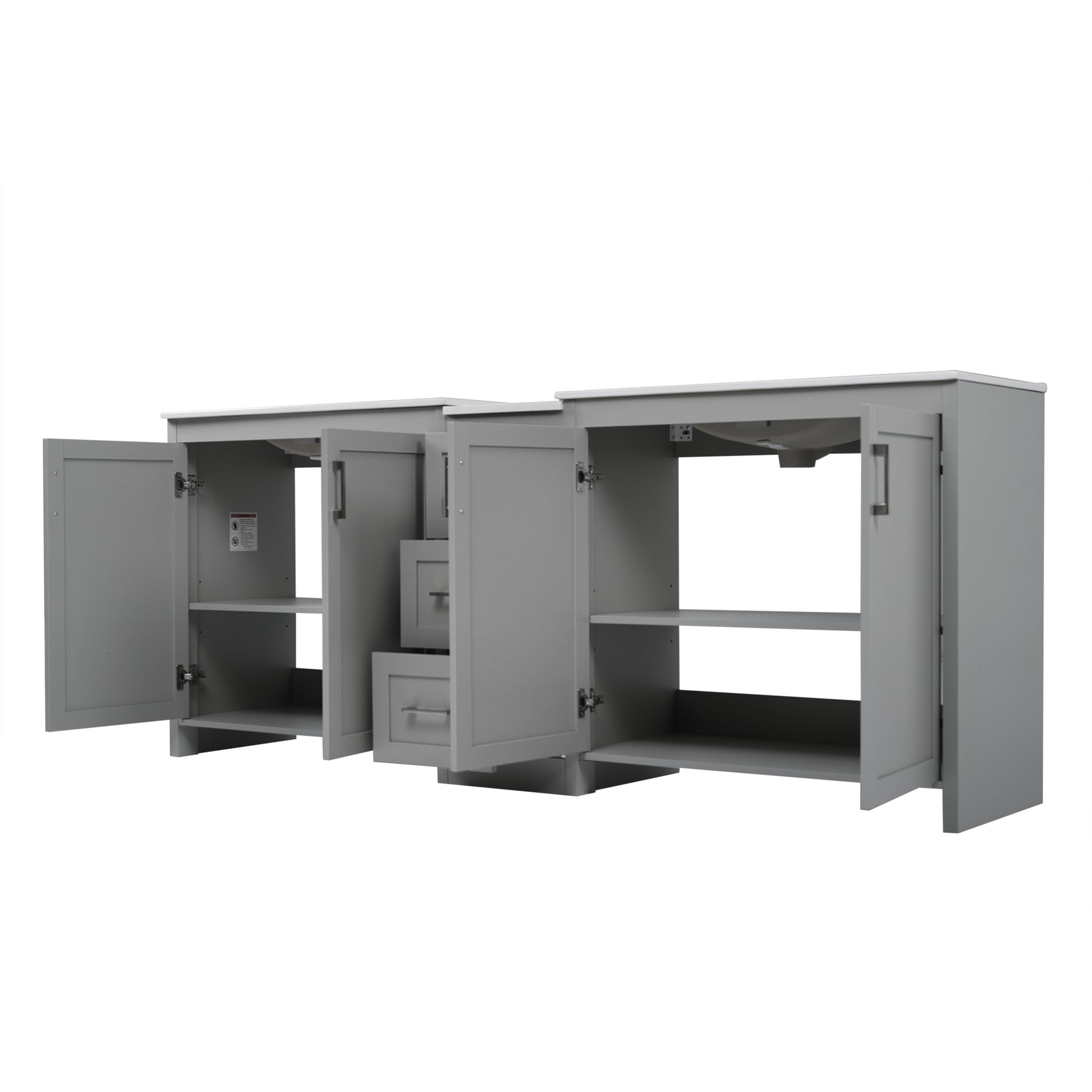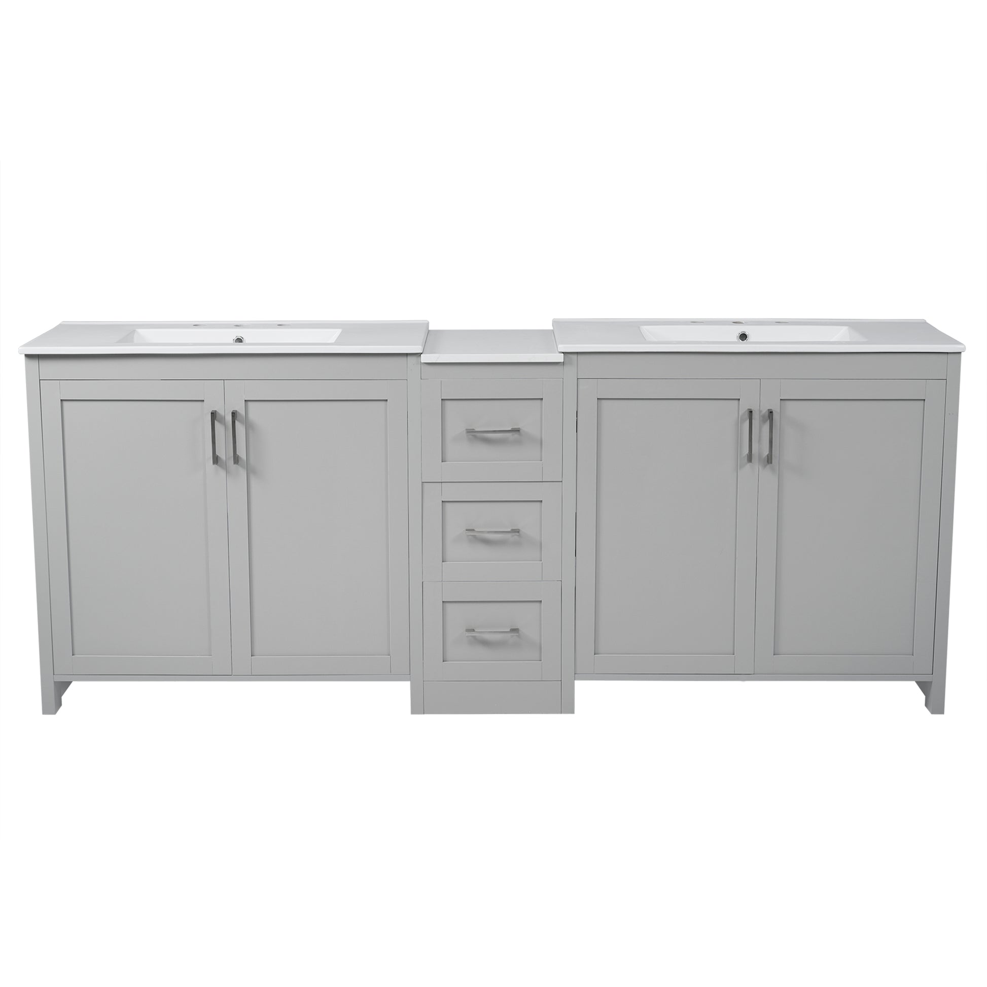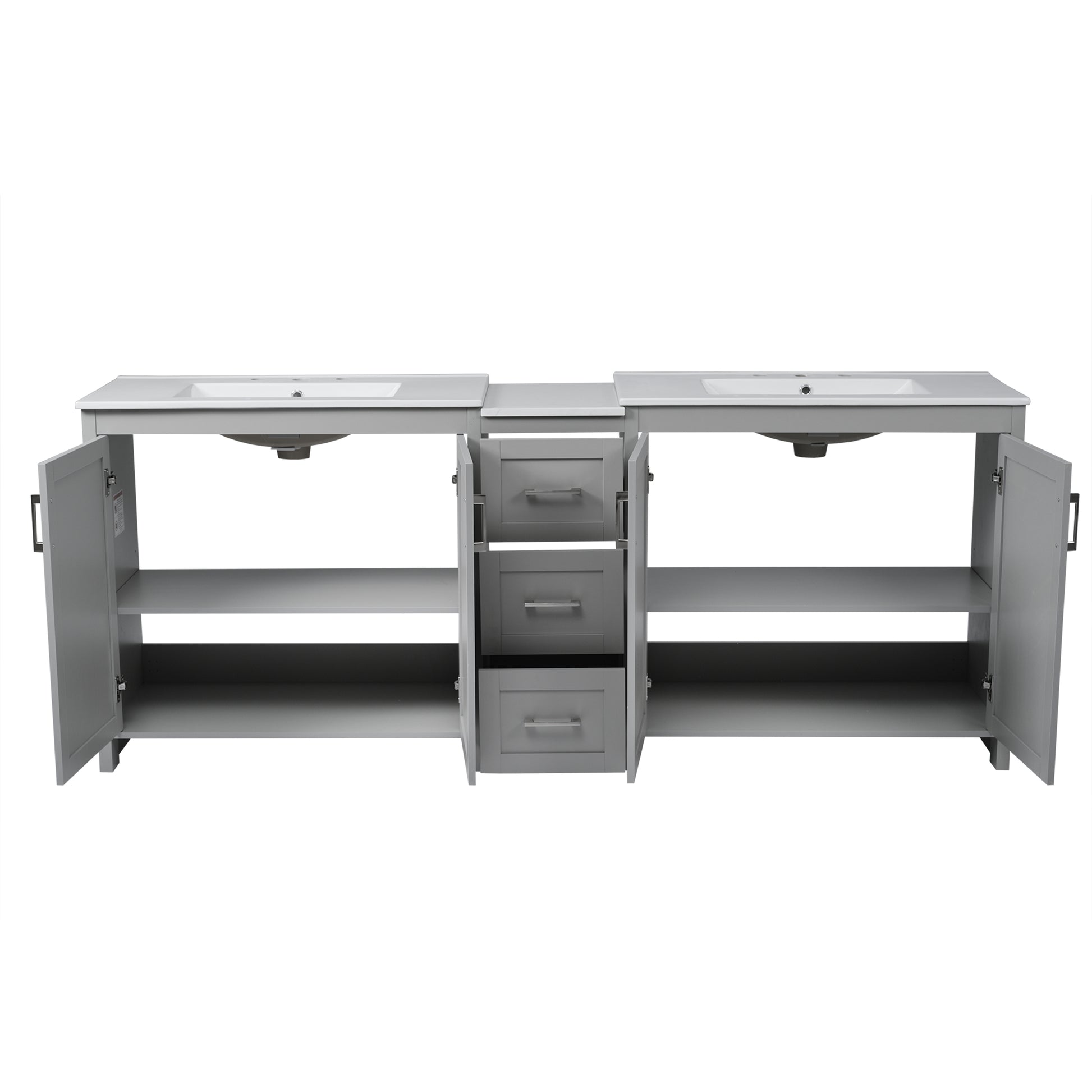 84 Inch Double Sink Bathroom Vanity with Ceramic Sinks Quartz Countertop Adjustable Shelves 3 Drawers Gray