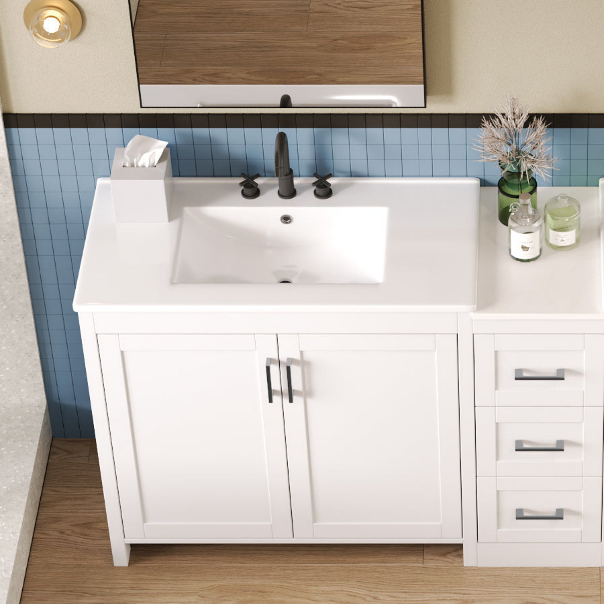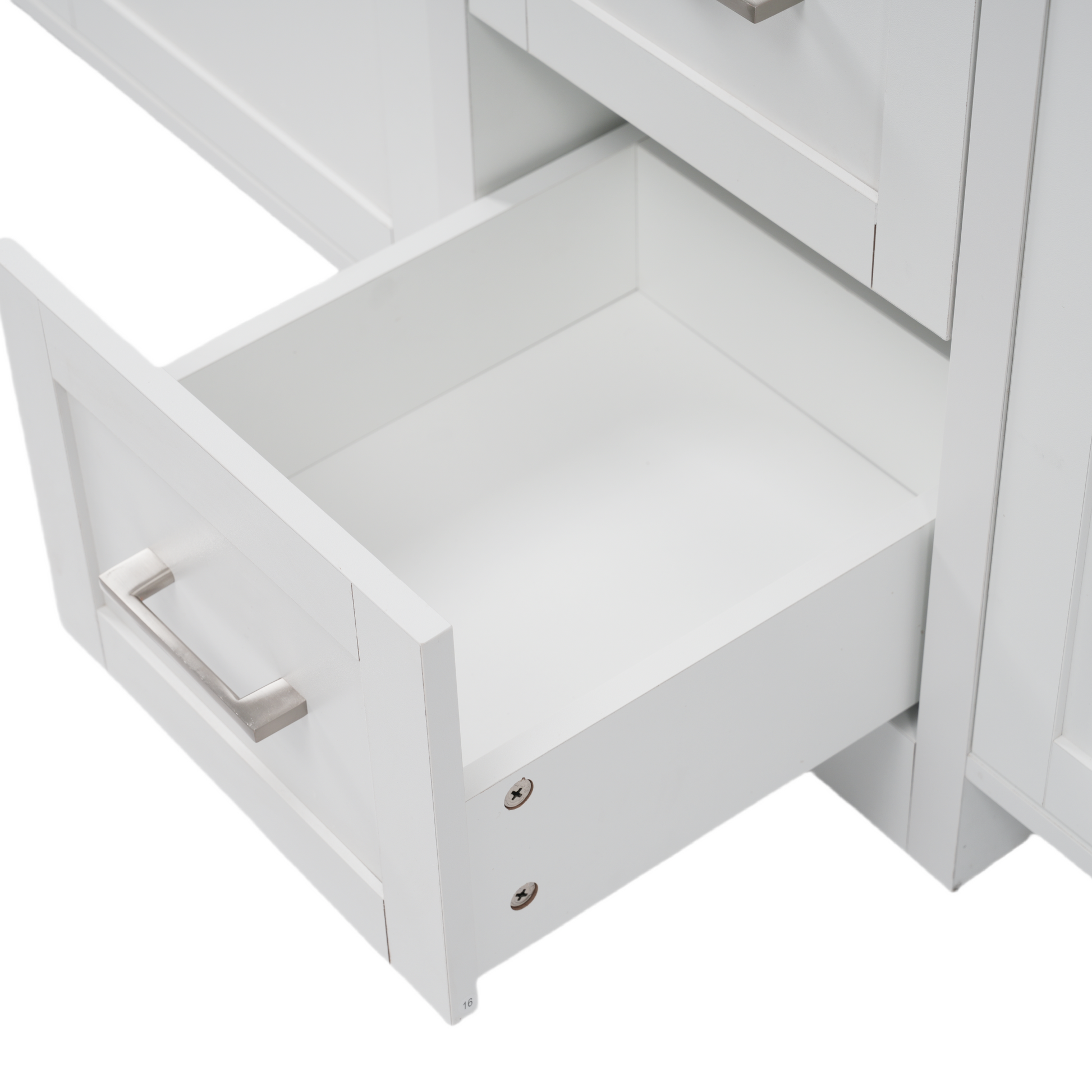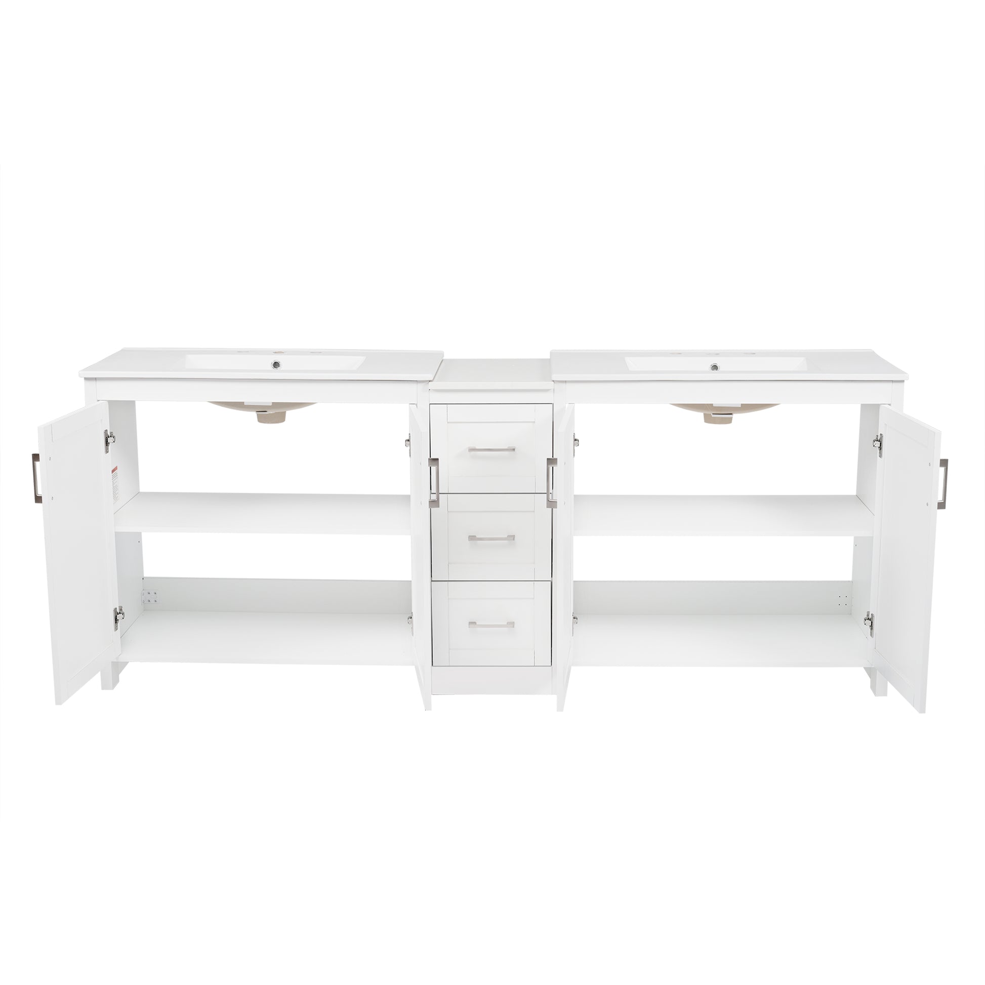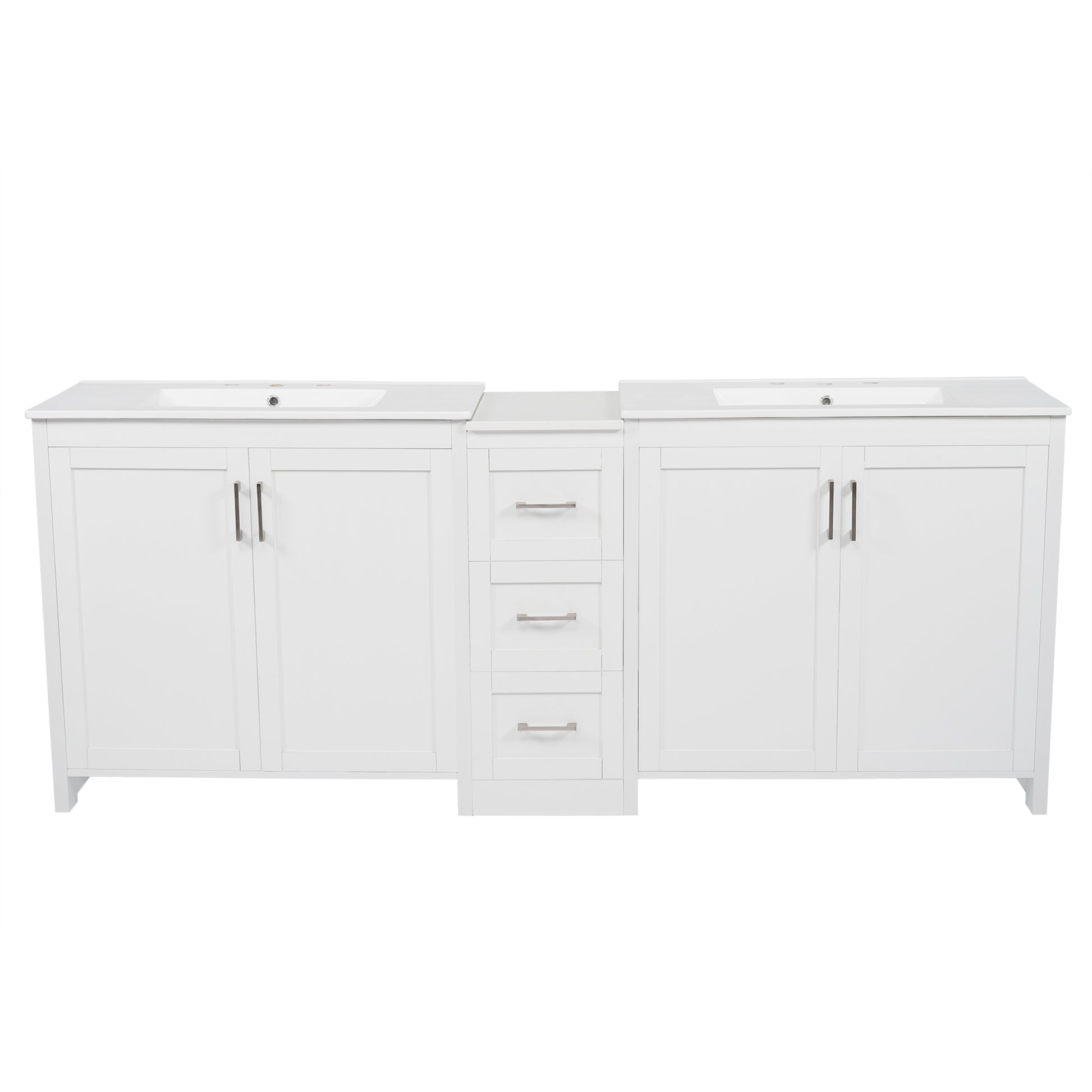 84 Inch Double Sink Bathroom Vanity with Ceramic Sinks Quartz Countertop Adjustable Shelves 3 Drawers White