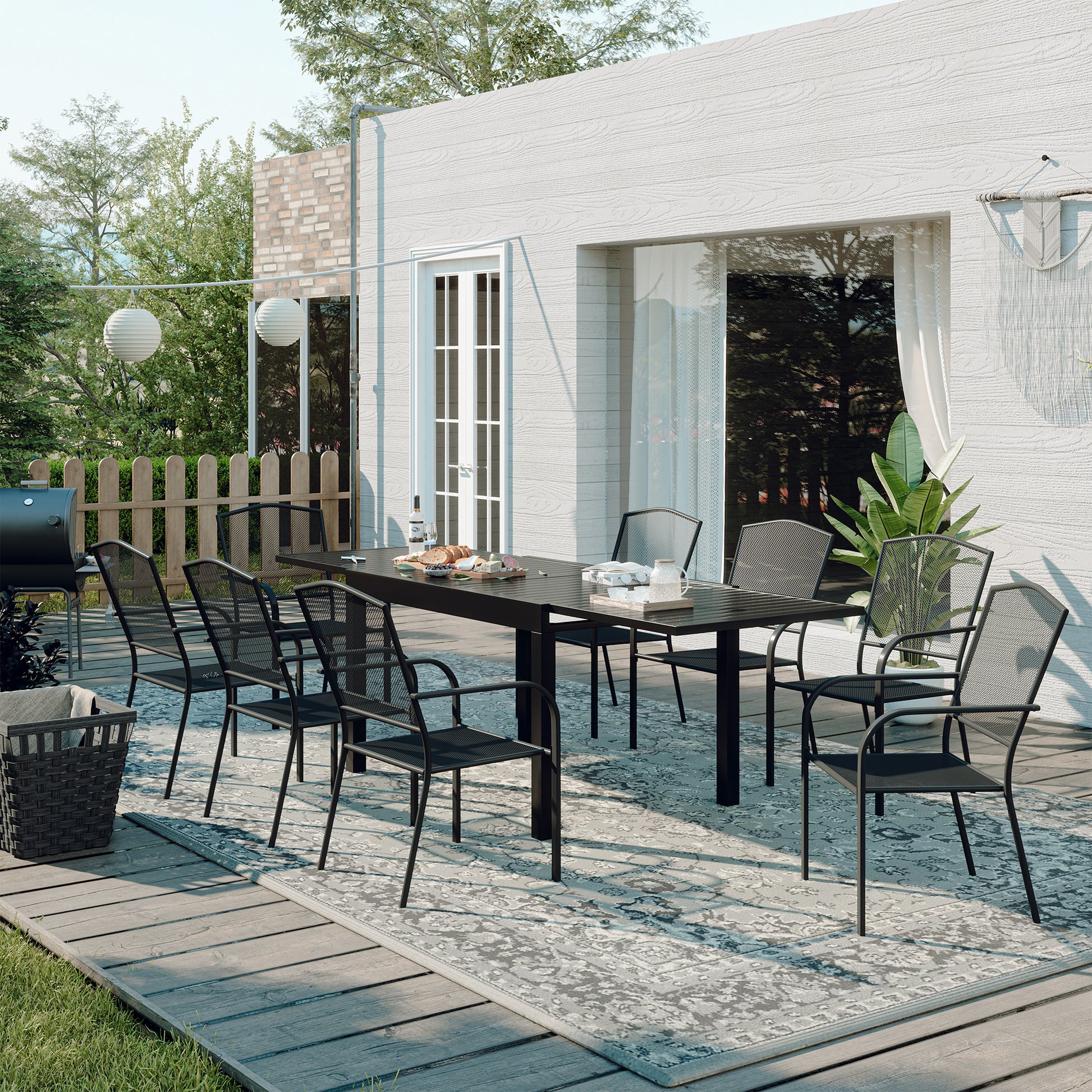 9-Piece Outdoor Dining Set with Aluminum Extendable Table 53-106 Inch and Dining Chair