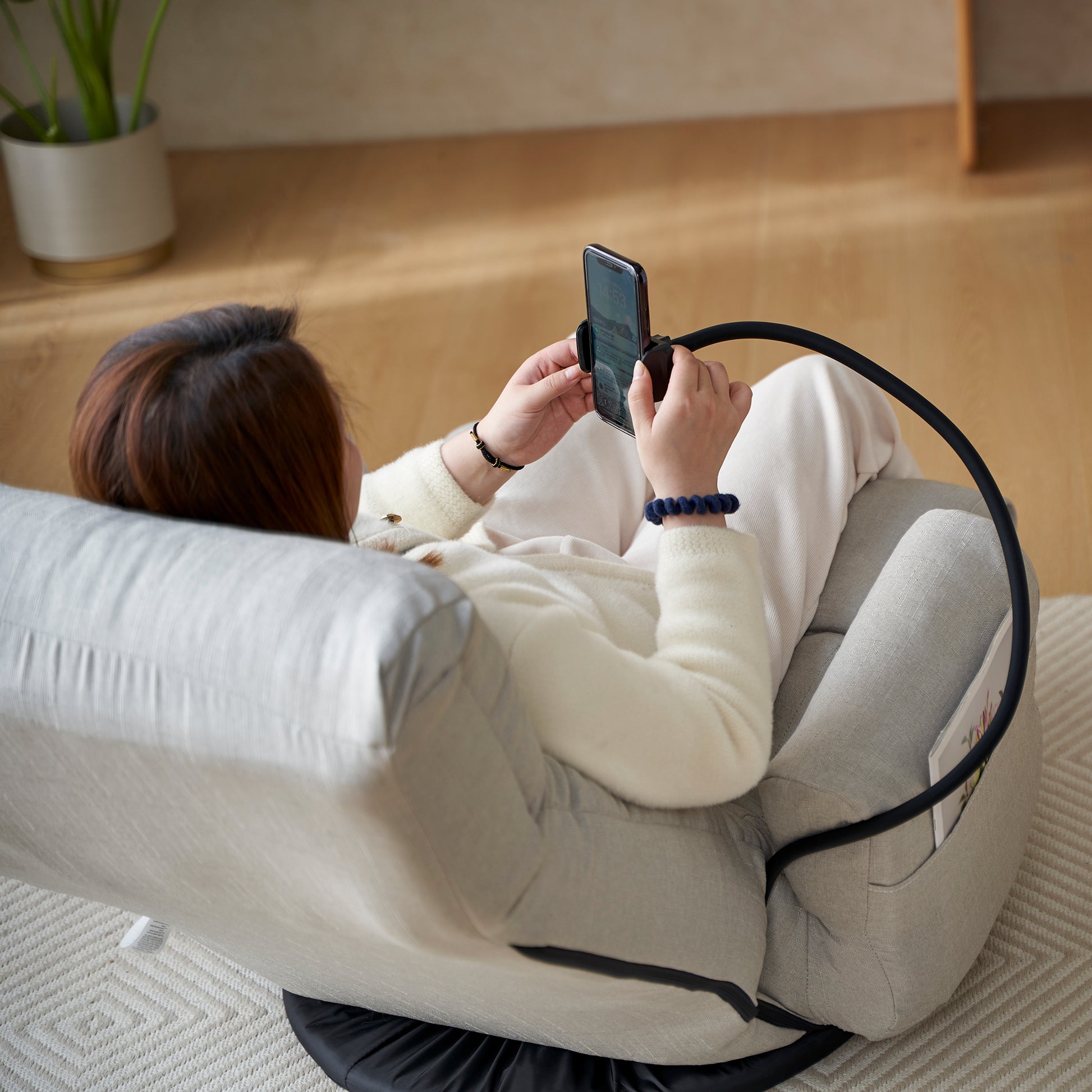 This adjustable lounge chair is designed with a five level backrest system that supports the natural curve of the spine for comfortable relaxation. The built in spring seat bag offers a fuller seating experience, helping reduce fatigue during long sitting sessions. With a compact foldable design and a 360 degree rotating base, it provides flexibility for gaming, reading, napping, or unwinding in any living space.