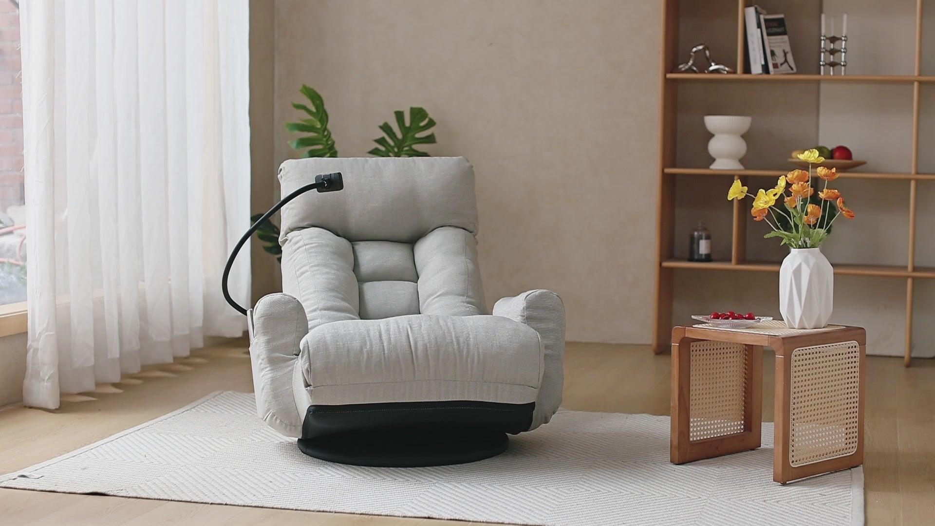 Adjustable Floor Lounge Chair with 360 Degree Rotating Base and Foldable Design Gray