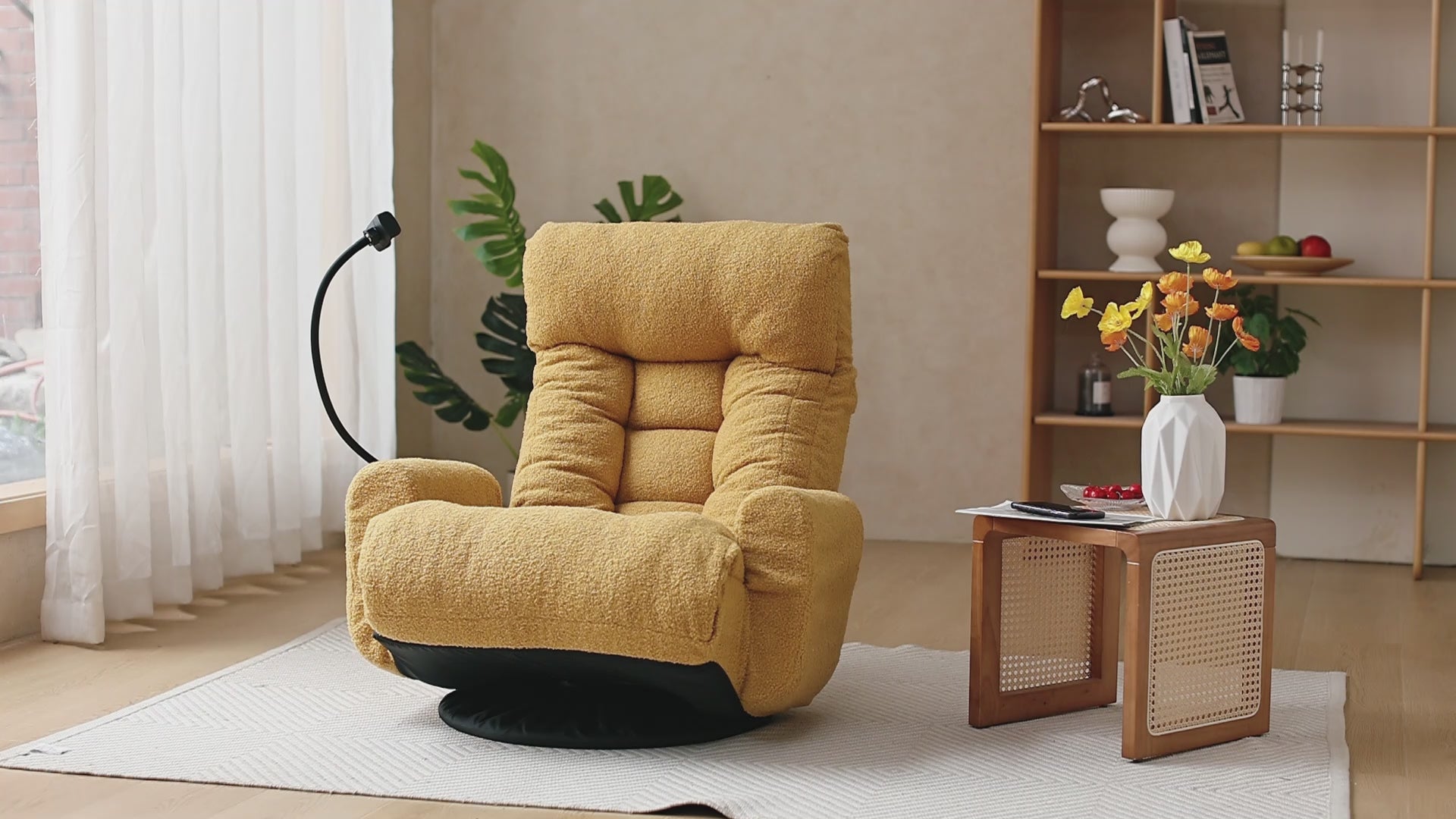 Adjustable Floor Lounge Chair with 360 Degree Rotating Base and Foldable Design Yellow