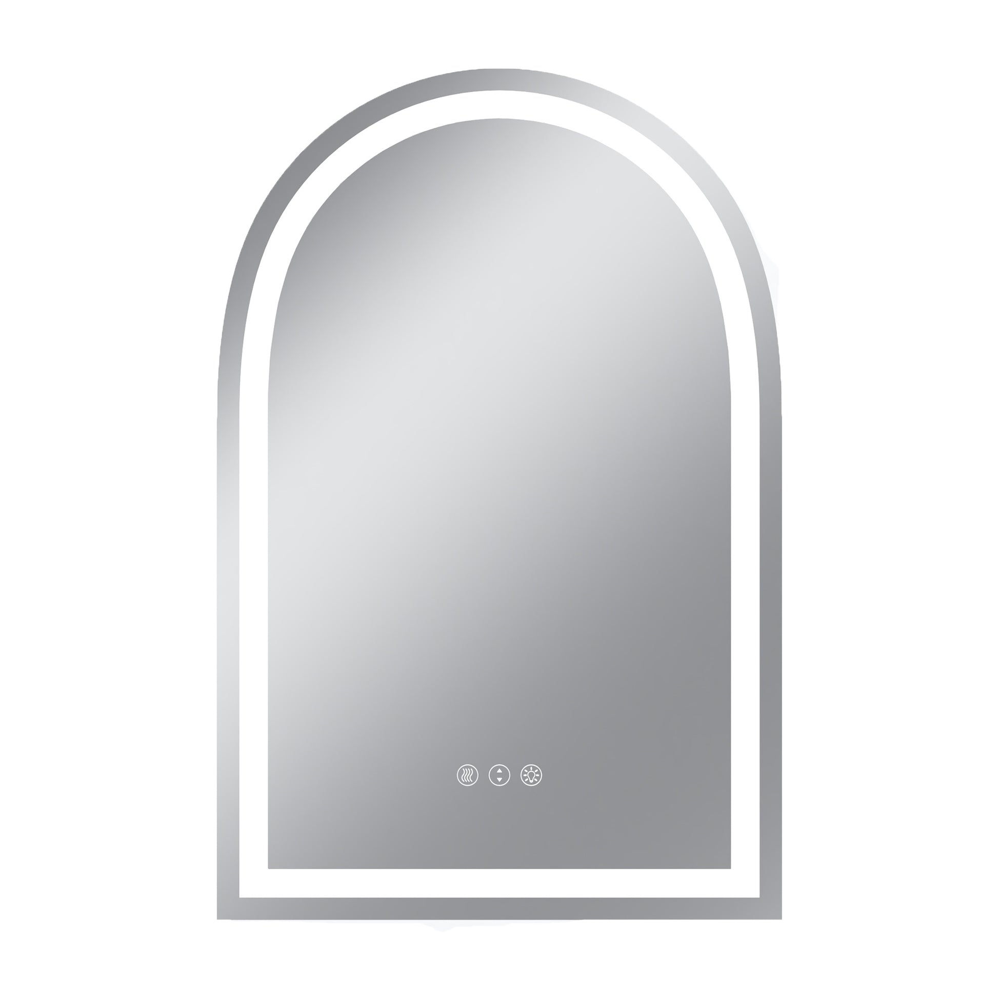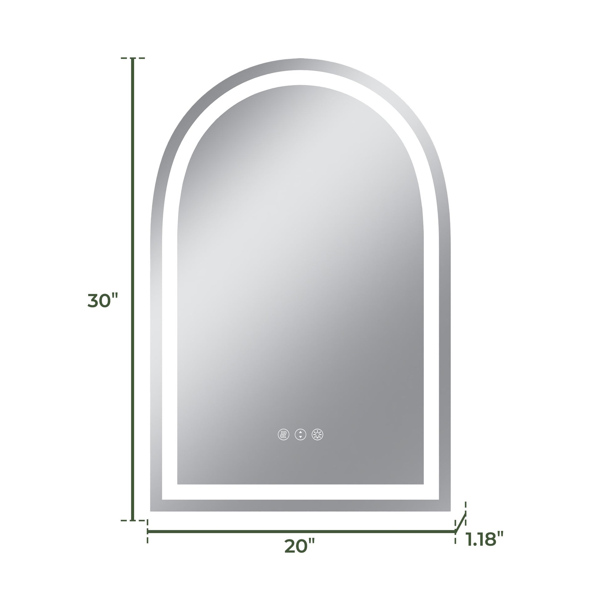 Arched Frontlit Glass Bathroom Vanity Mirror with Dimmable LED Lights and Fog-Free Function 20-in x 30-in