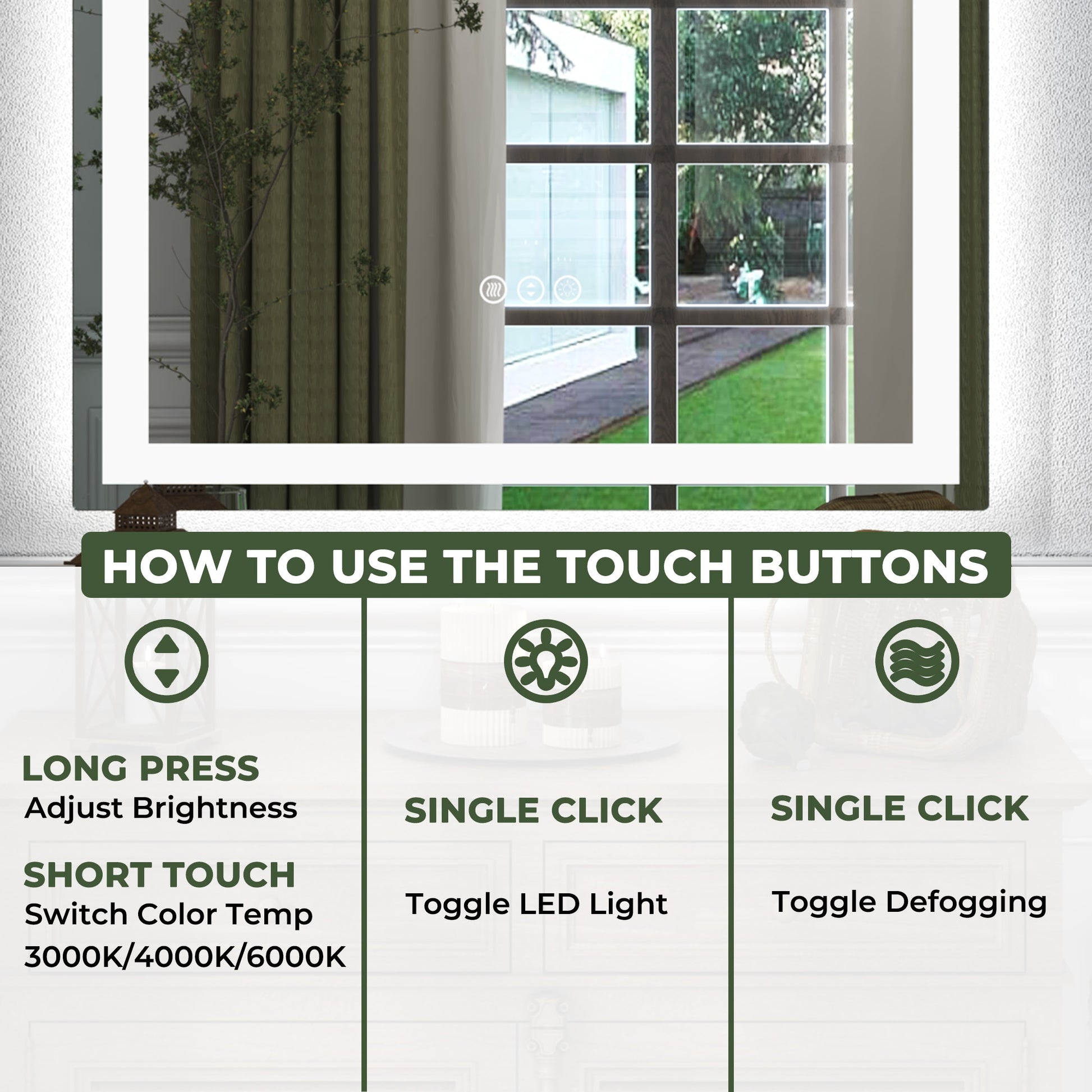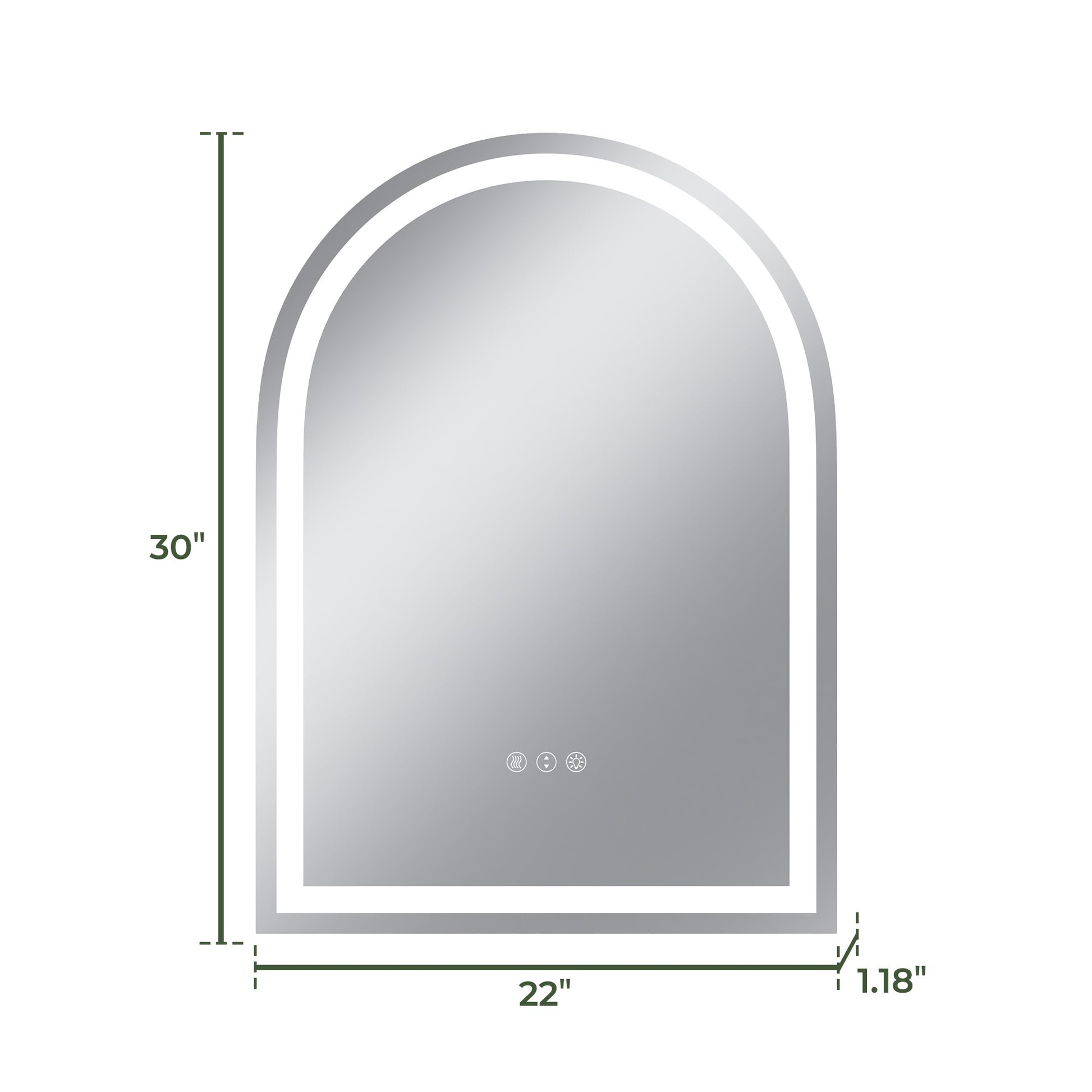 Arched Frontlit Glass Bathroom Vanity Mirror with Dimmable LED Lights and Fog-Free Function 22-in x 30-in