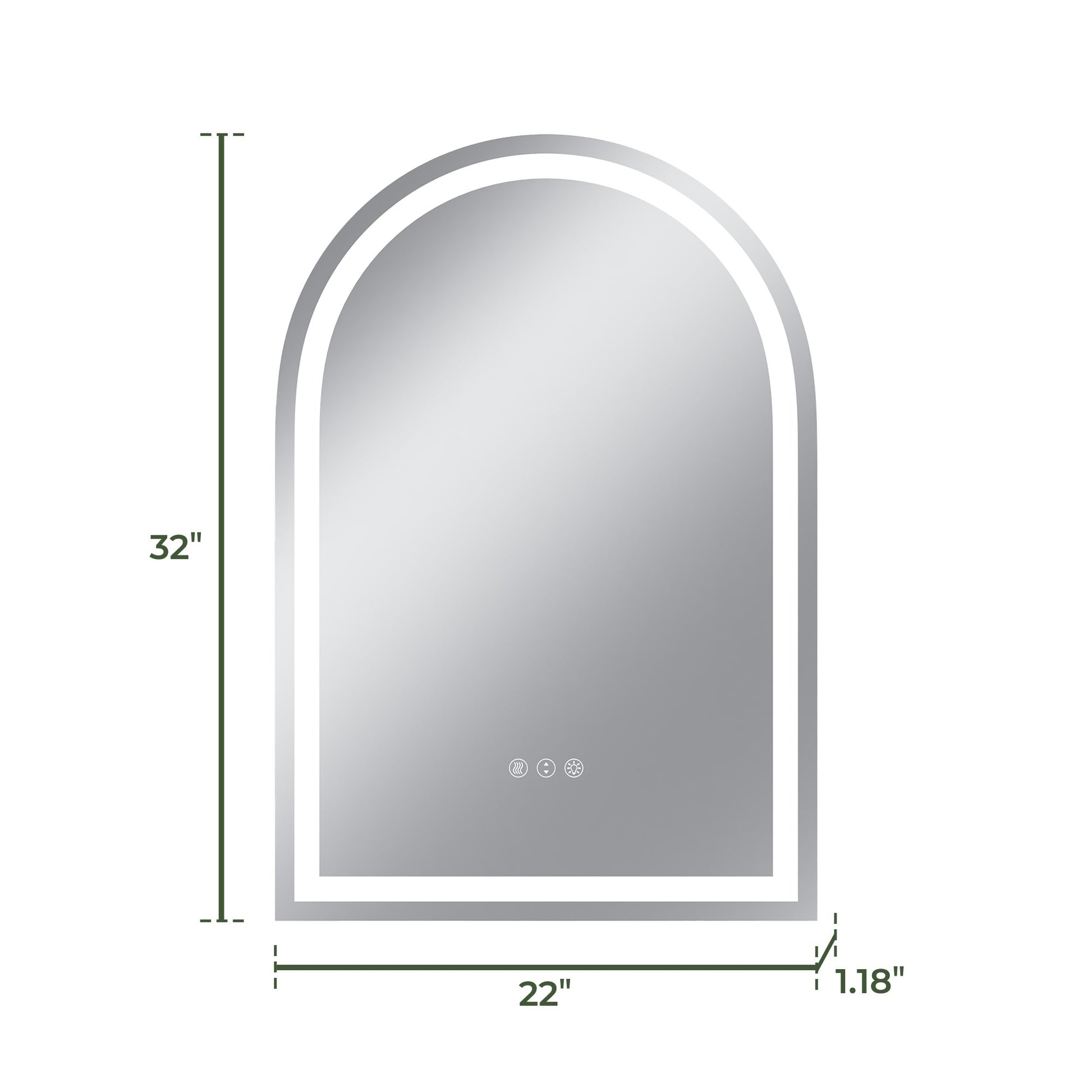 Arched Frontlit Glass Bathroom Vanity Mirror with Dimmable LED Lights and Fog-Free Function 22-in x 32-in