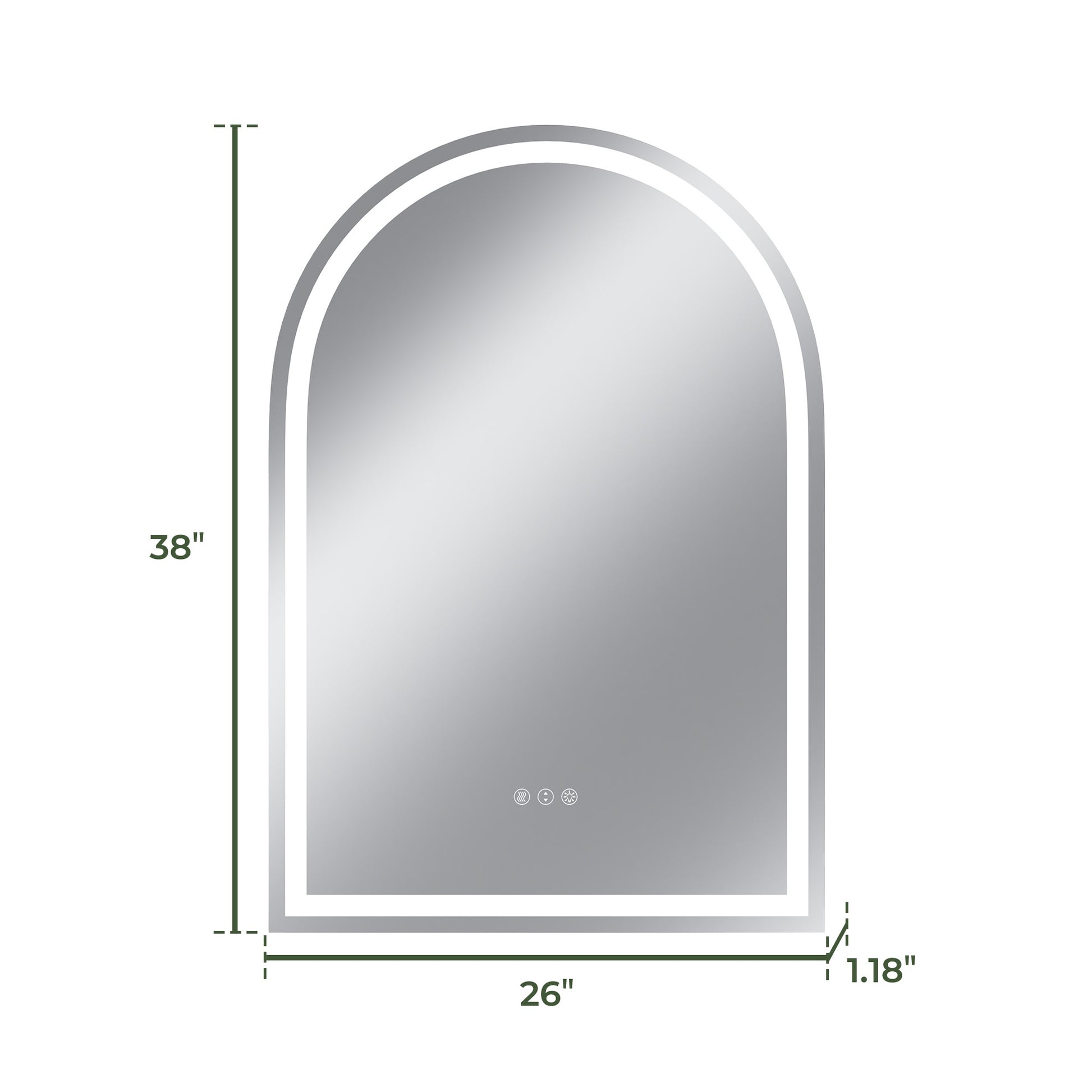 Arched Frontlit Glass Bathroom Vanity Mirror with Dimmable LED Lights and Fog-Free Function 26-in x 38-in