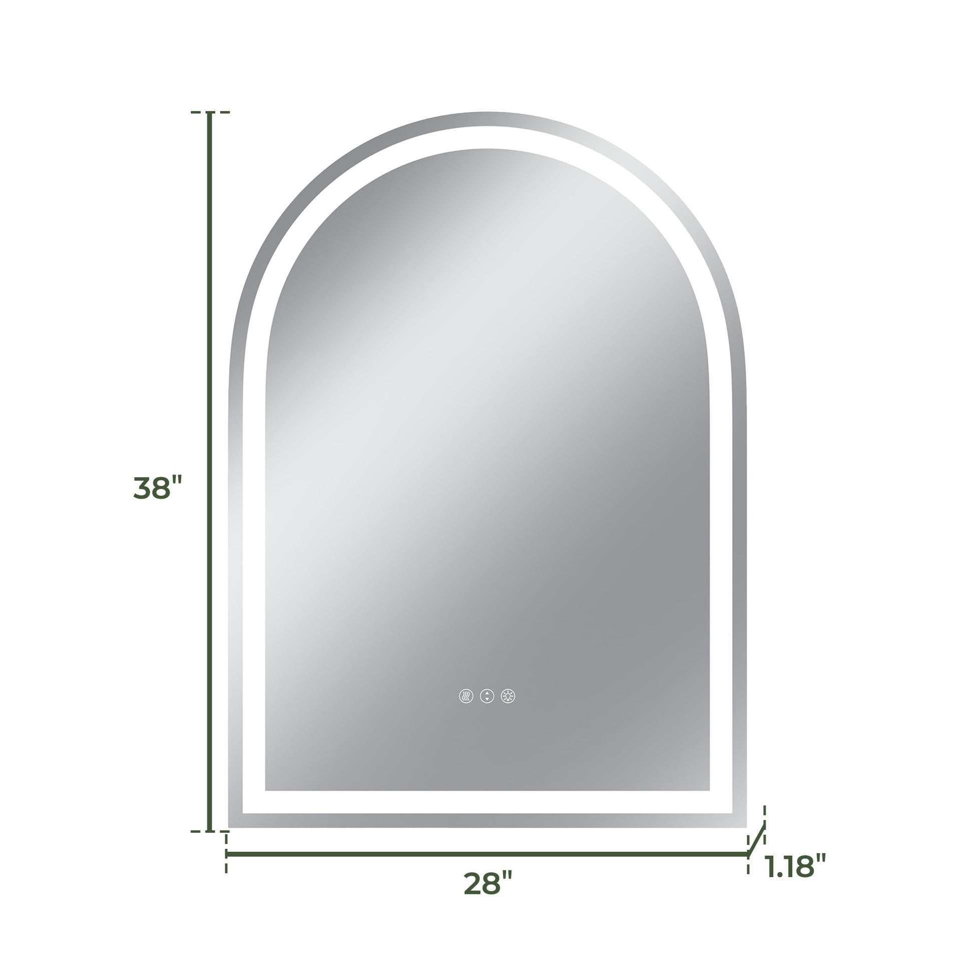 Arched Frontlit Glass Bathroom Vanity Mirror with Dimmable LED Lights and Fog-Free Function 28-in x 38-in