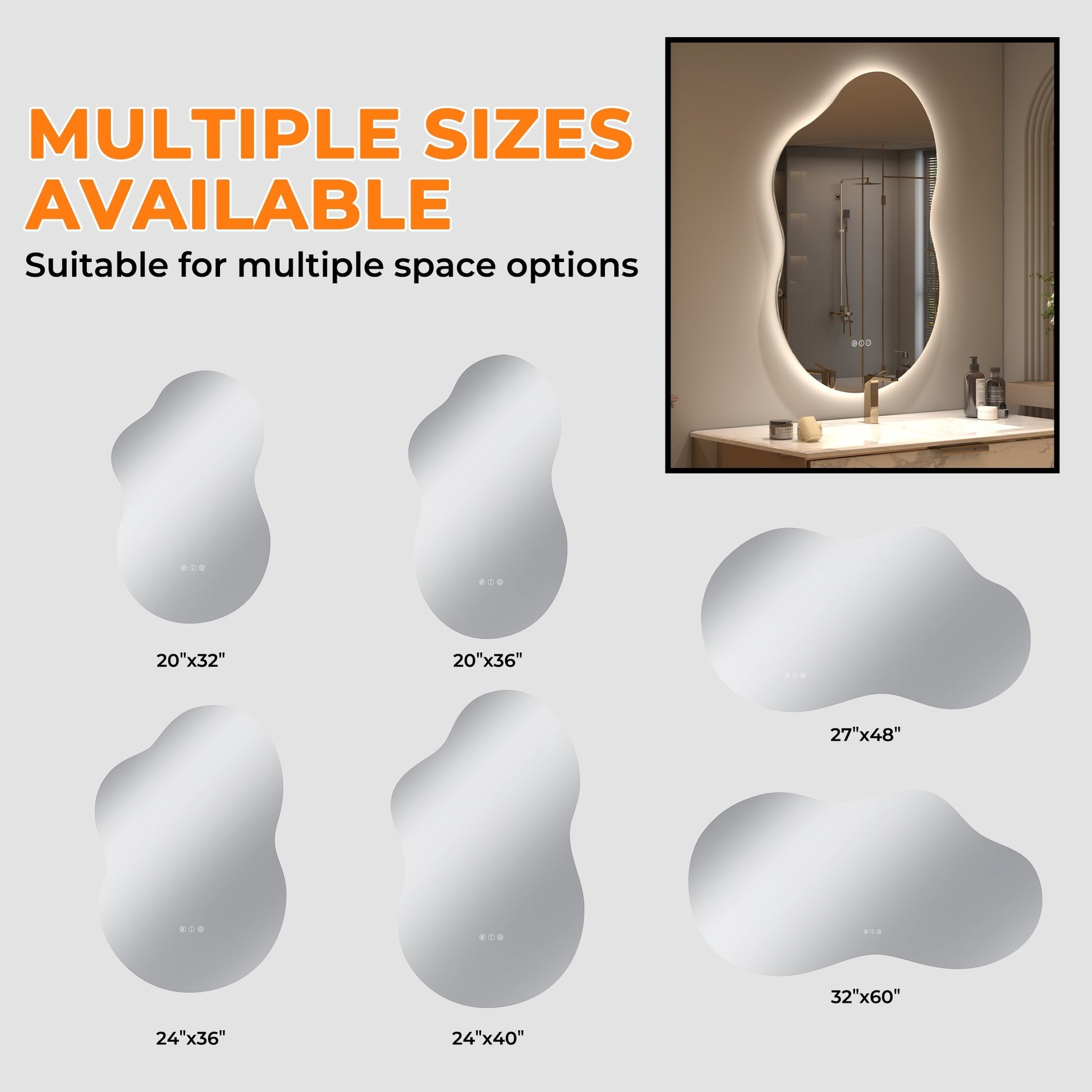 Backlit Cloud-Shaped Glass Bathroom Vanity Mirror Dimmable LED Lights Fog-Free 24-in x 36-in