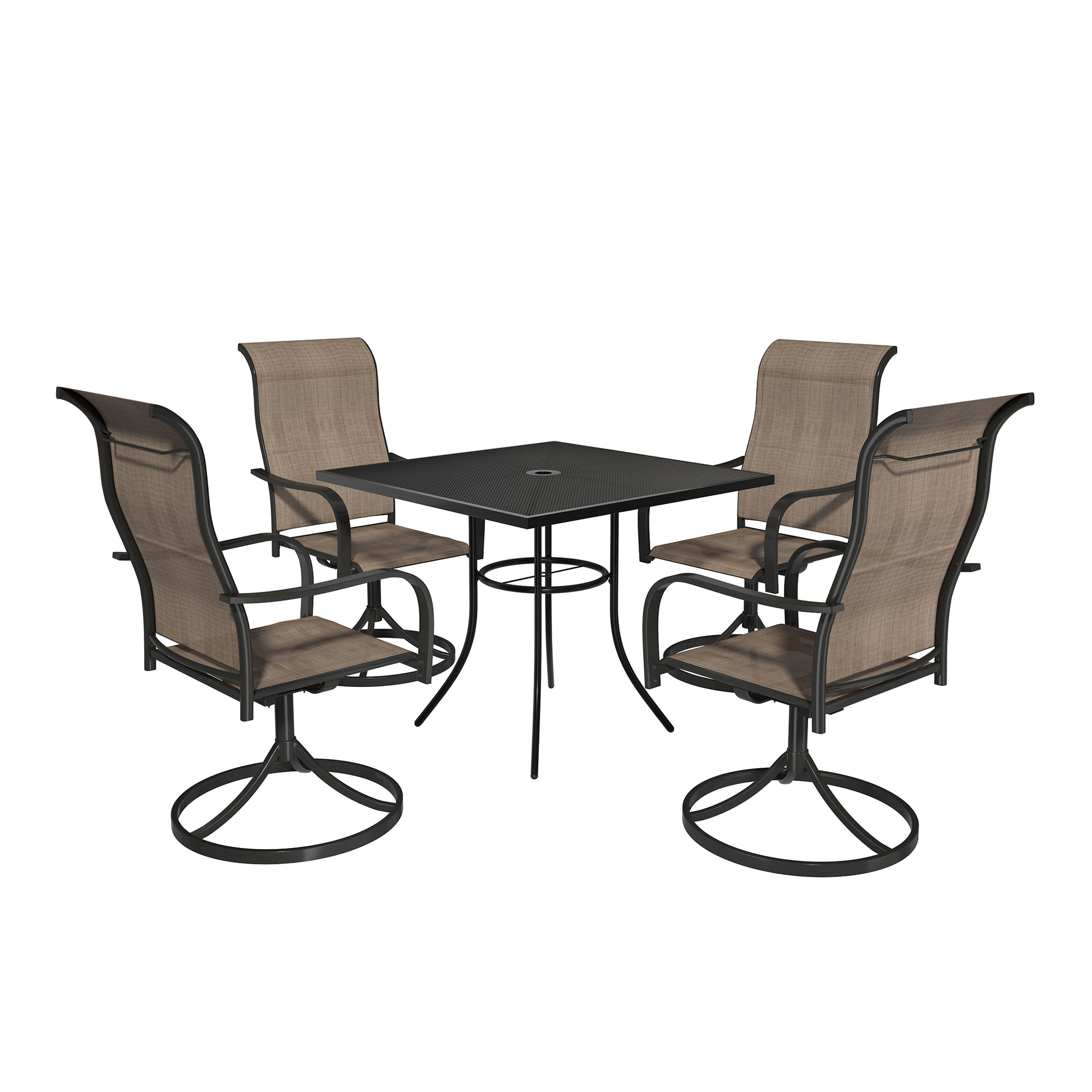 Black 5-Piece Metal Outdoor Patio Dining Set with Square Table with 1.9 in. Umbrella Hole and Swivel Chairs