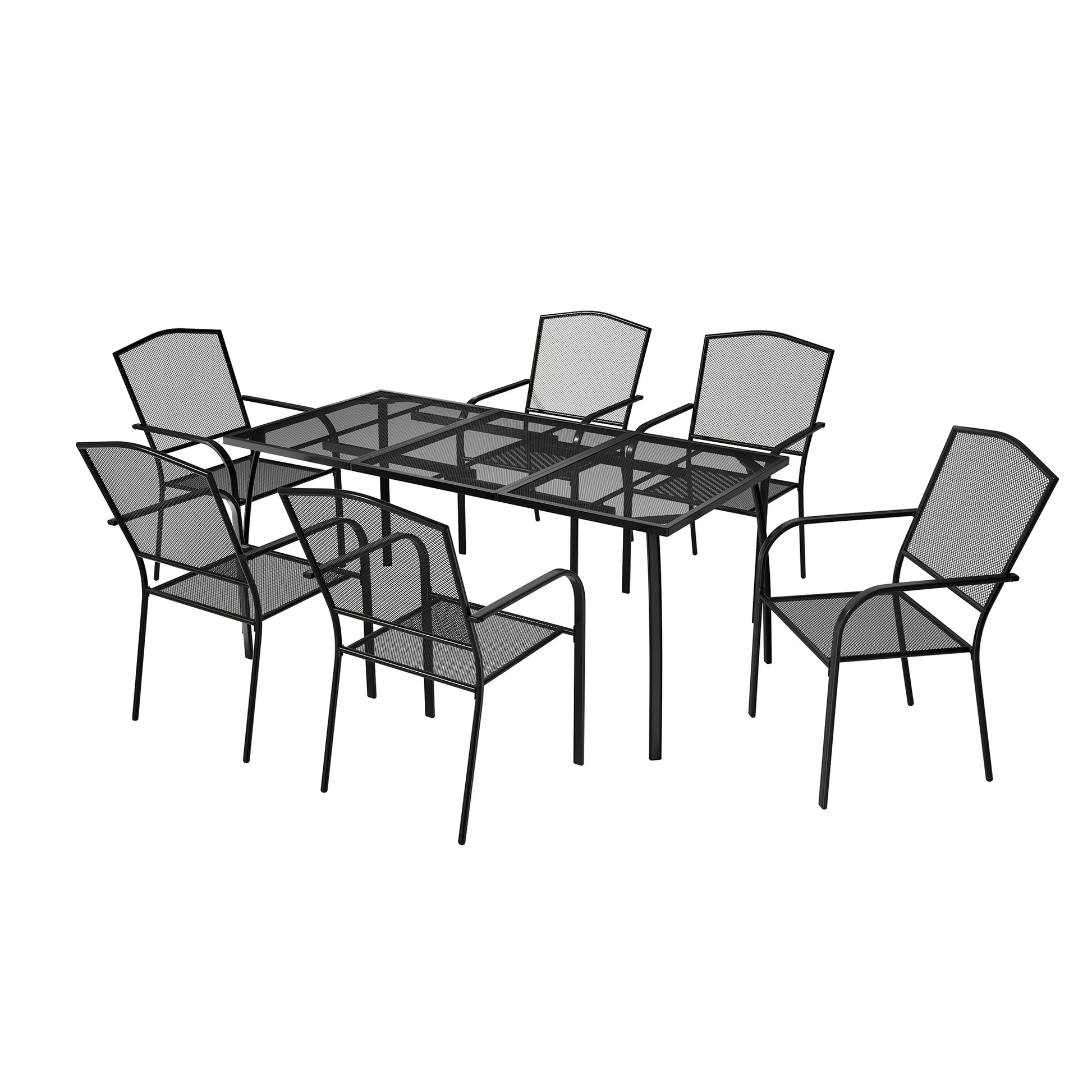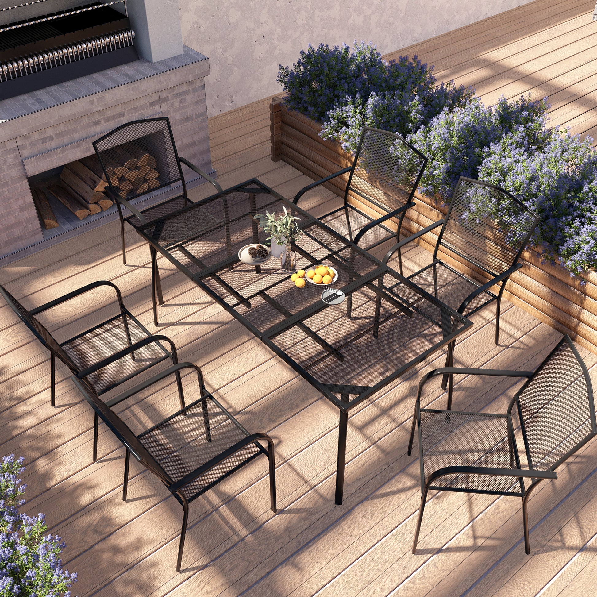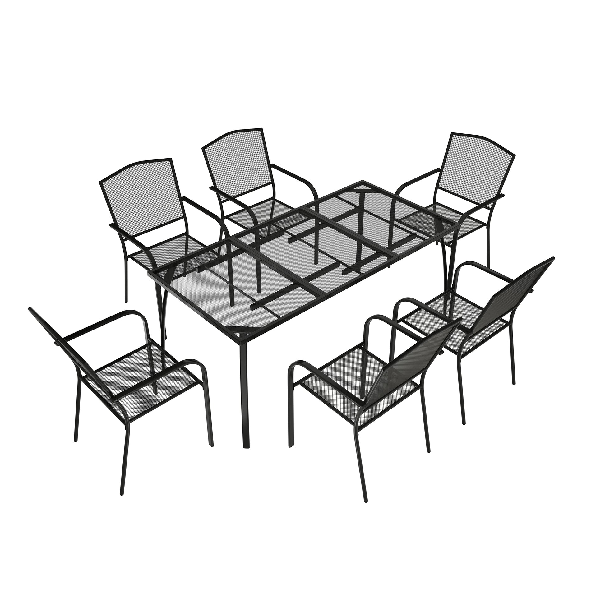 Black 7-Piece Metal Outdoor Patio Dining Set with Rectangle Table and Dining Chair