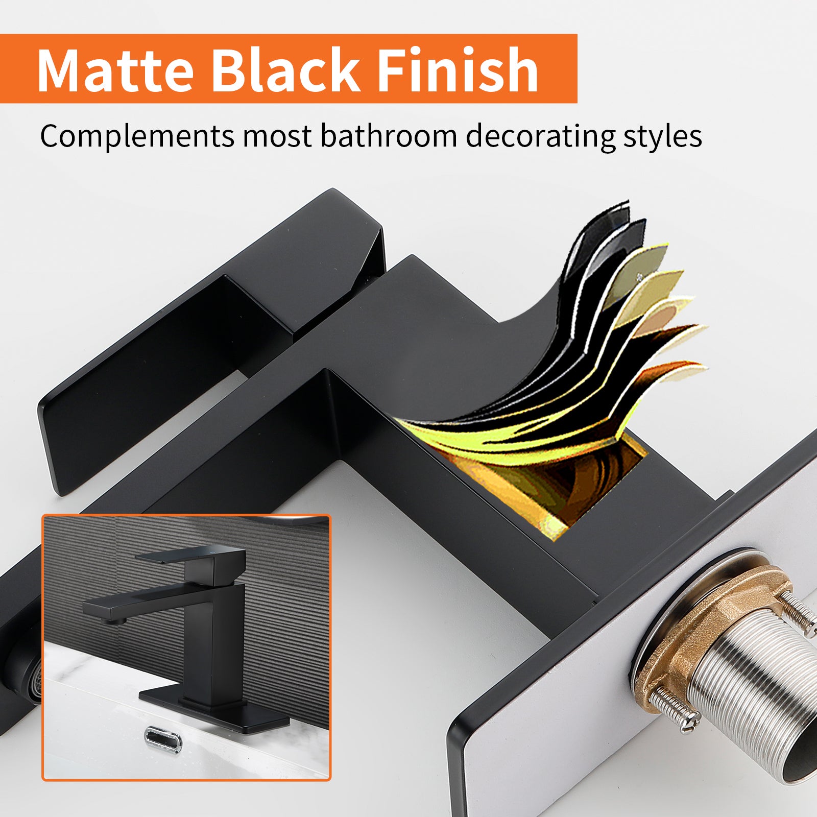 Enjoy practical use with this black SUS304 faucet aerator spout anti-splash water-saving cUPC cartridge 60cm supply line pop up drain 3-layer coating.