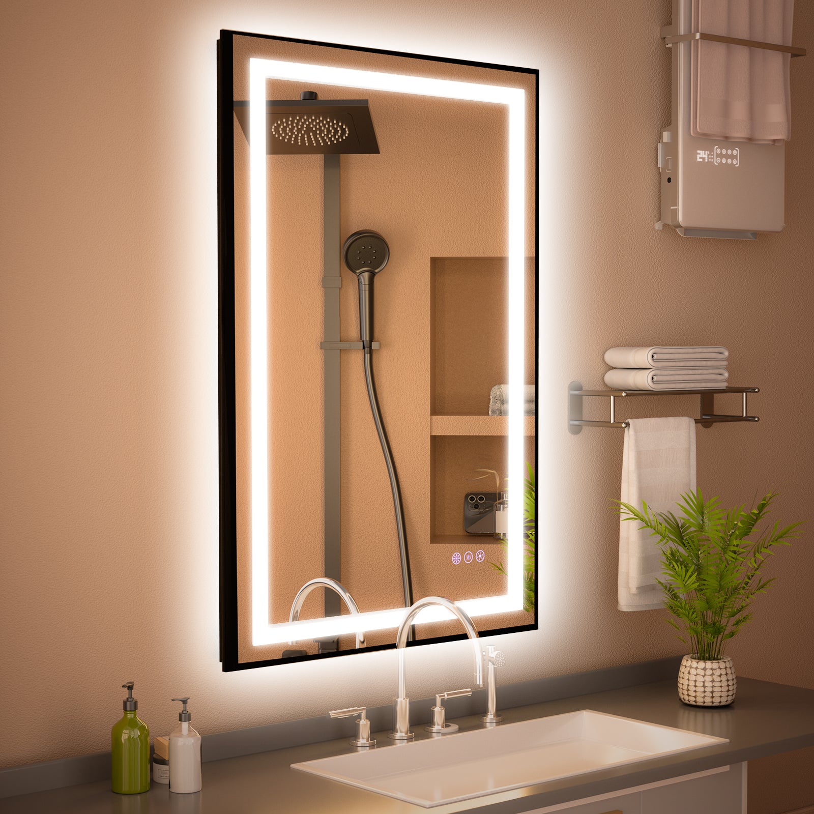 24 in. x 36 in. Black LED Bathroom Mirror with Aluminum Frame Anti Fog and Dimmable Light
