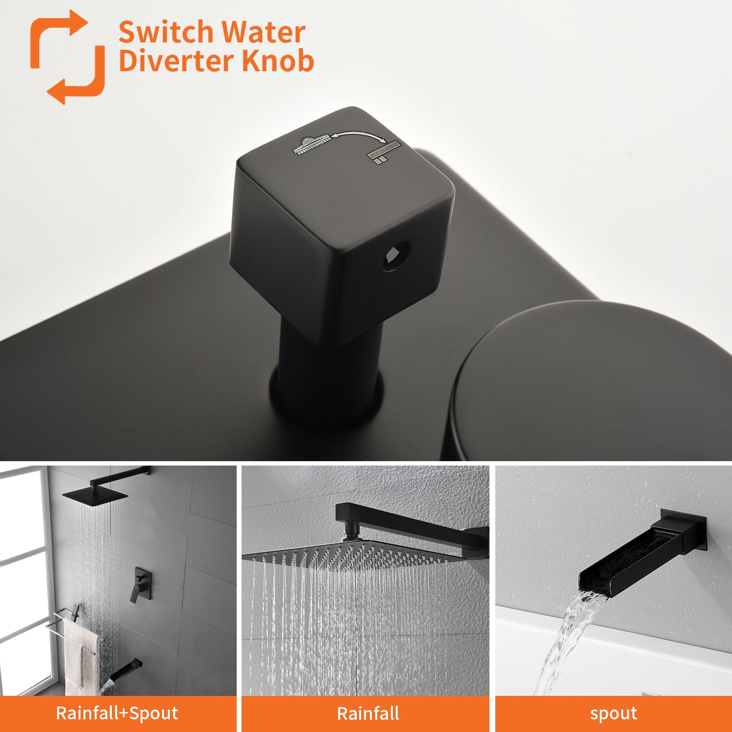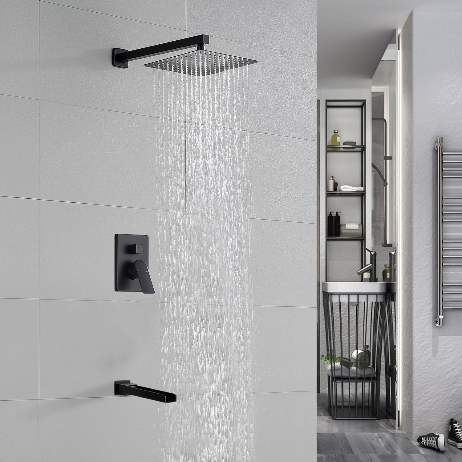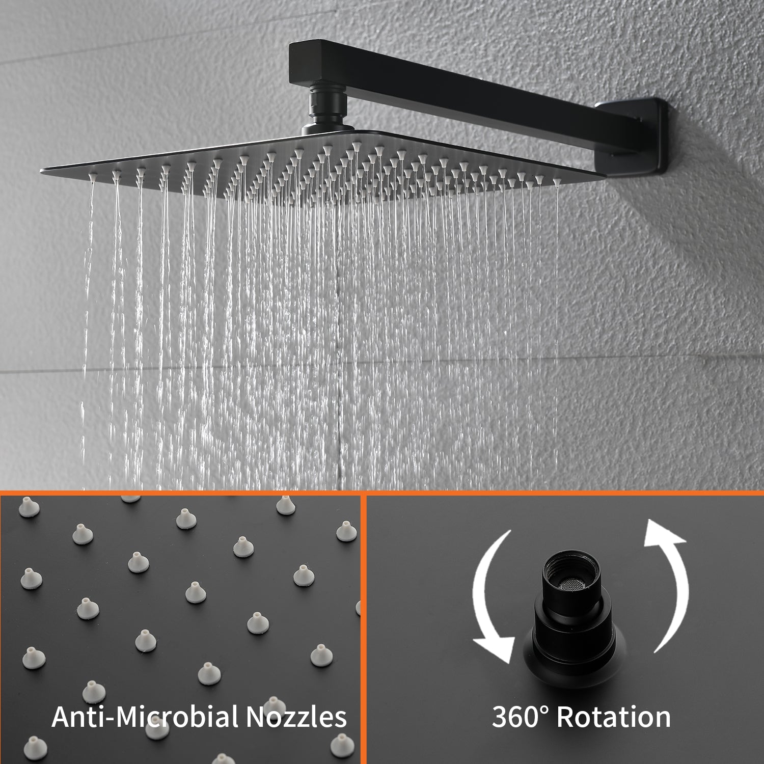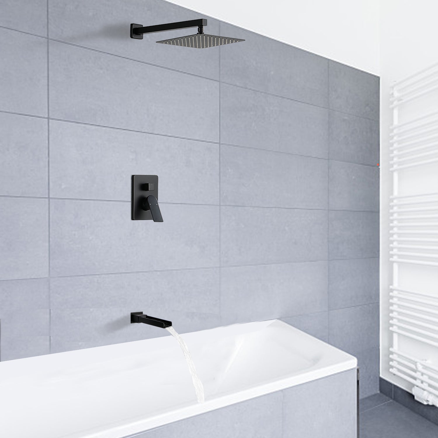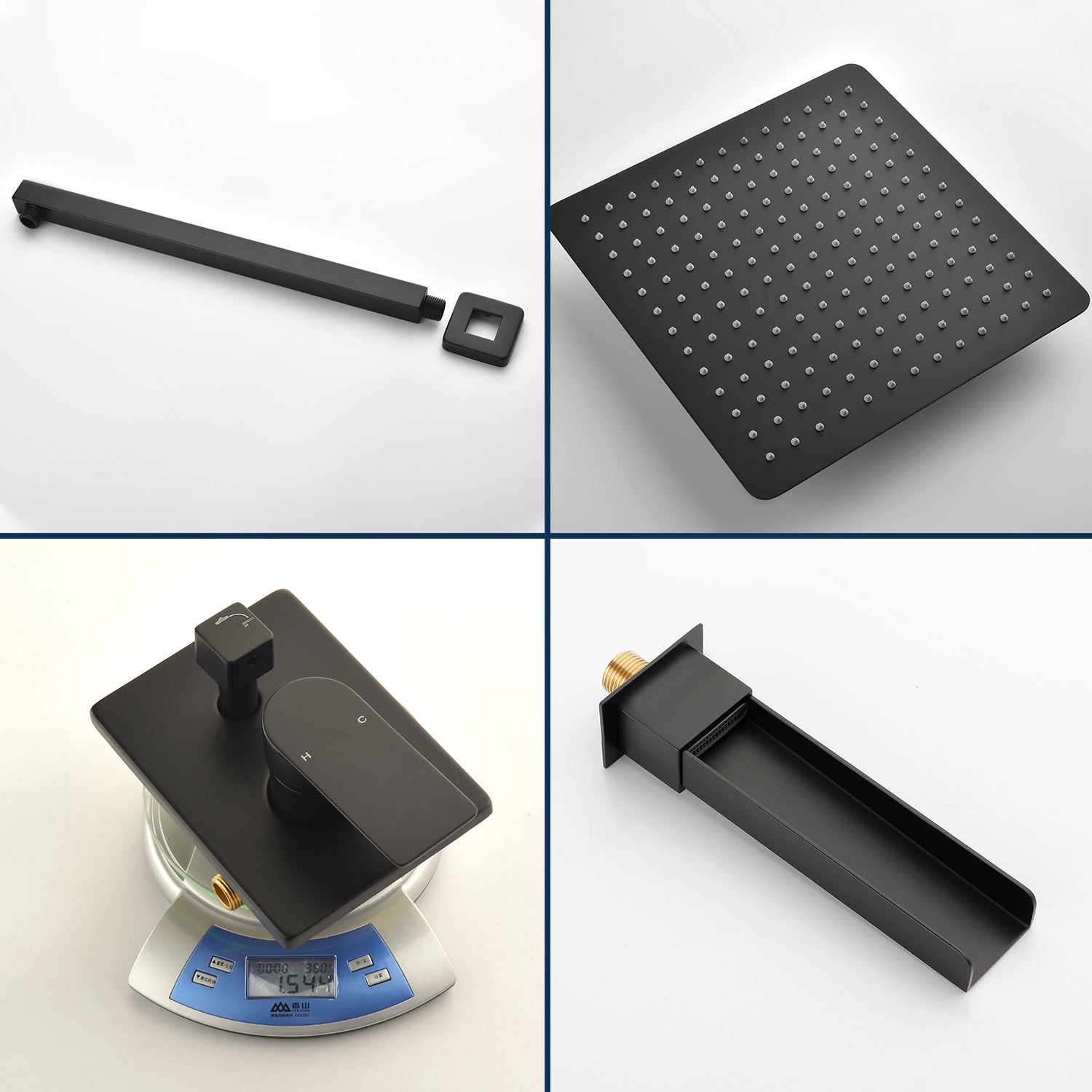 Indulge in a spa-like shower at home—10-inch SUS304 top spray waterfall spout gentle no-splash cUPC valve prevents scalding brass+SUS304 rustproof durable black finish.