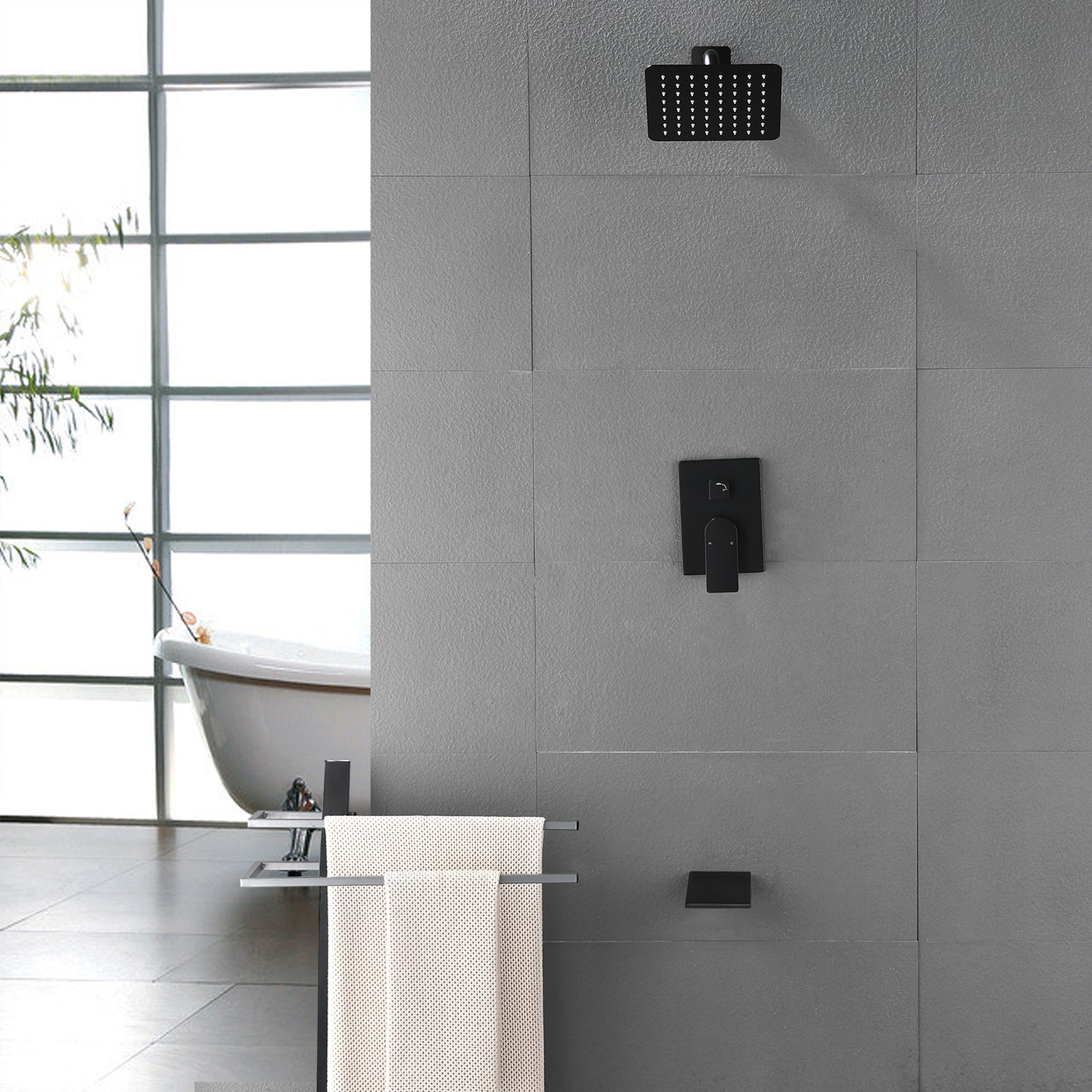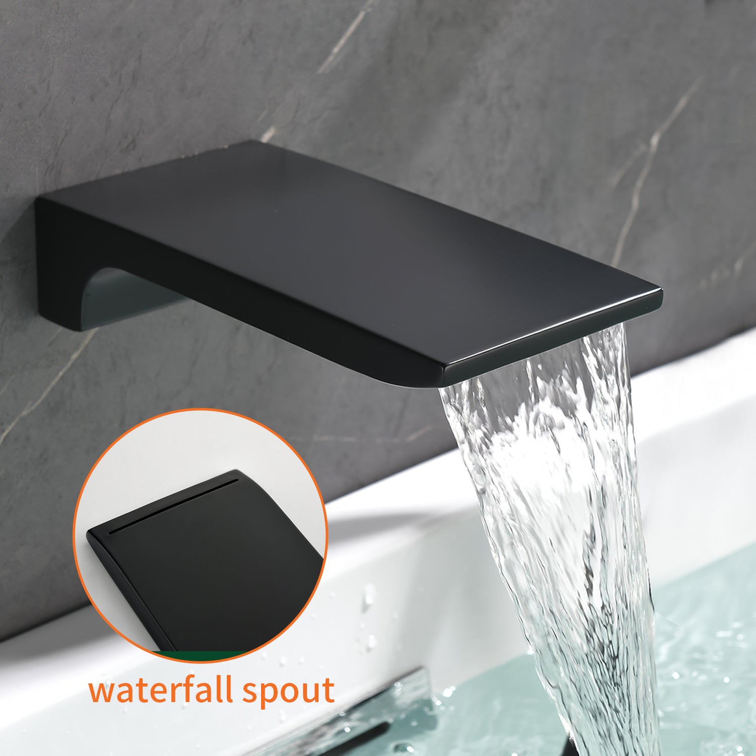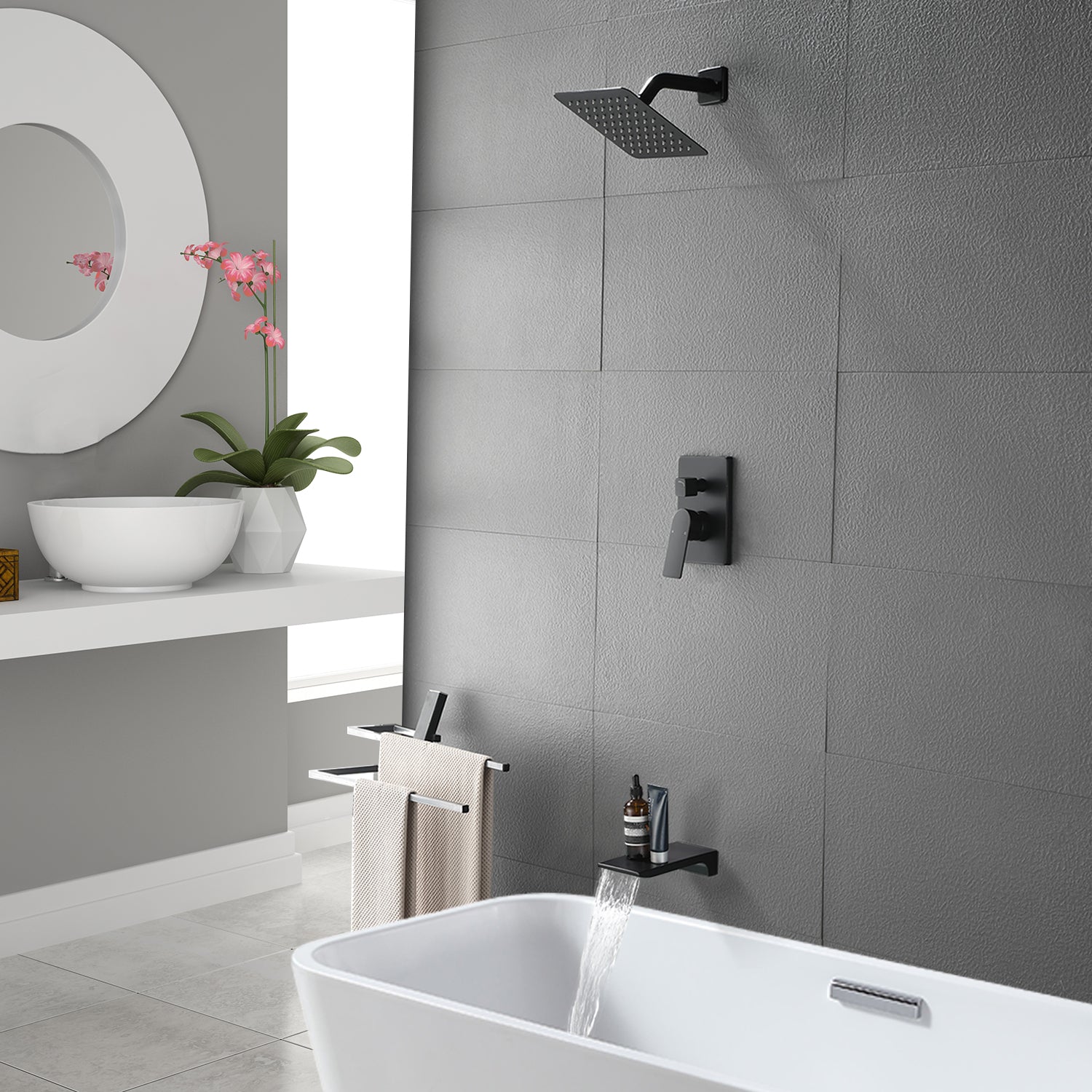 Black Shower Set 2-Function Brass Pressure Balance Valve cUPC 8 Inch SUS304 Top Spray Waterfall Spout Dual Water Outlet